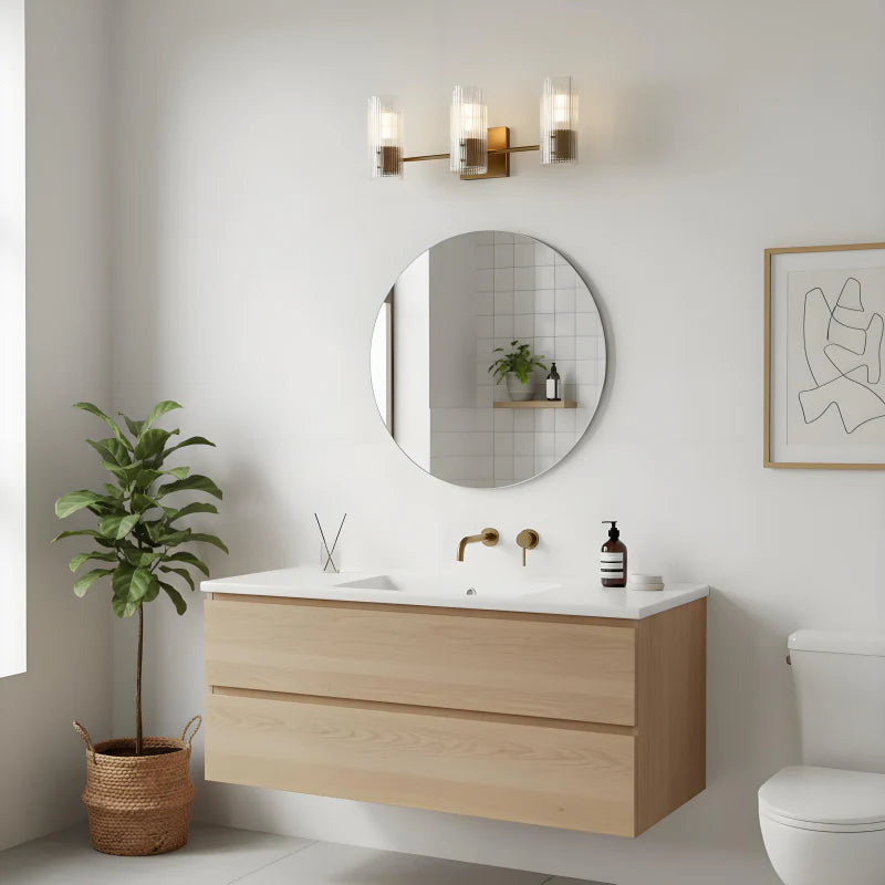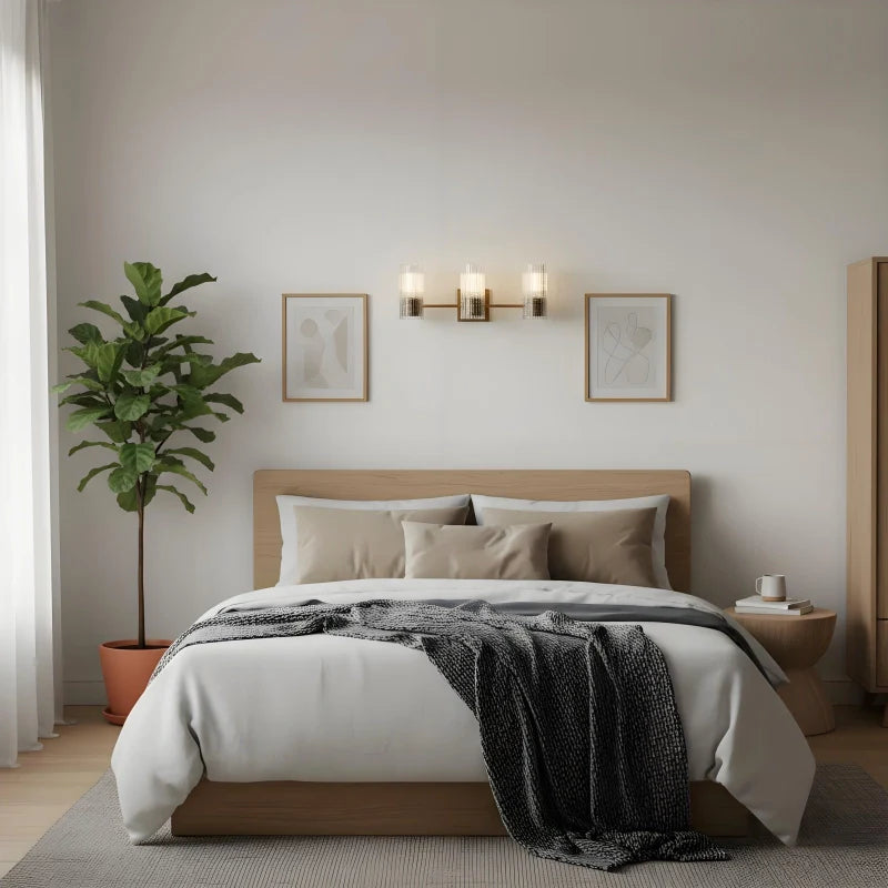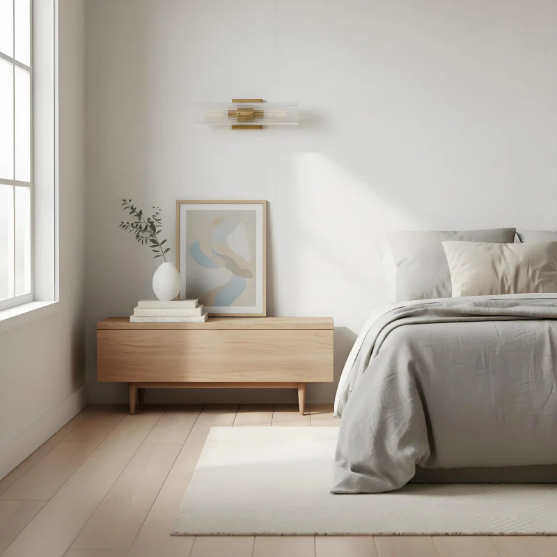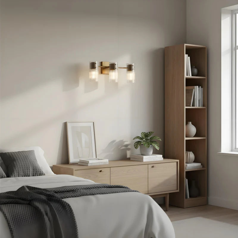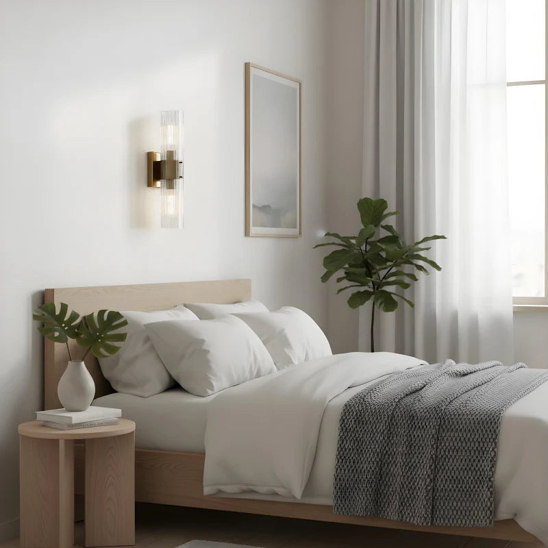 Featuring a glass shade and brass finish, this wall light combines modern elegance with soft light, perfect for a bedroom, living room, hallway, or bathroom.