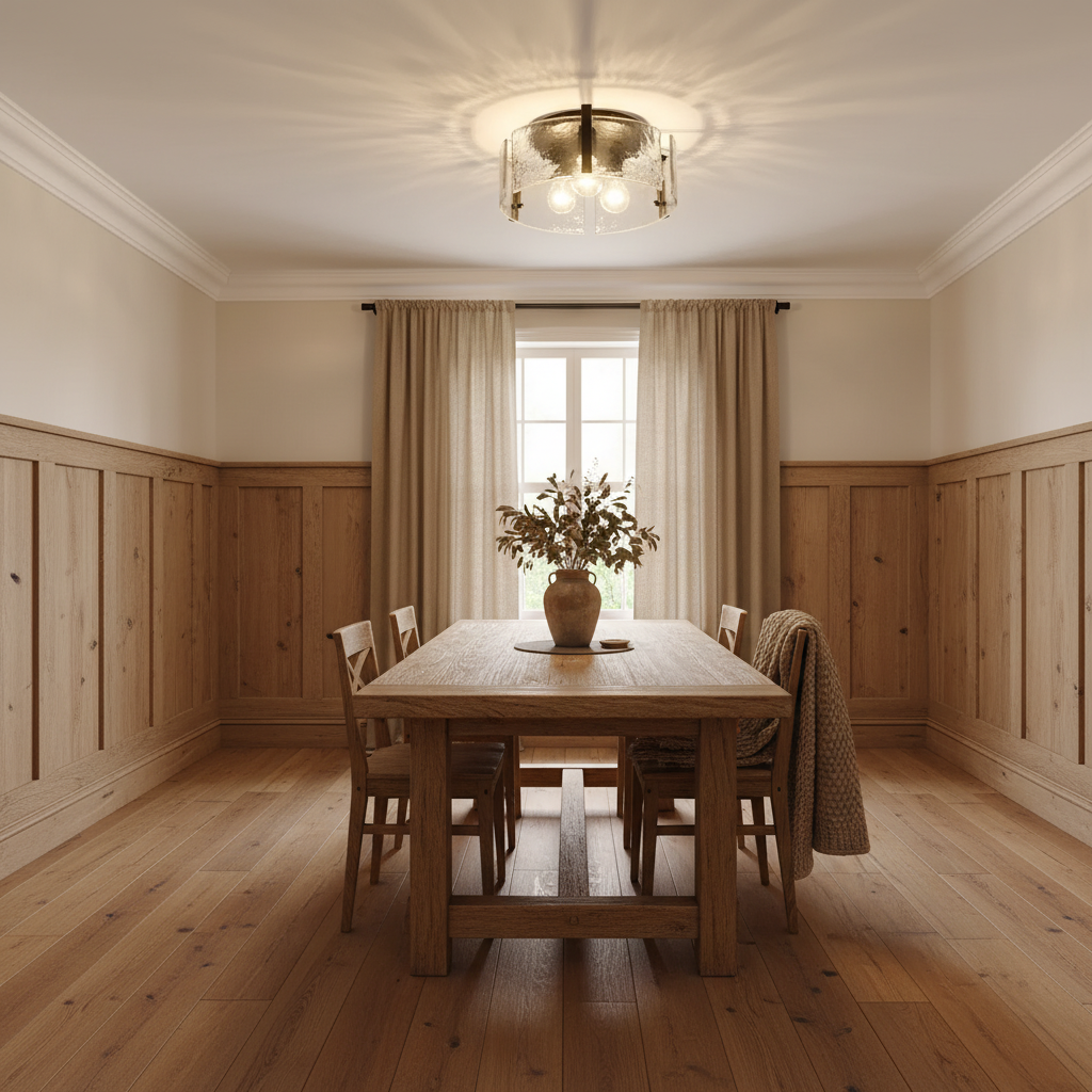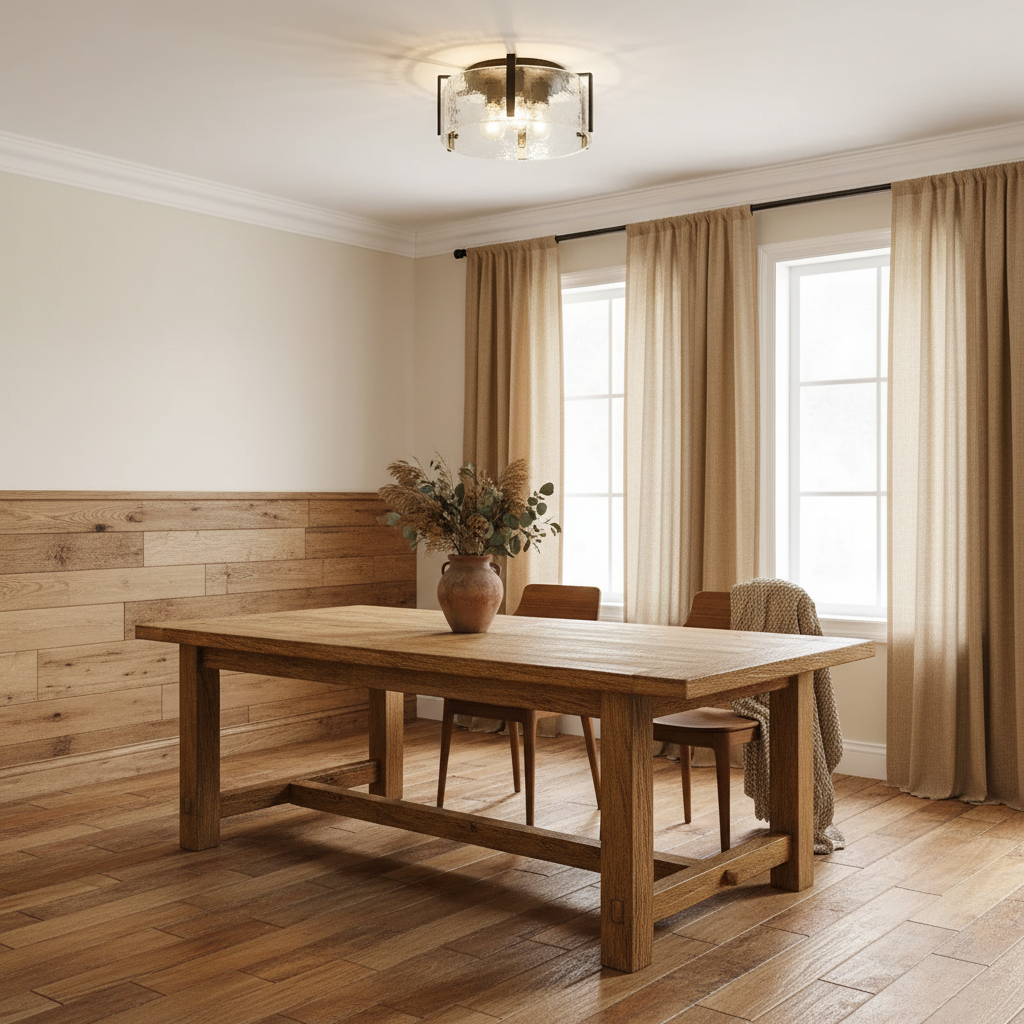The ceiling light frosted ripple glass and sleek metal frame cast a warm diffused glow. Perfect for living rooms dining areas or hallways it’s easy to install US compliant and blends seamlessly with contemporary decor.