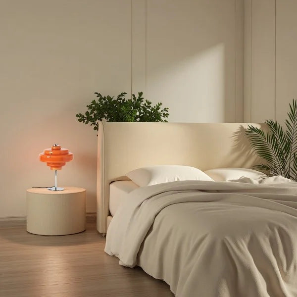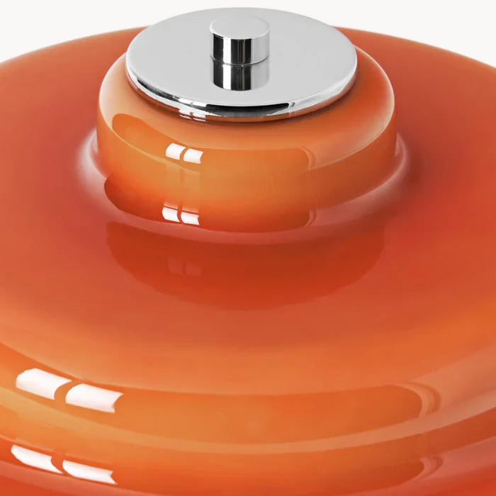The Koros Table Lamp pairs a vibrant orange shade with a sleek metal base, adding a pop of color and modern charm to your décor. Perfect for bedrooms, living rooms, or study desks.