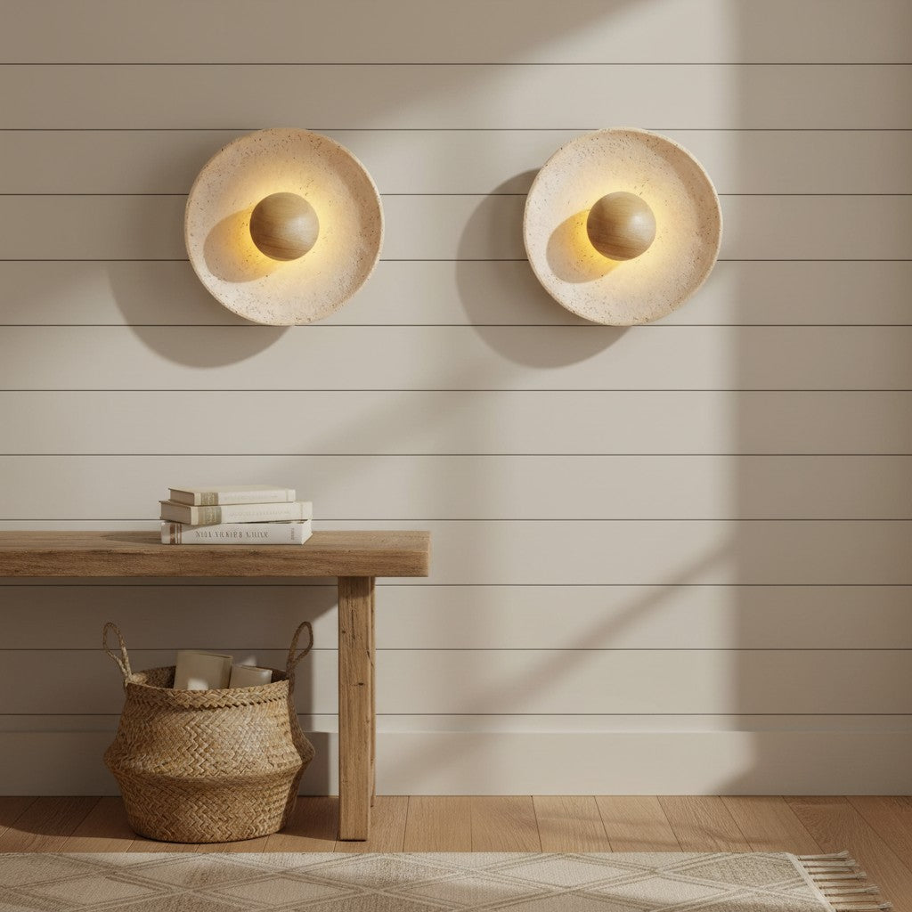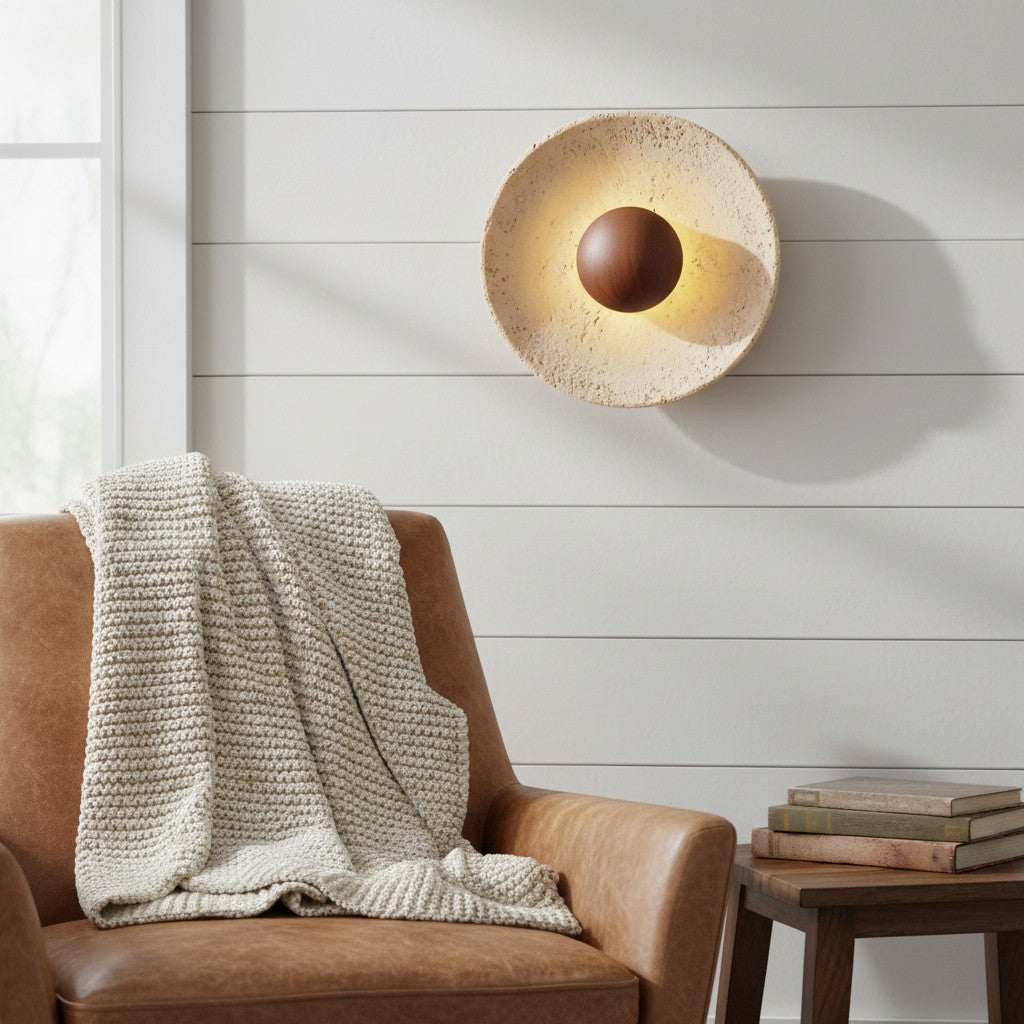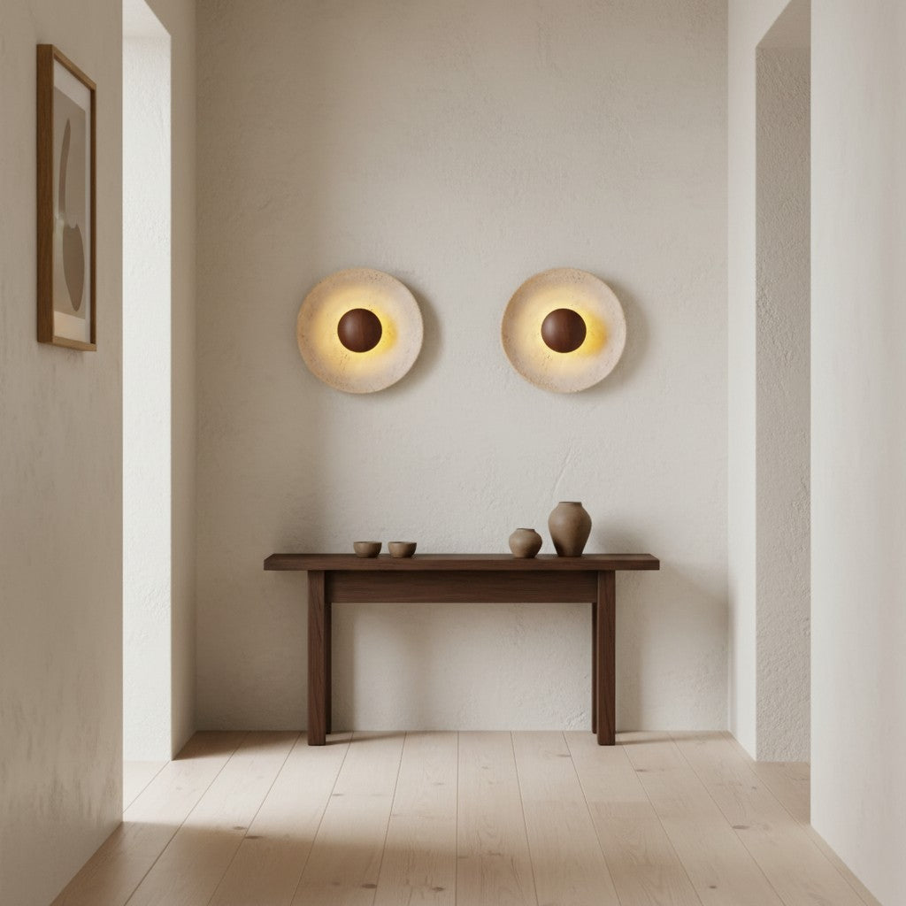Japanese Wabi-Sabi Round Travertine Natural Stone Wall Sconce