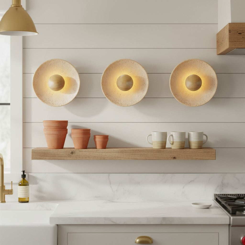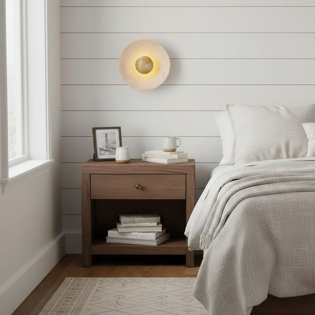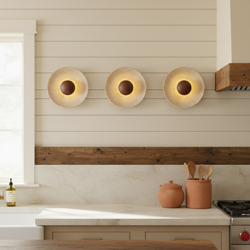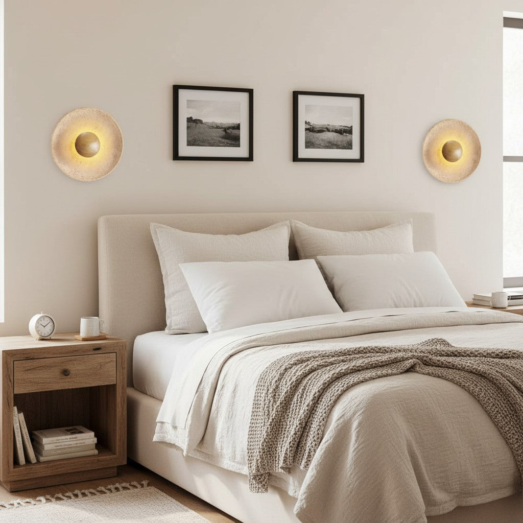 Japanese Wabi-Sabi Round Travertine Natural Stone Wall Sconce