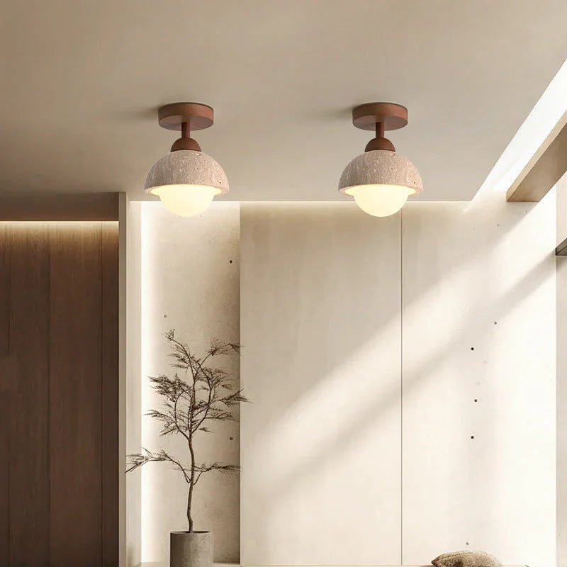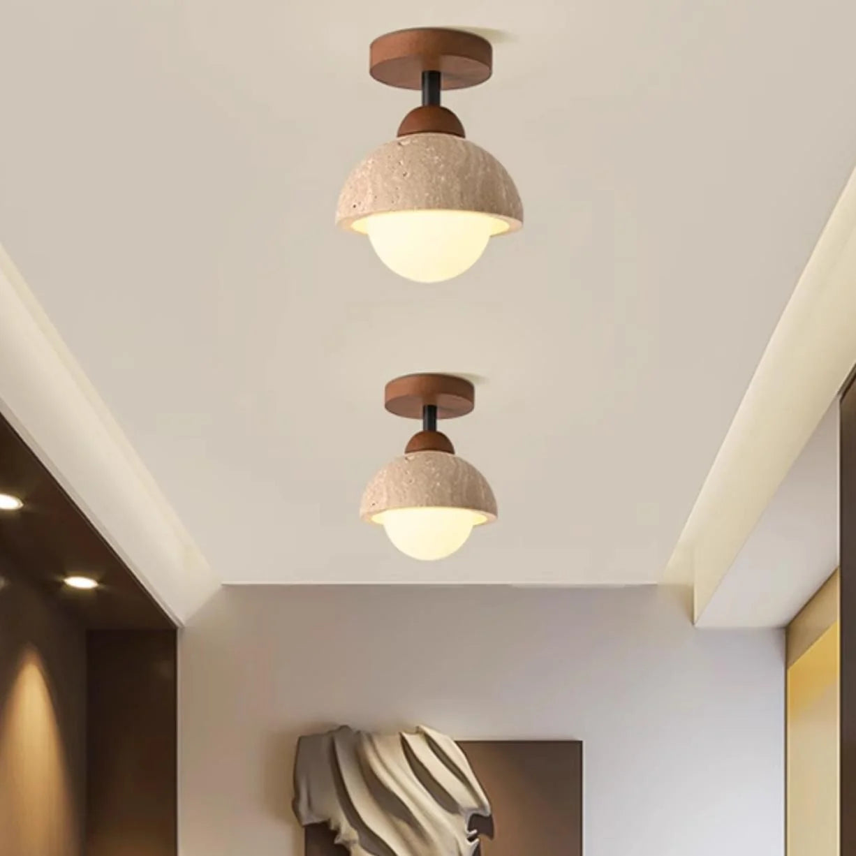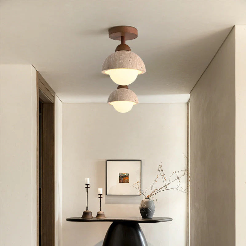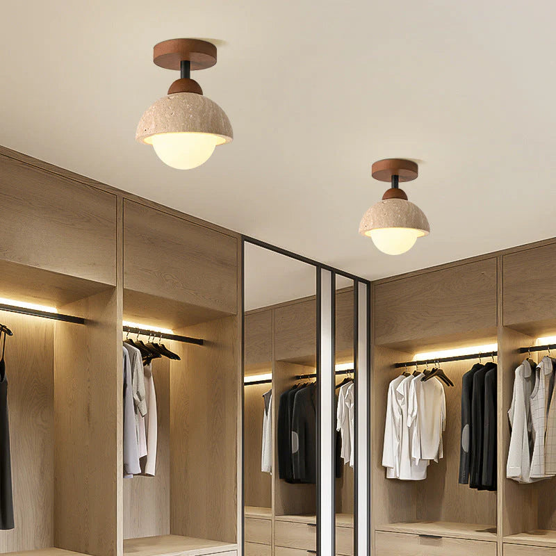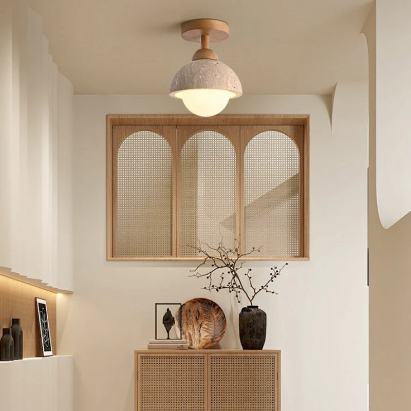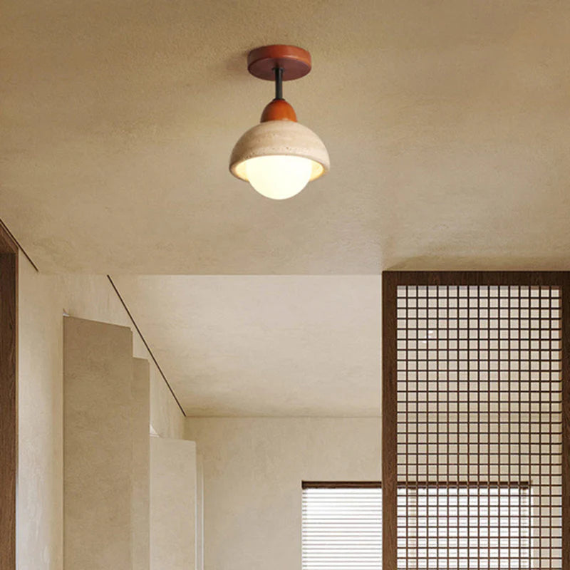 Elevate your space with the understated elegance of the Retro Travertine Stone Flush Mount. Featuring natural travertine and rich wood accents, this light merges retro charm with modern minimalism, creating a warm, inviting atmosphere in any room.