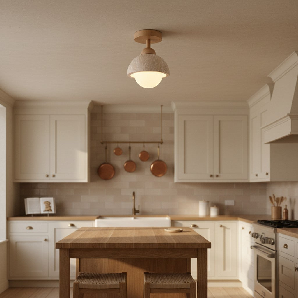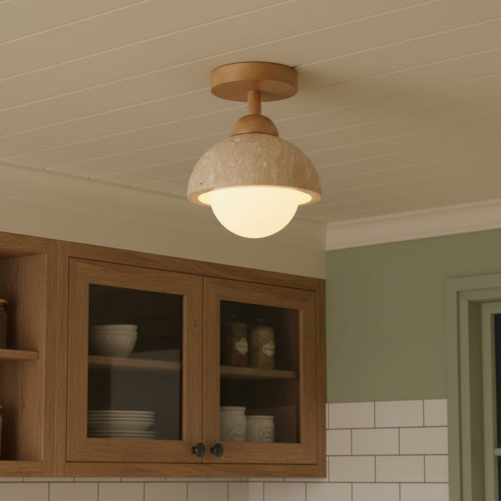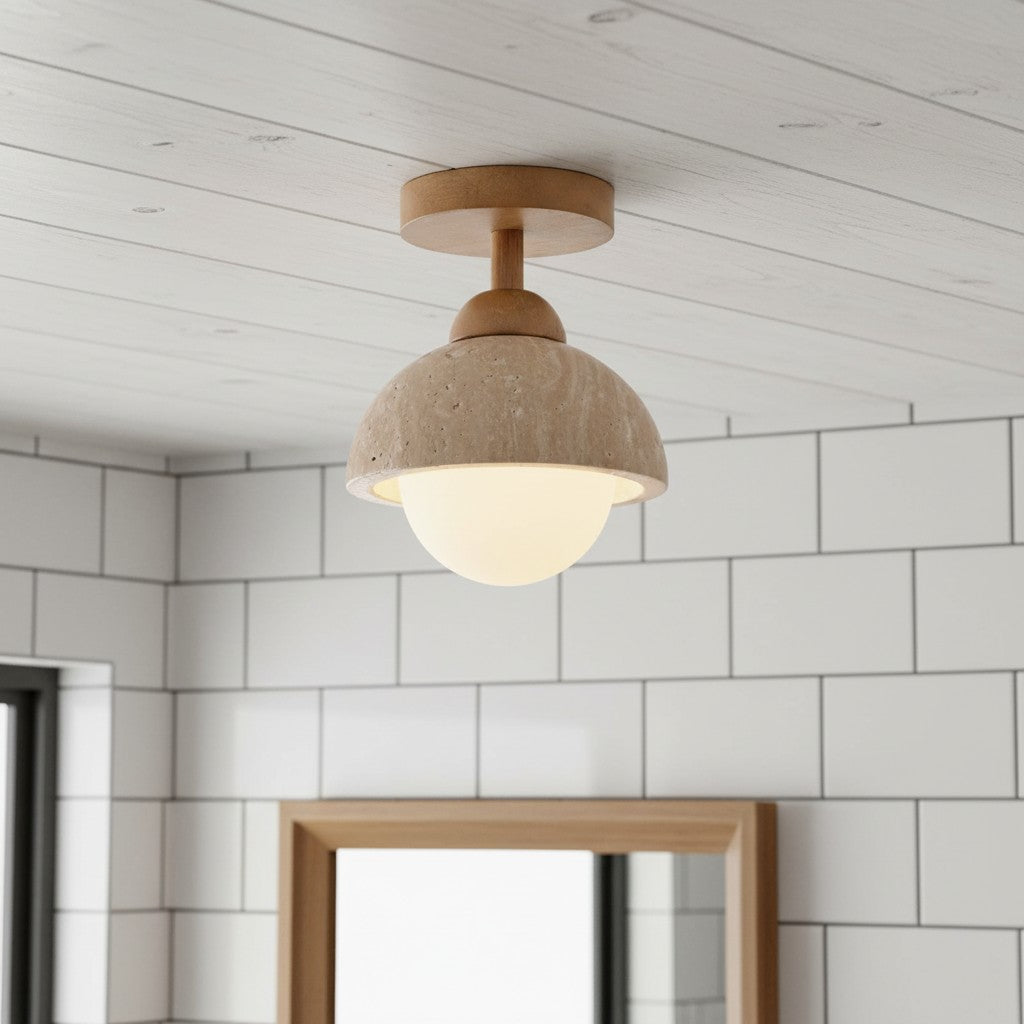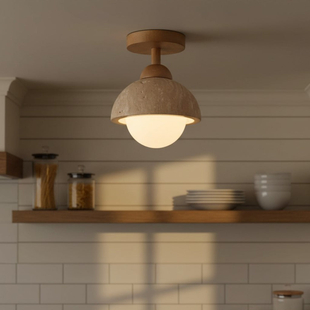 Modern Japanese Wabi-Sabi Travertine Stone Dome Ceiling Light