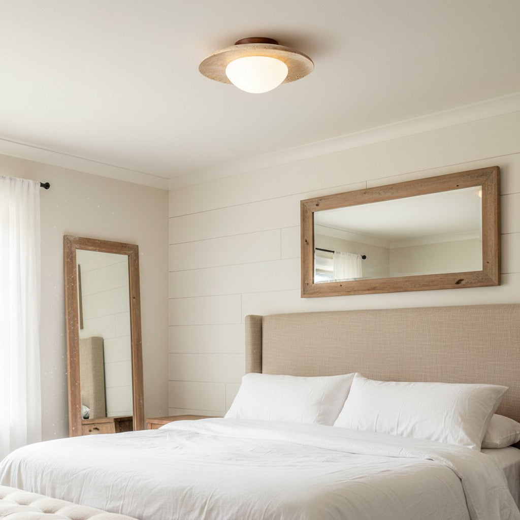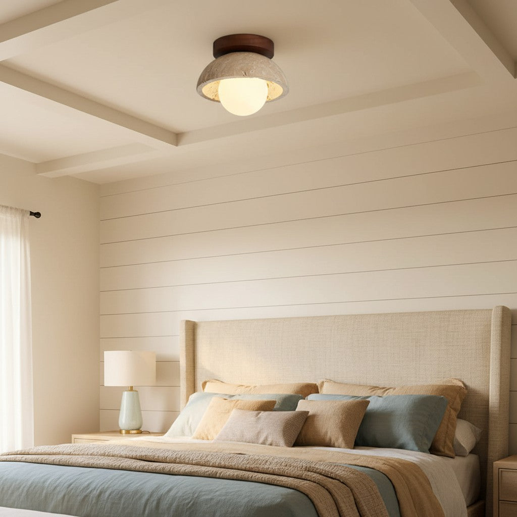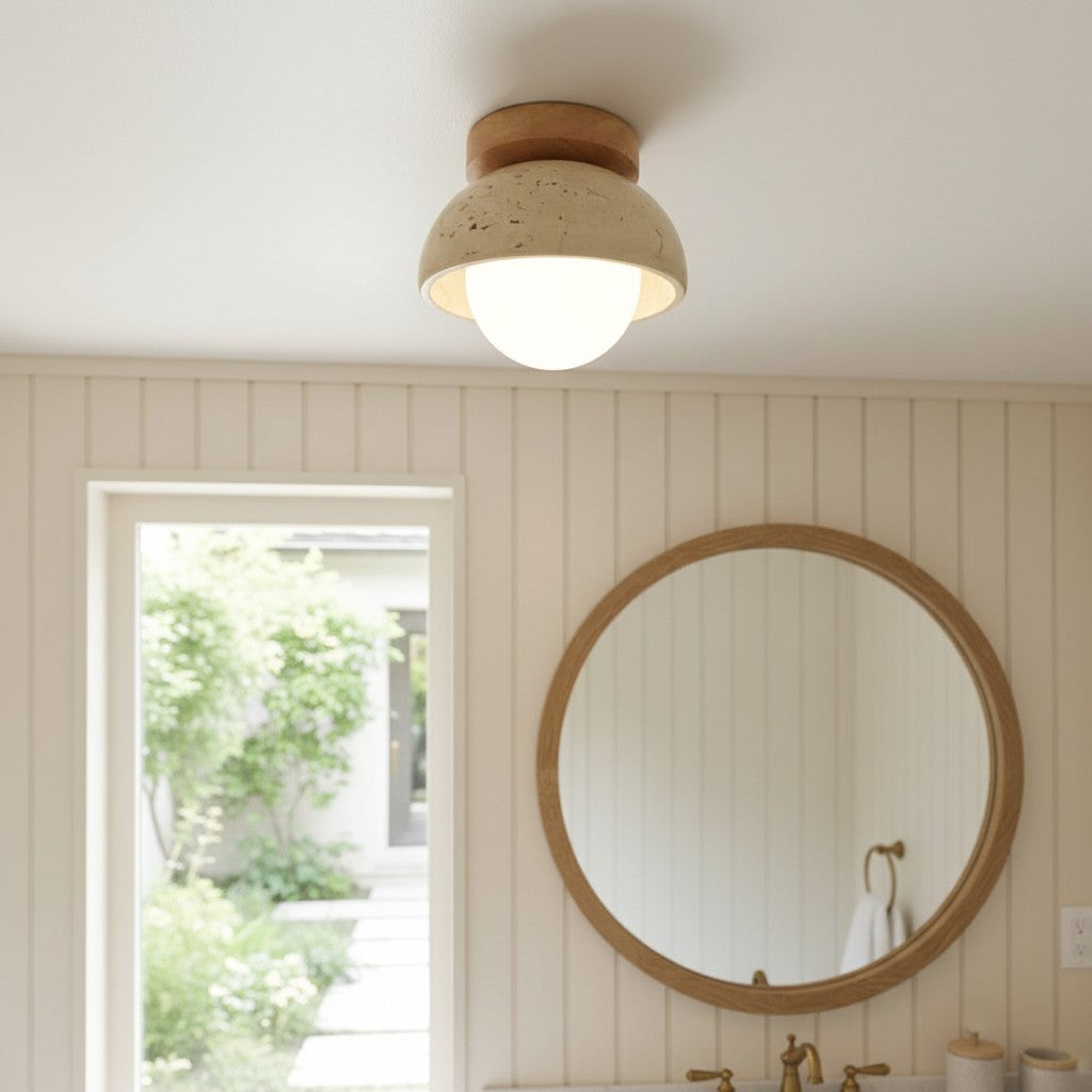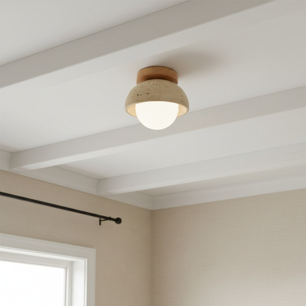 Retro Mid-Century Travertine Cream Round Flush Mount Ceiling Light