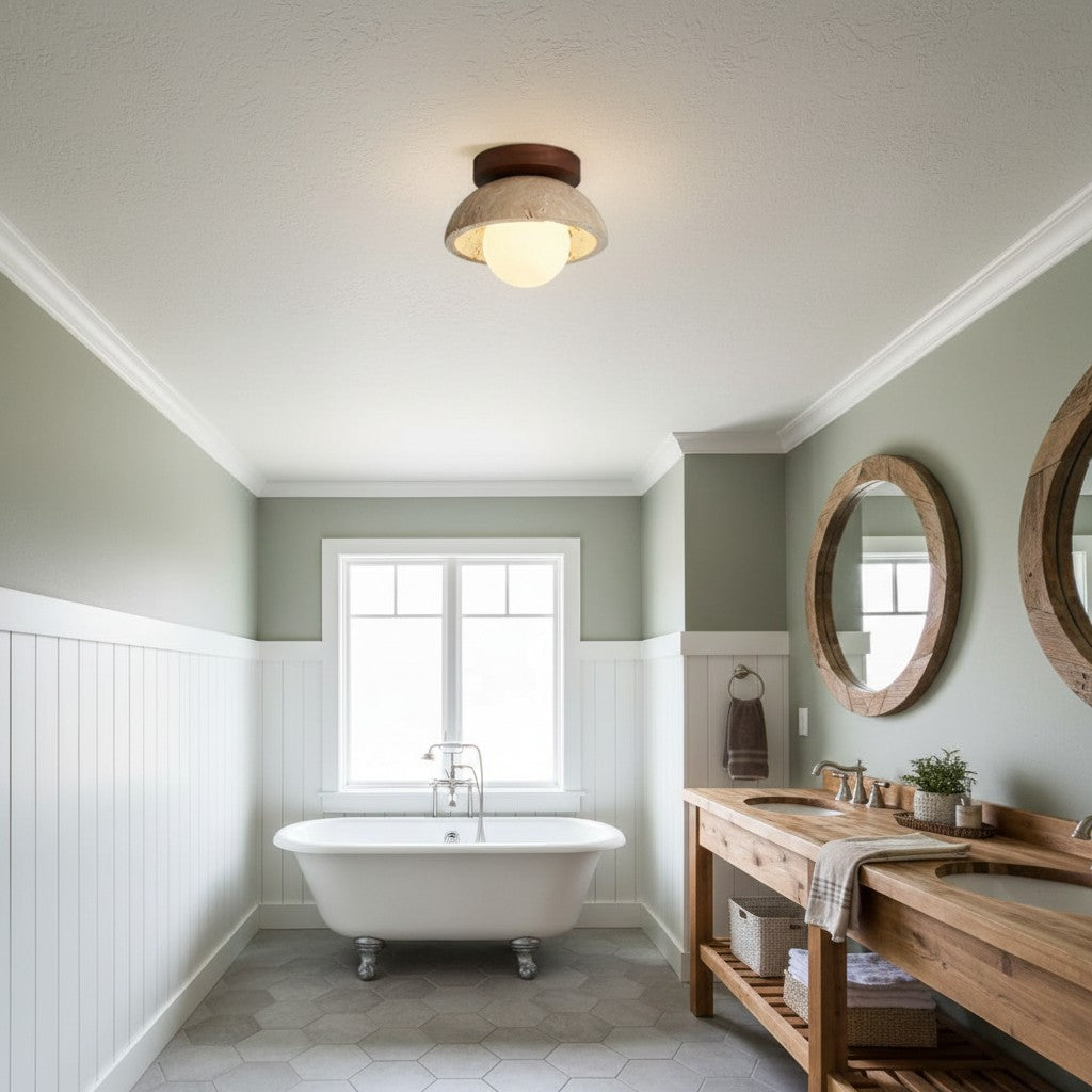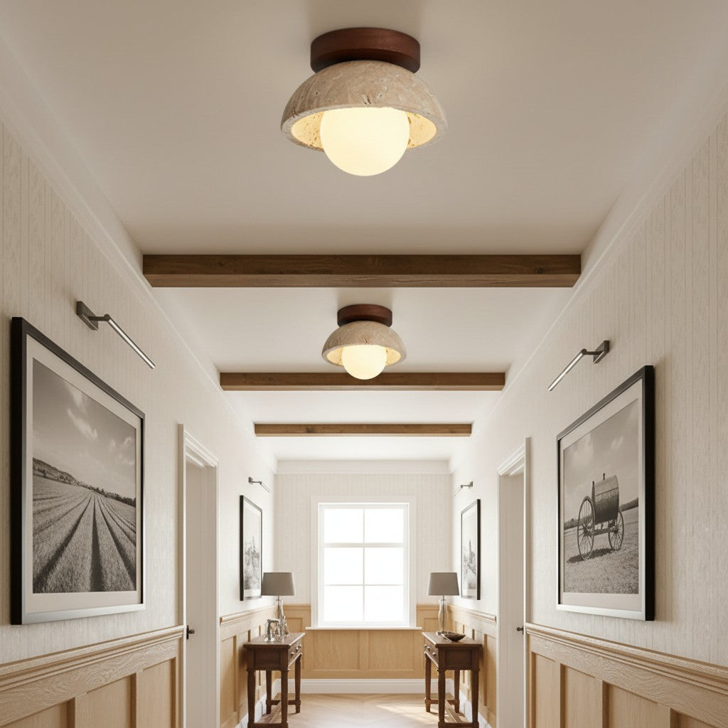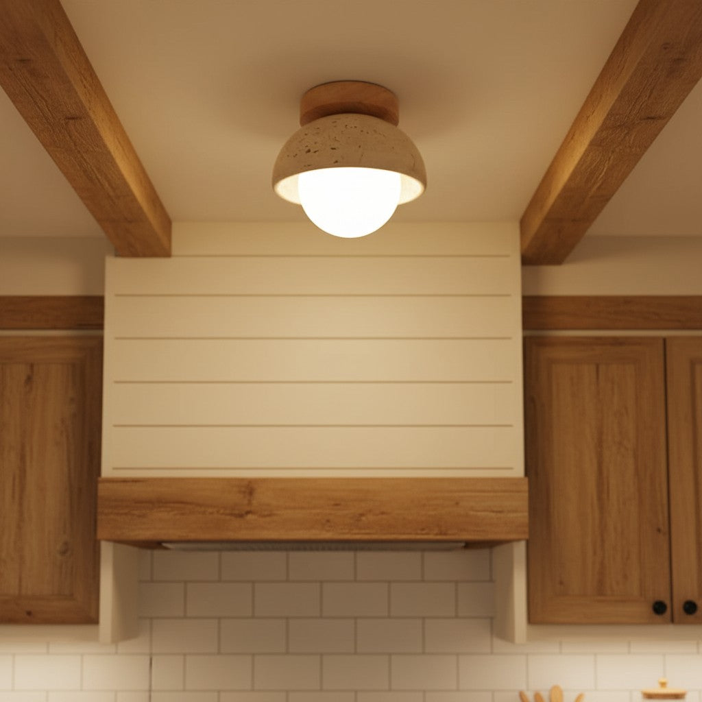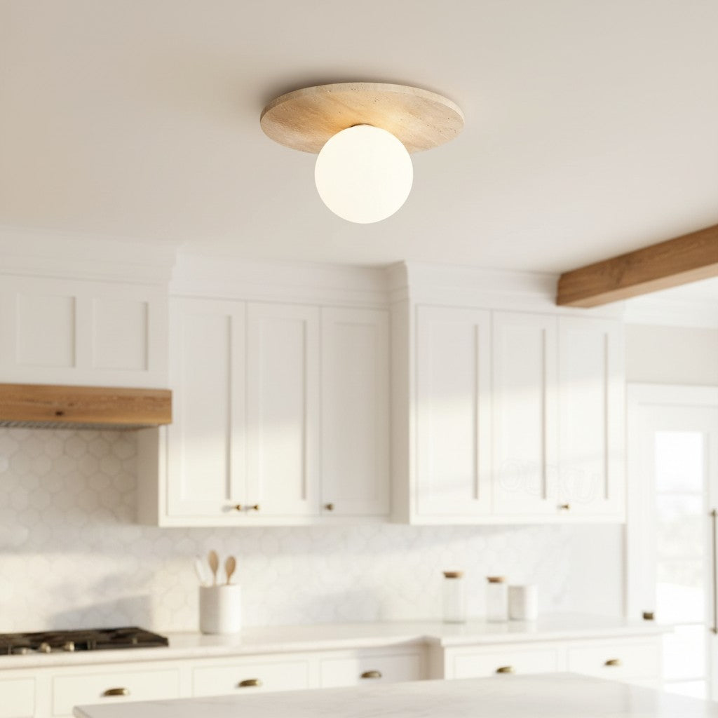 Retro Mid-Century Travertine Cream Round Flush Mount Ceiling Light
