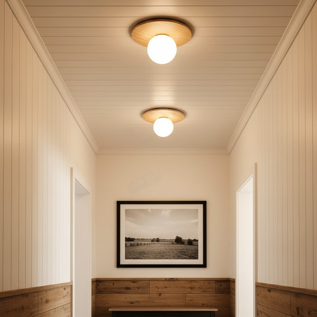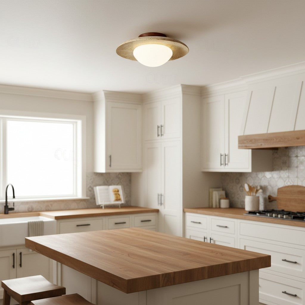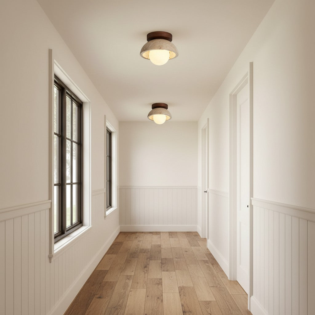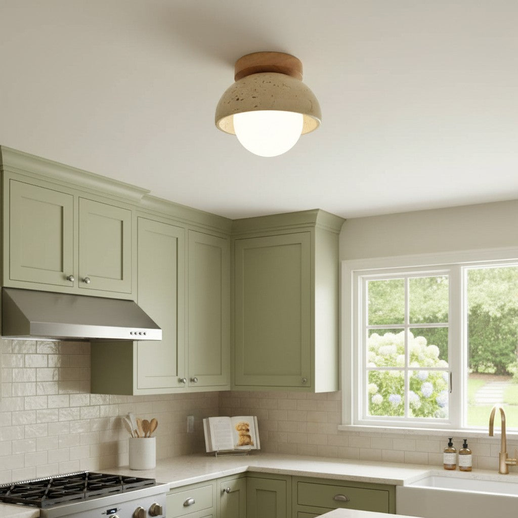 Retro Mid-Century Travertine Cream Round Flush Mount Ceiling Light