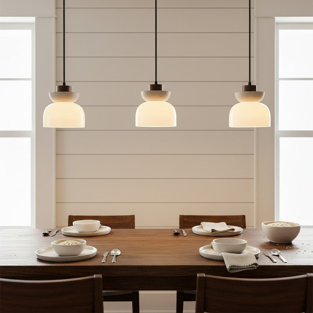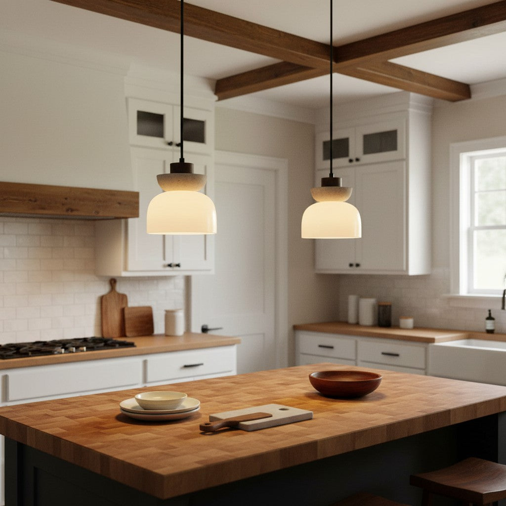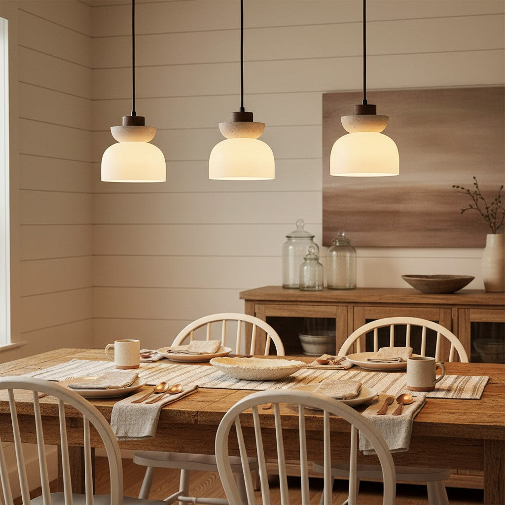 Wabi-Sabi Travertine Frosted Glass Pendant Light for Kitchen Island