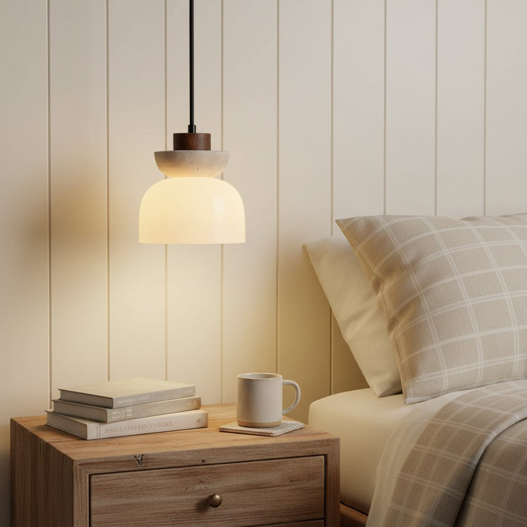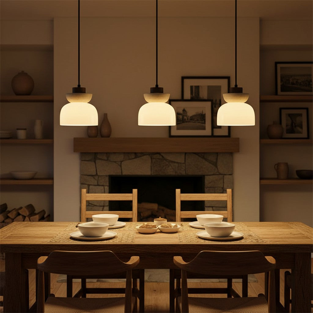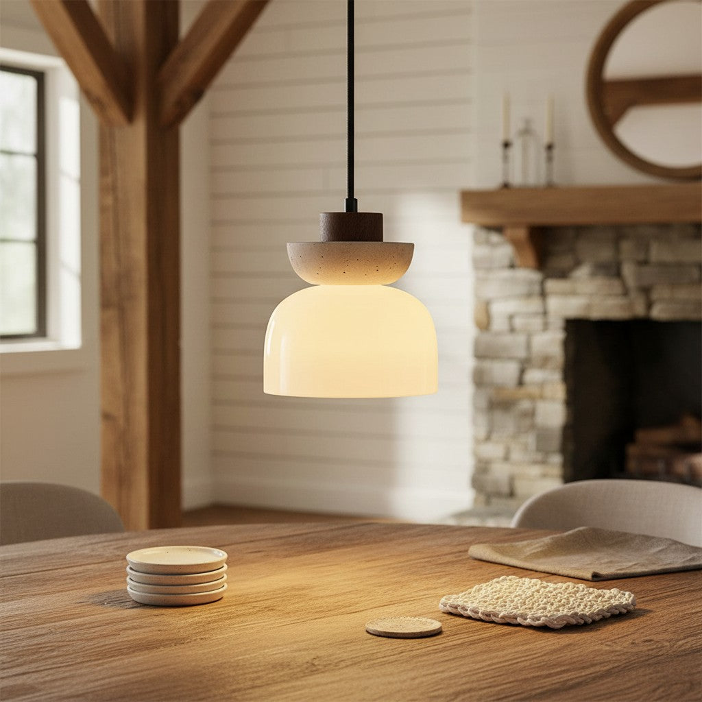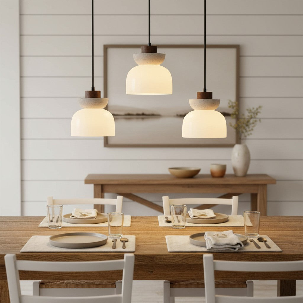 Wabi-Sabi Travertine Frosted Glass Pendant Light for Kitchen Island