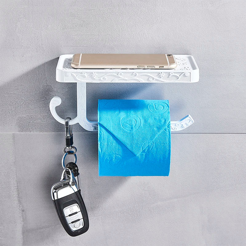Our wall-mounted toilet paper holder features a convenient phone rack, allowing you to keep your device close at hand while you freshen up. The matte Black/white/Antique Brass finish adds a touch of elegance to any bathroom setting, while the minimalist design complements a variety of decor styles.