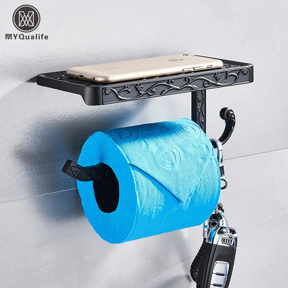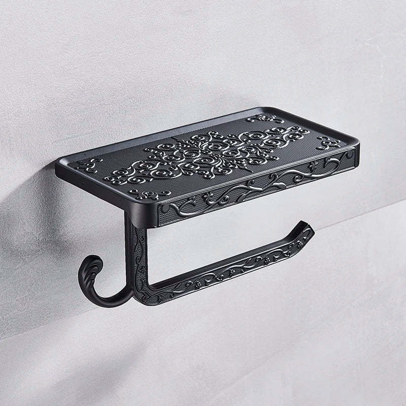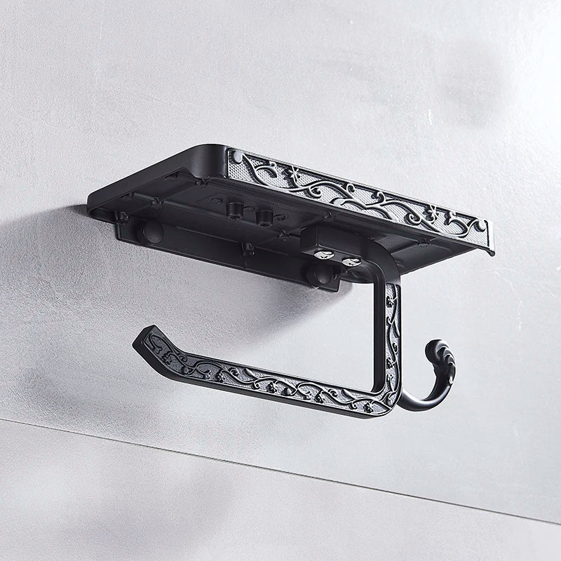 Introducing the Black Toilet Paper Holder with Phone Rack, a sleek and modern addition to your bathroom decor. Crafted from high-quality Aluminum Alloy, this paper holder is designed to last and withstand the test of time.