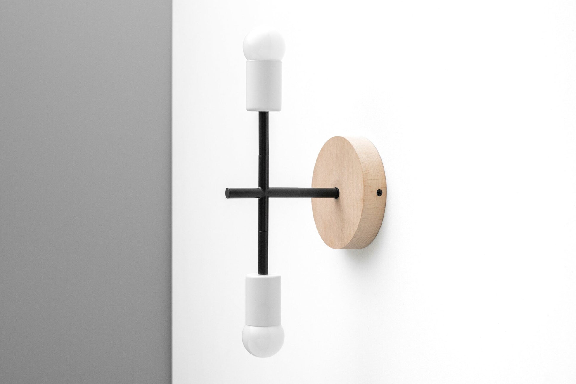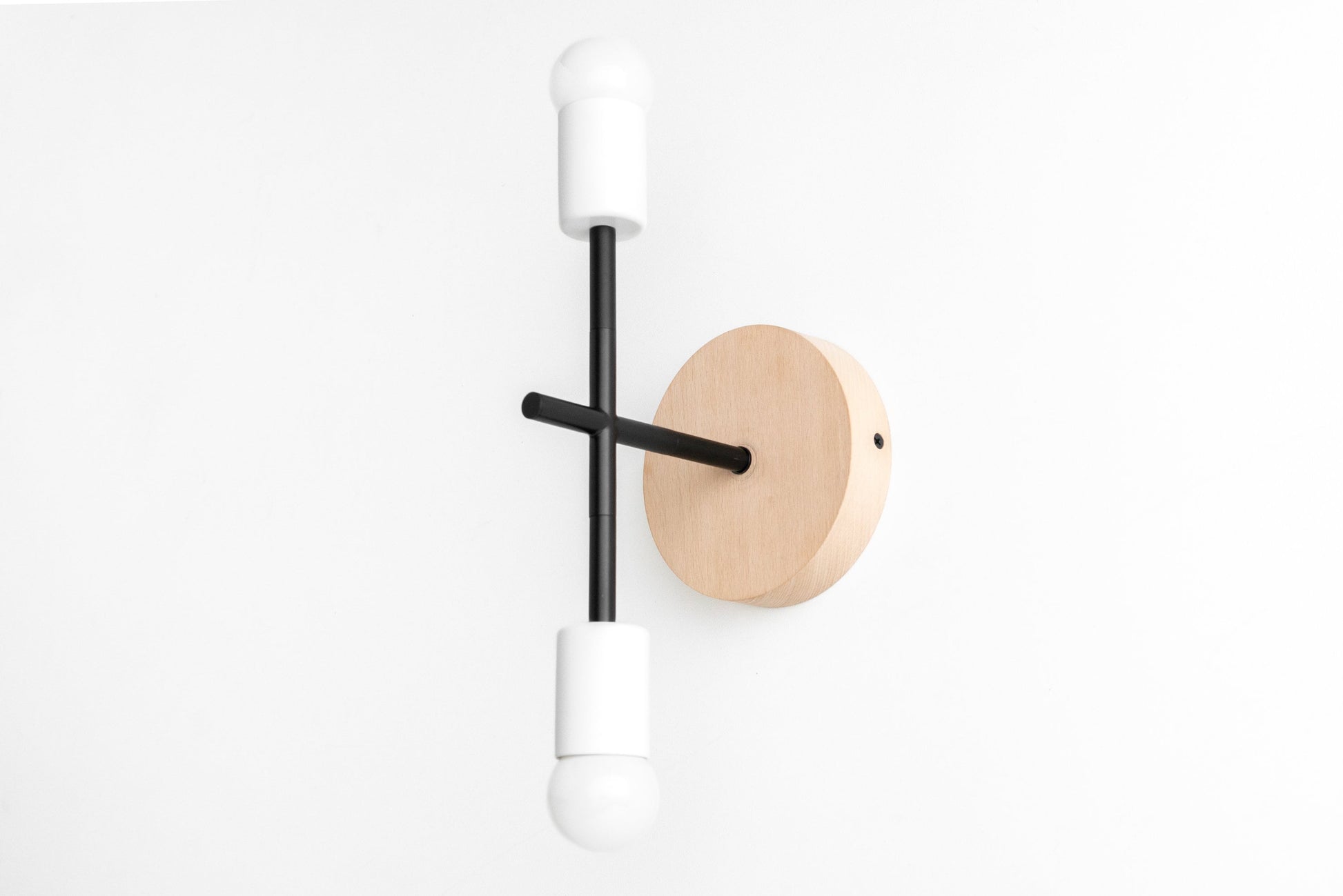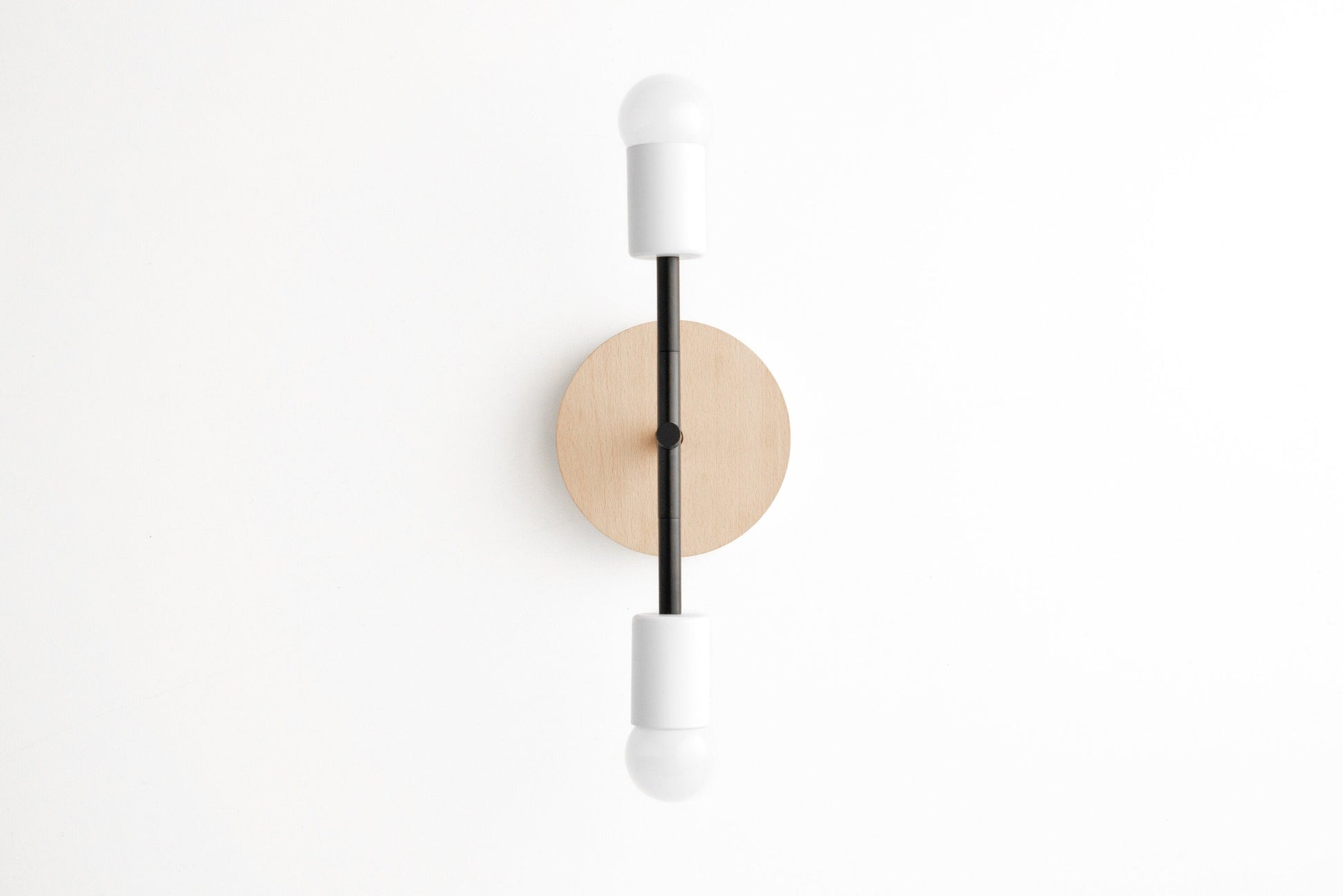 This unique Scandinavian inspired wall sconce features natural unfinished beechwood.