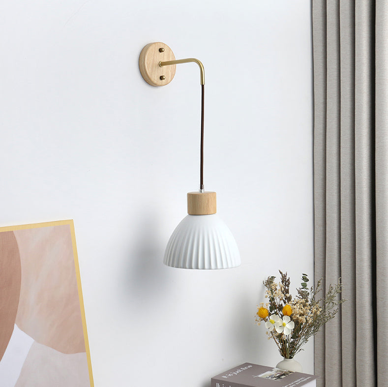 Add a modern layer of interest to your home with this ceramic wall light. This lamp features a wooden wall plate and a ceramic lampshade. The shape has both traditional and modernism, and with its exquisite design, it is suitable for contemporary rooms.