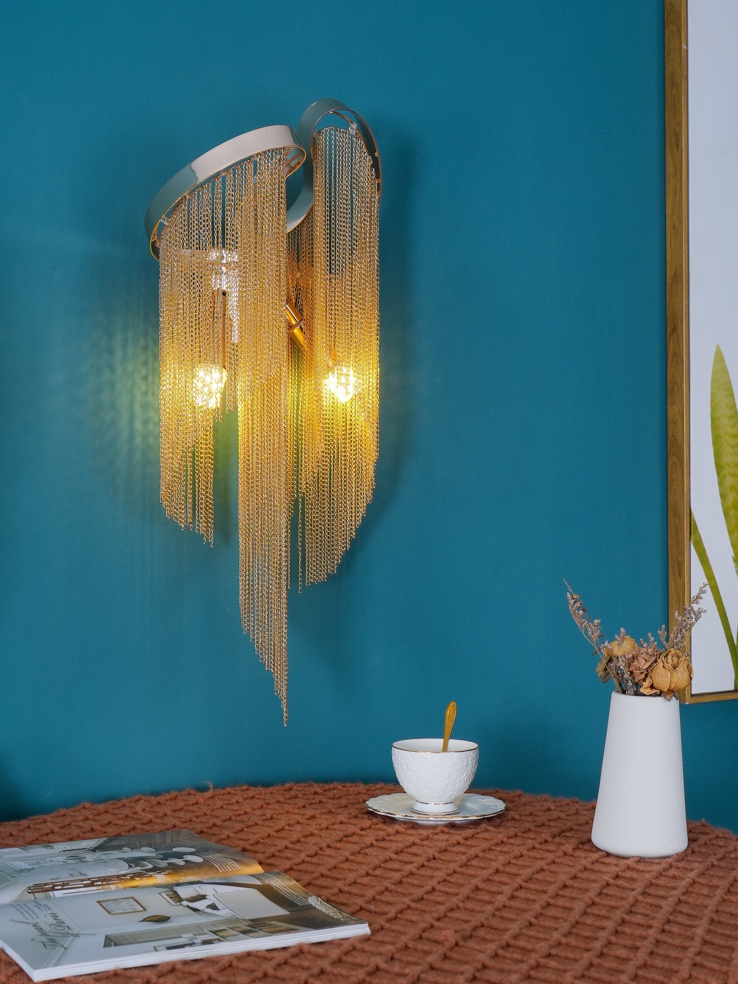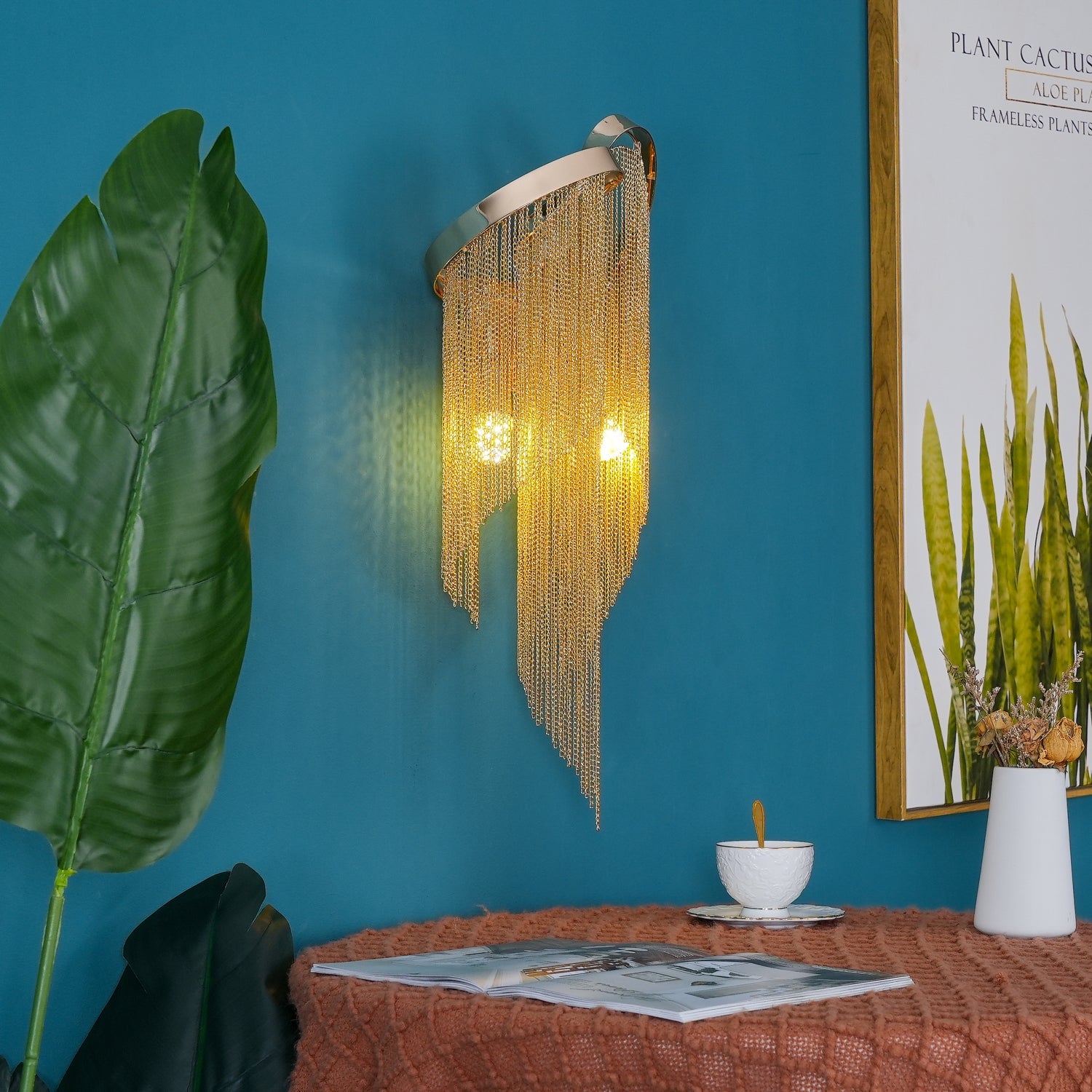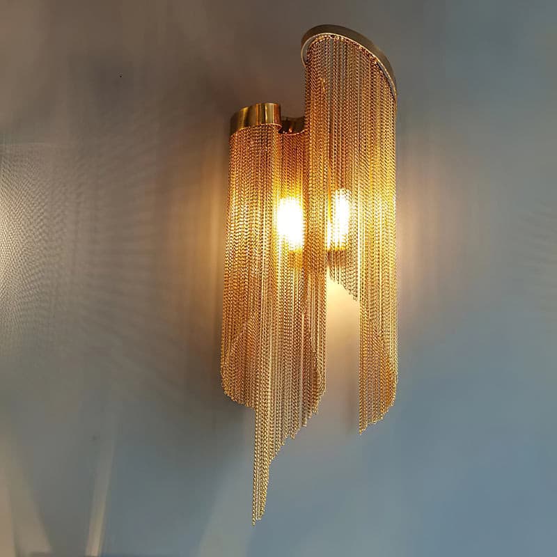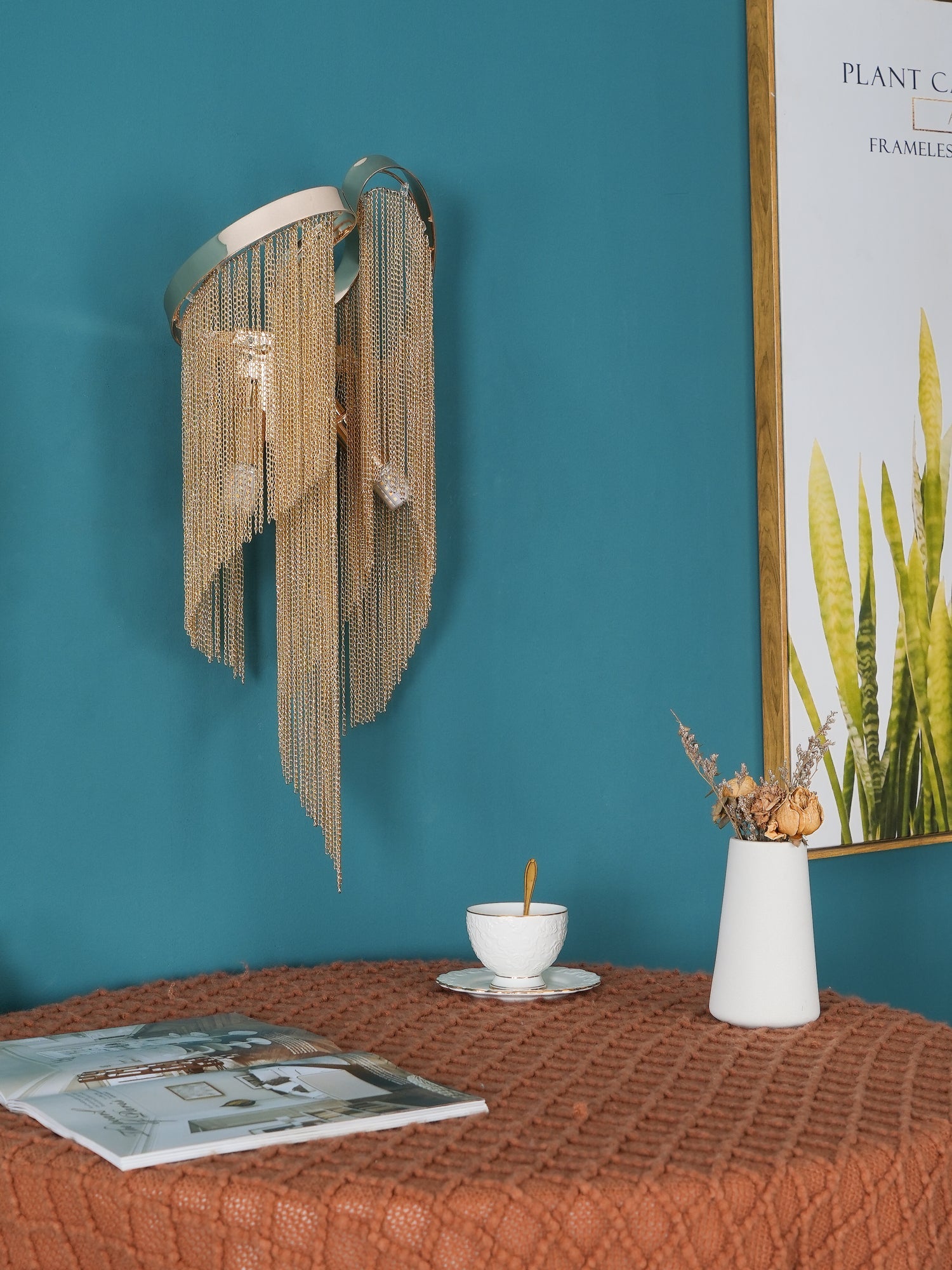 This beautiful unique modern chain tassel wall sconce is perfect for hotels, restaurants, living rooms, dining rooms, and bedrooms. Truly an eye-catching design that is sure to impress.
