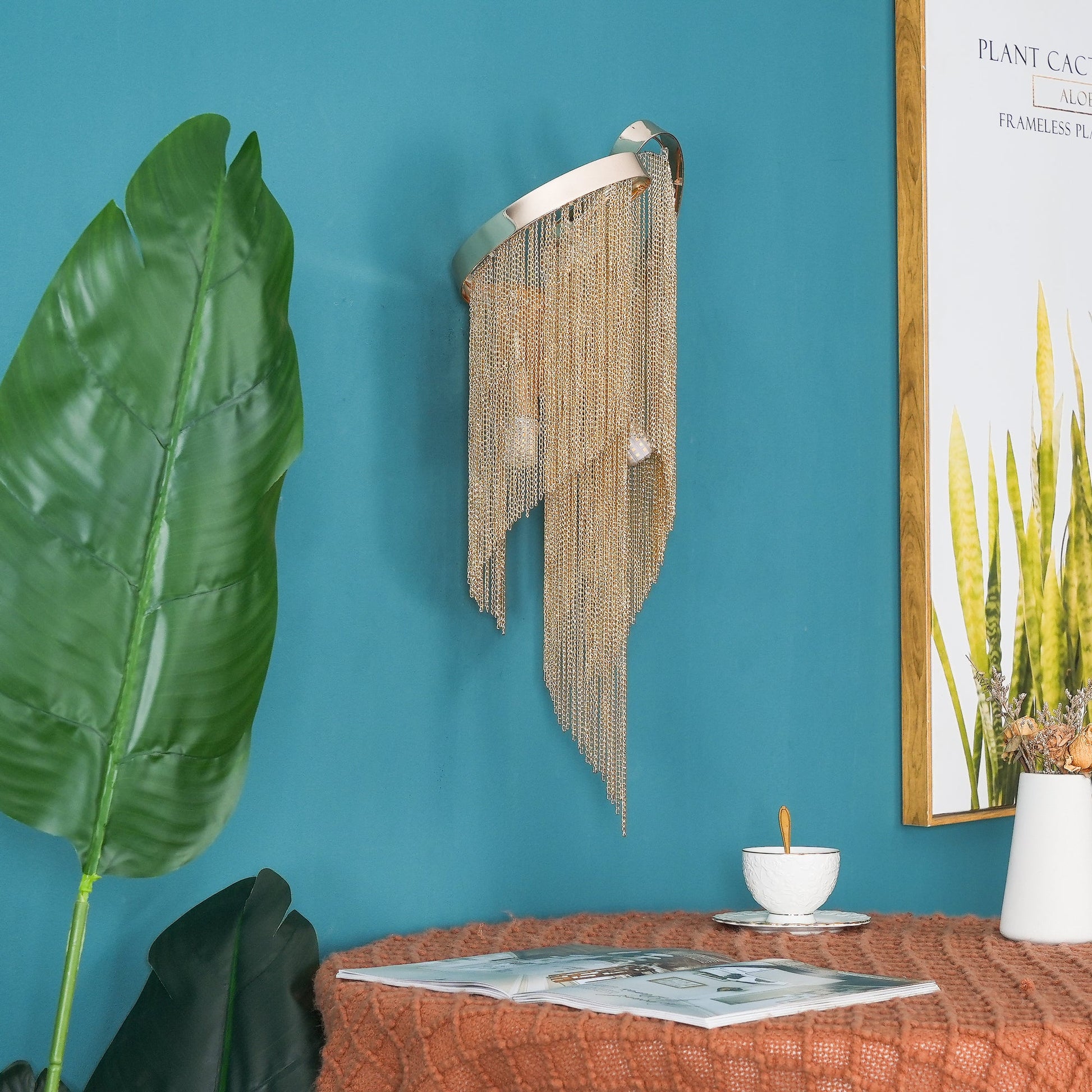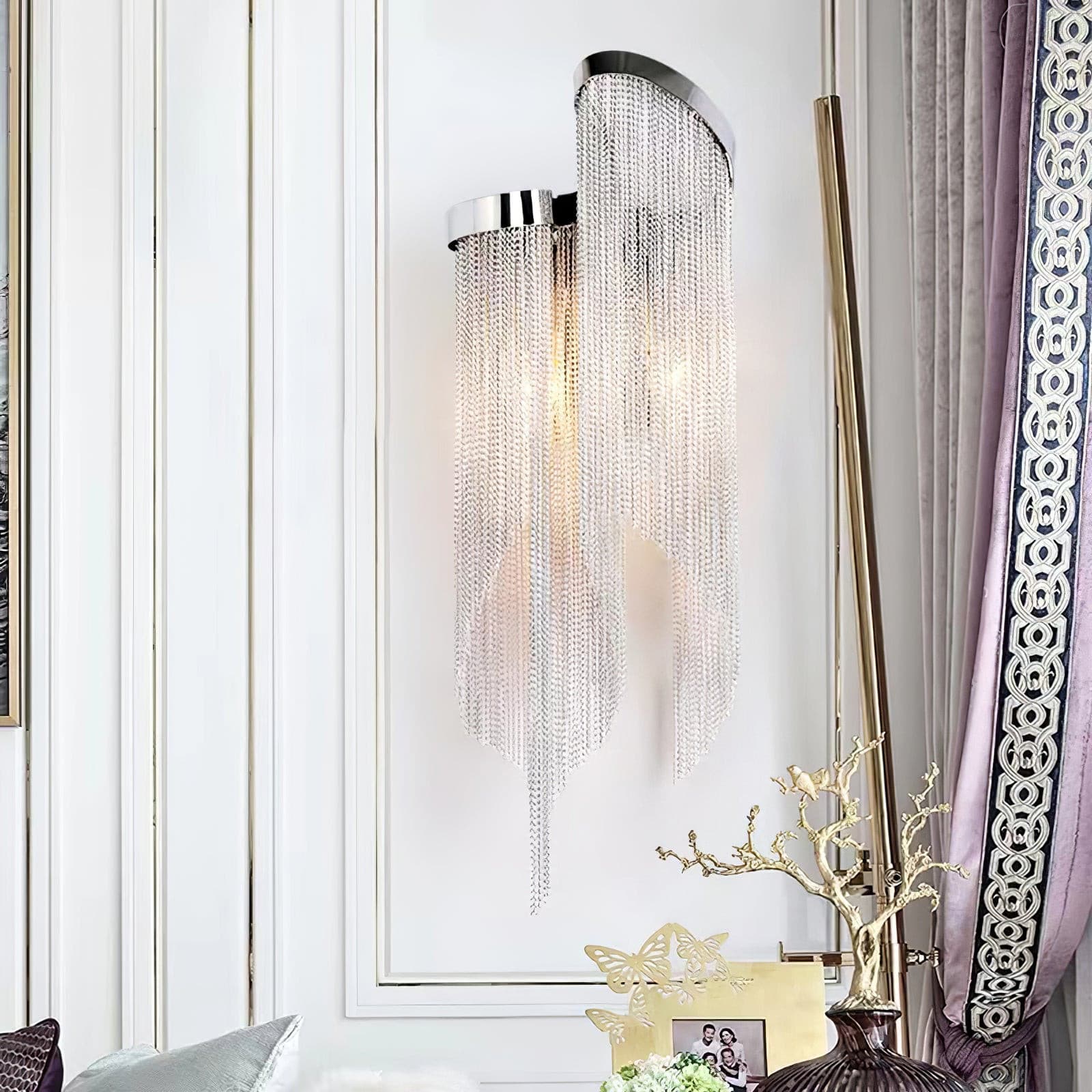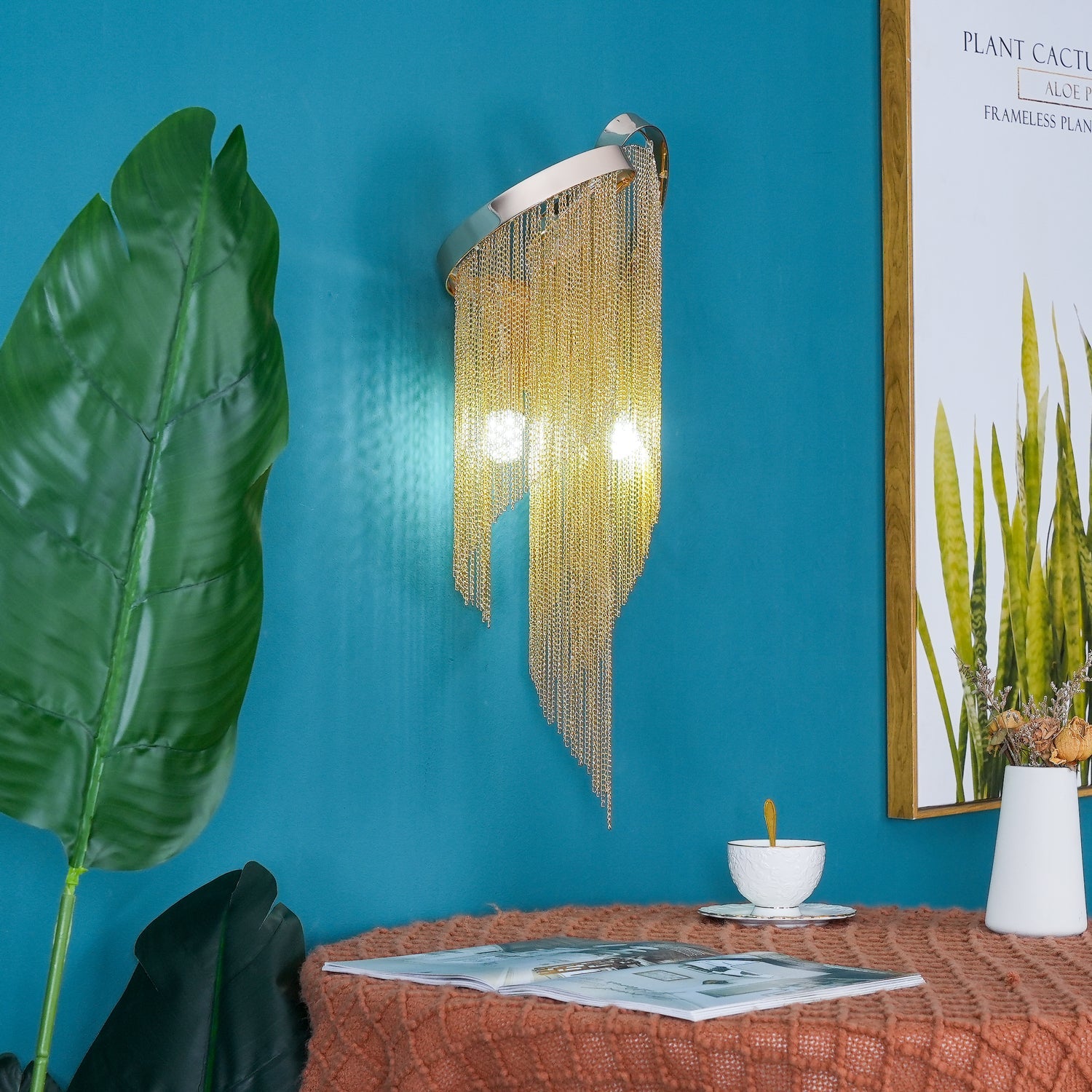 This beautiful unique modern chain tassel wall sconce is perfect for hotels, restaurants, living rooms, dining rooms, and bedrooms. Truly an eye-catching design that is sure to impress.