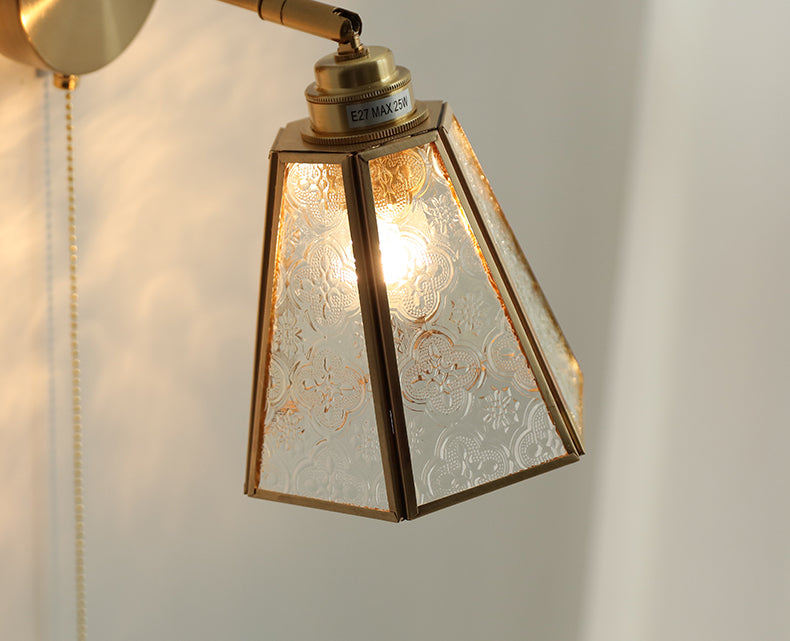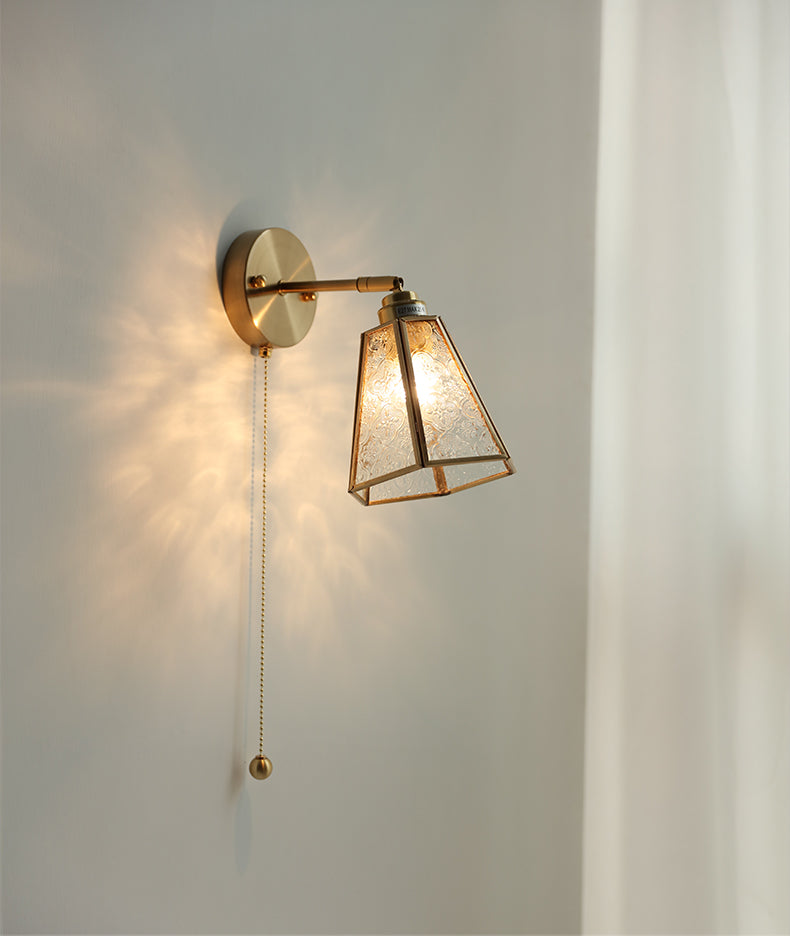 Make a statement with our beautiful glass brass wall light. Featuring a textured glass lampshade and luxe brass hardware, this light is perfect for adding a touch of sophistication to any room. With its easy installation and high-quality design, this timeless wall light will instantly transform your space and give it a unique look that will last for years to come.
