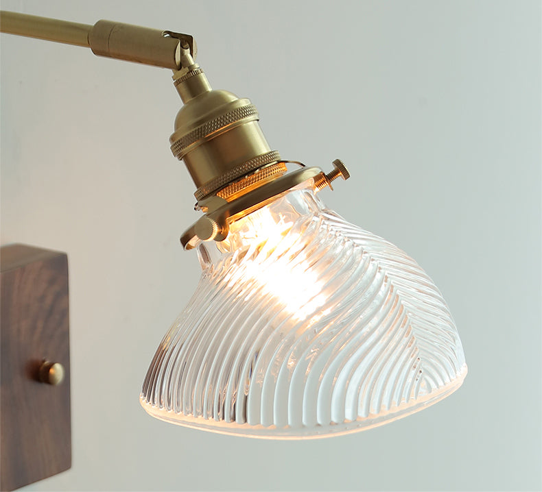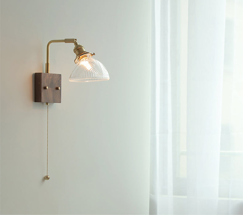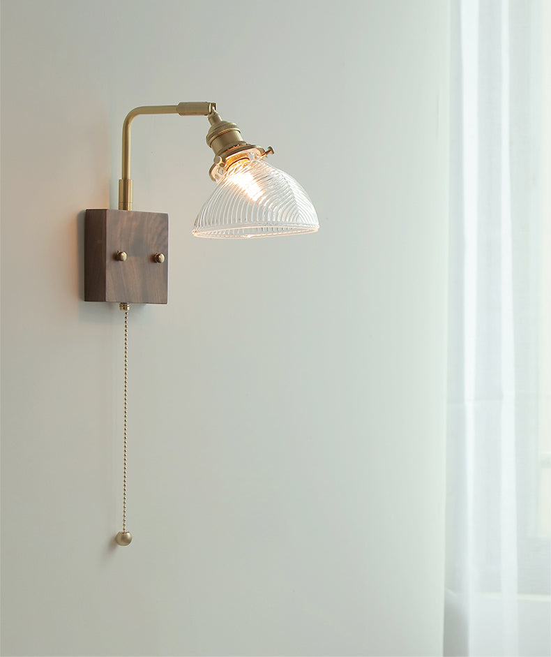 Add a modern layer of interest to your home with this glass wall light. This lamp features a wooden wall plate and a glass lampshade. The shape has both traditional and modernism, and with its exquisite design, it is suitable for contemporary rooms.