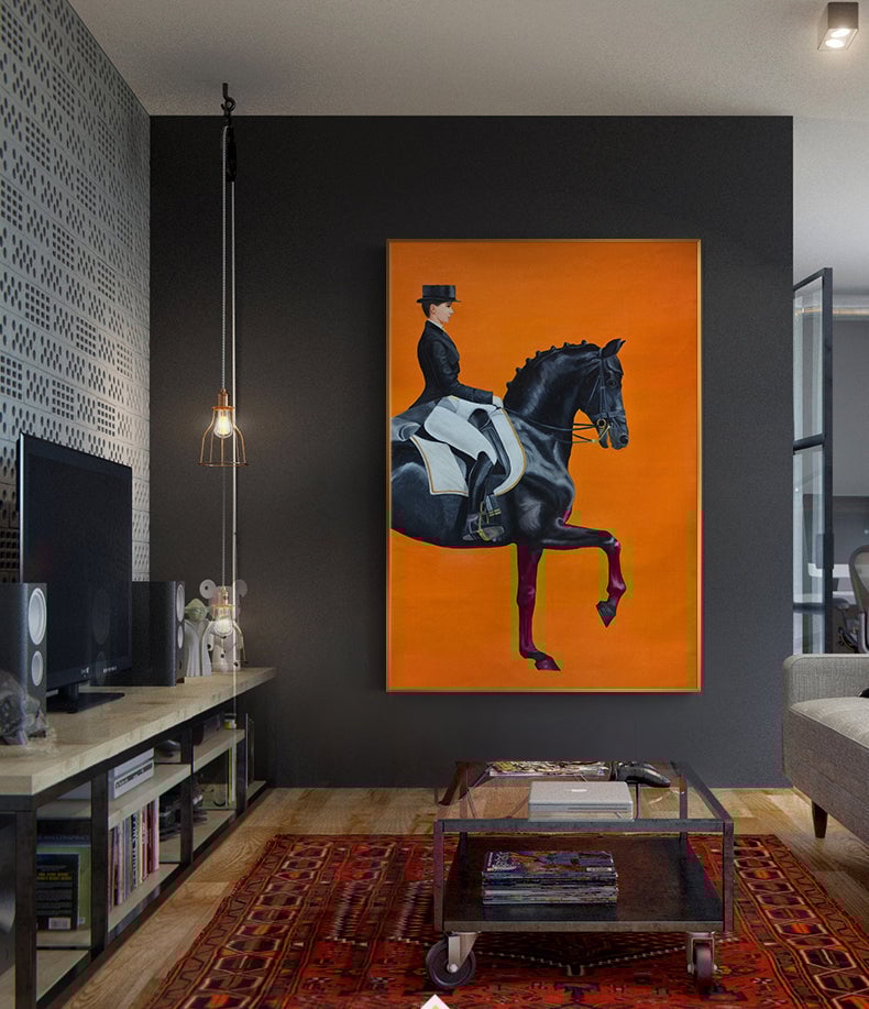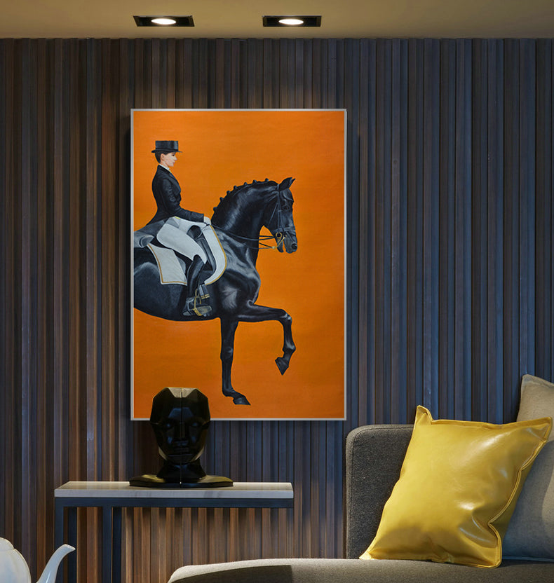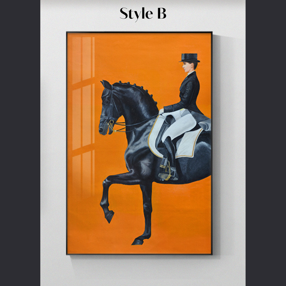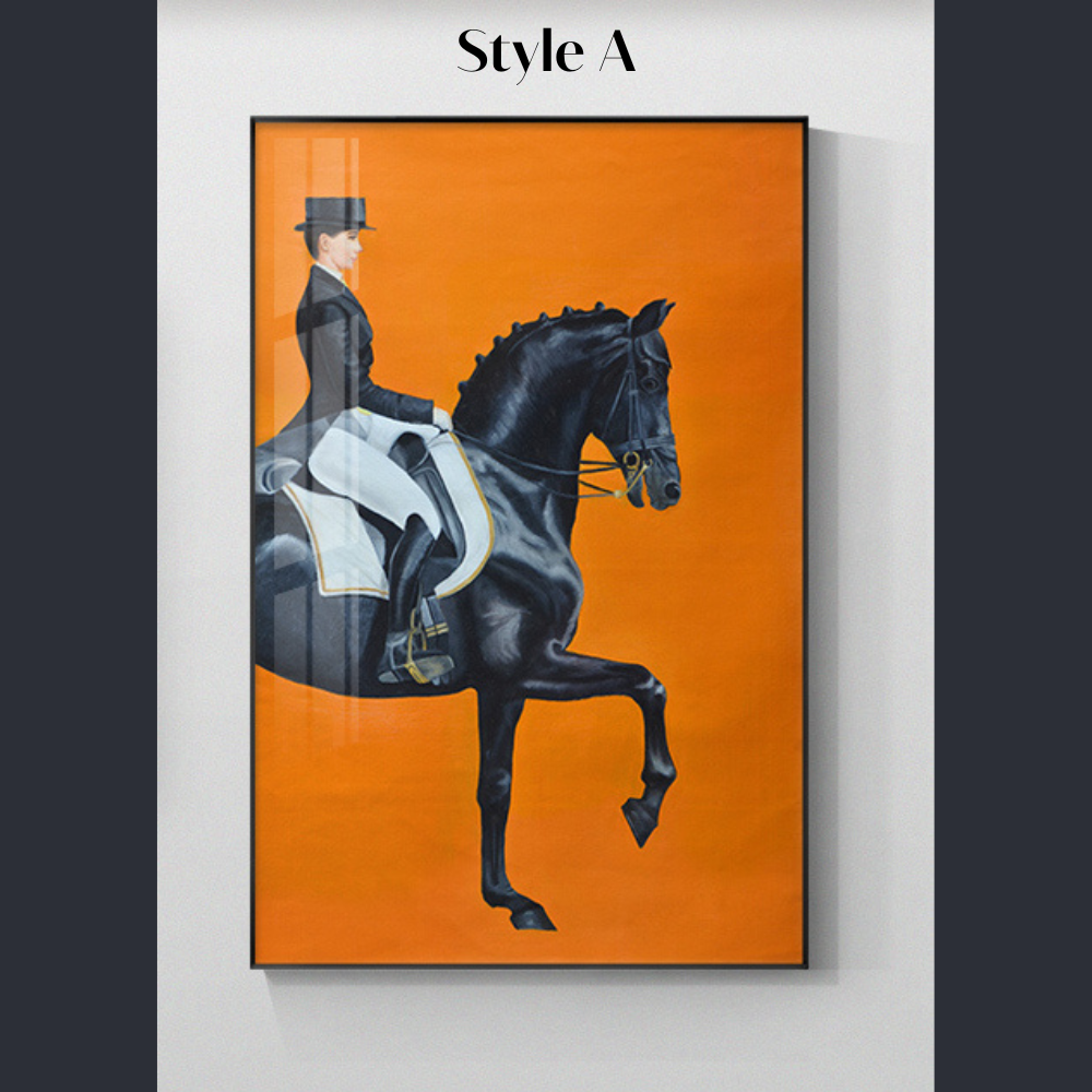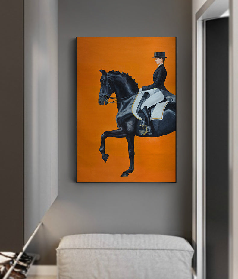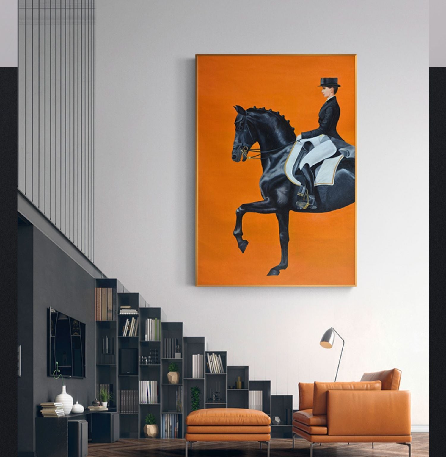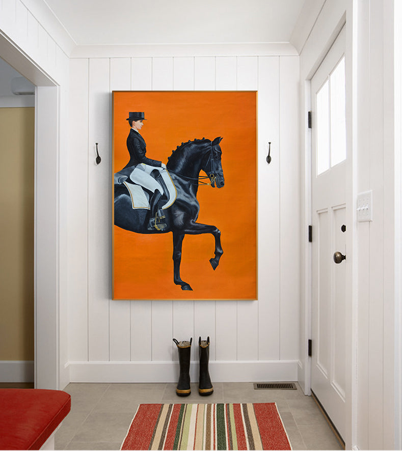 This Hermes Jokey Style Wall Art adds a classic touch to any home. Offering both canvas print and hand oil painting, this wall art features a horse with a jokey on an orange background in Hermes style. Hang it up to create a unique aesthetic in any room.