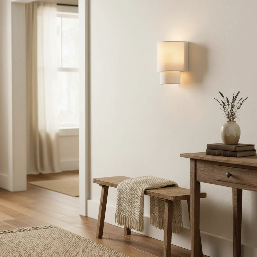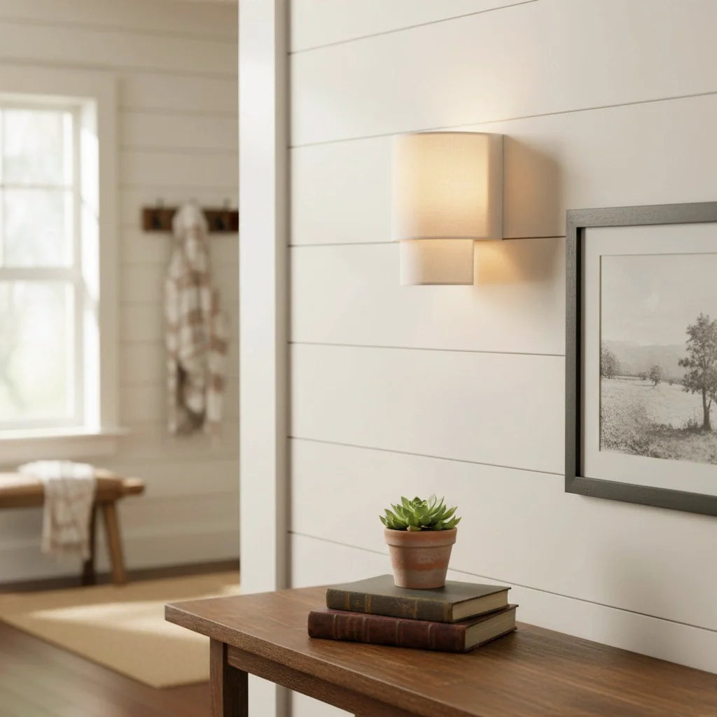 Seamlessly blending style and function, this wall lamp offers the ultimate convenience of cord-free, rechargeable power and simple touch control. Its fabric-diffused light builds a contemporary and cozy feel for bedrooms, hallways, and more.