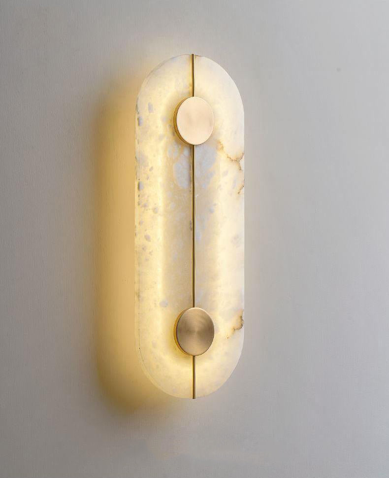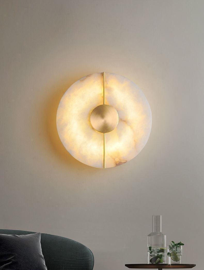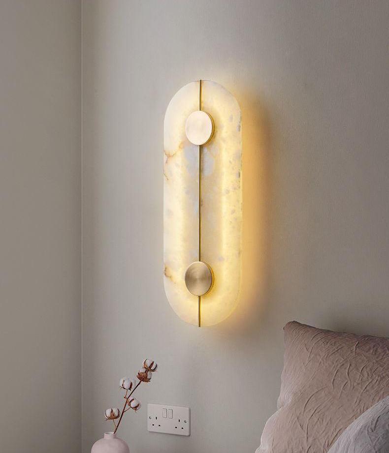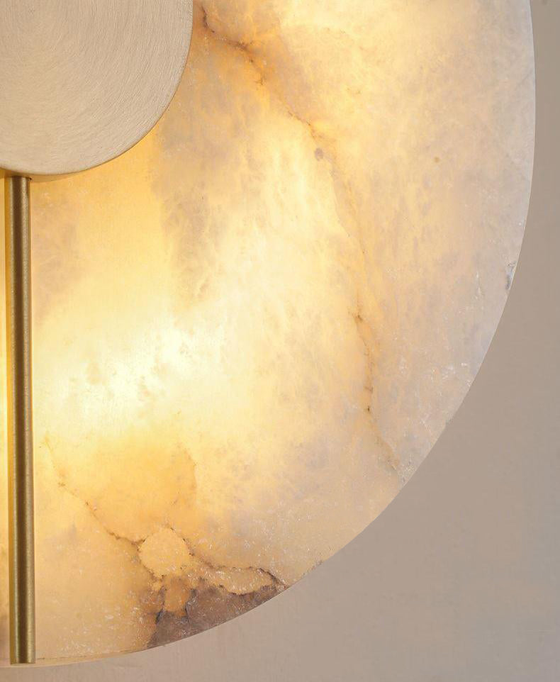 Instantly elevate your home decor with the beautiful marble wall light. The perfect combination of classic brass hardware and sophisticated marble shade will bring a touch of glamour to any room. Get ready to be amazed by its subtle but refined lighting effect, ideal for creating a cozy atmosphere in bedrooms, living rooms, and hallways. With its timeless design, it's no wonder why it's becoming the must-have item for interior design aficionados.