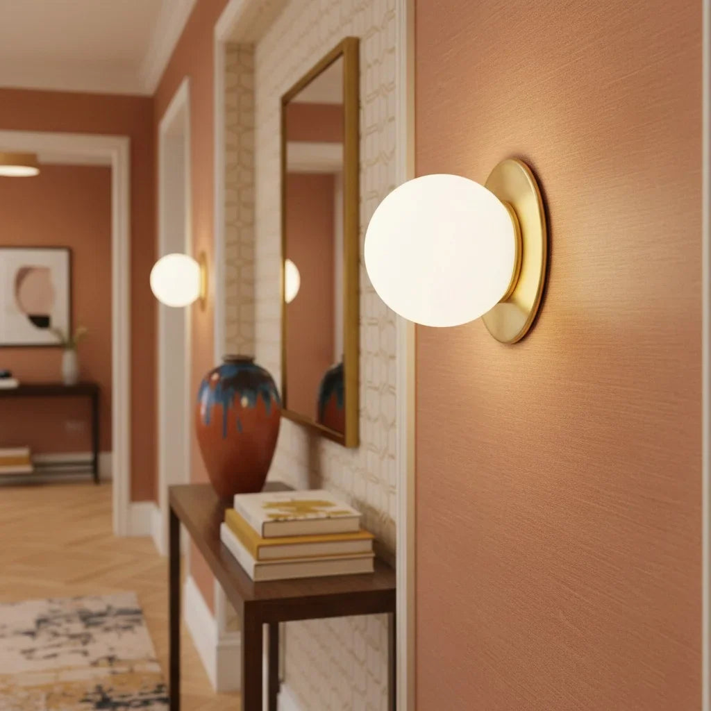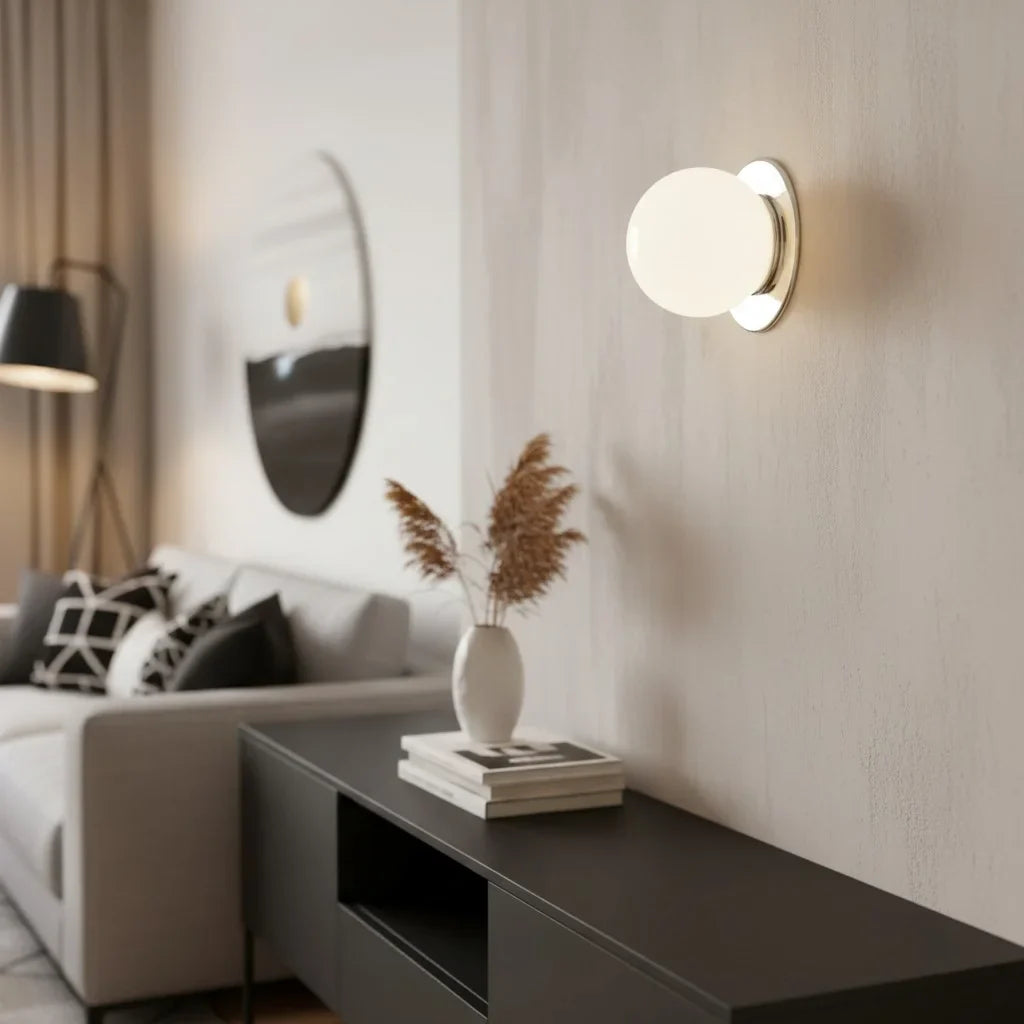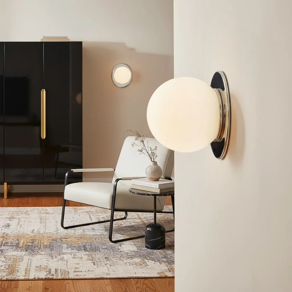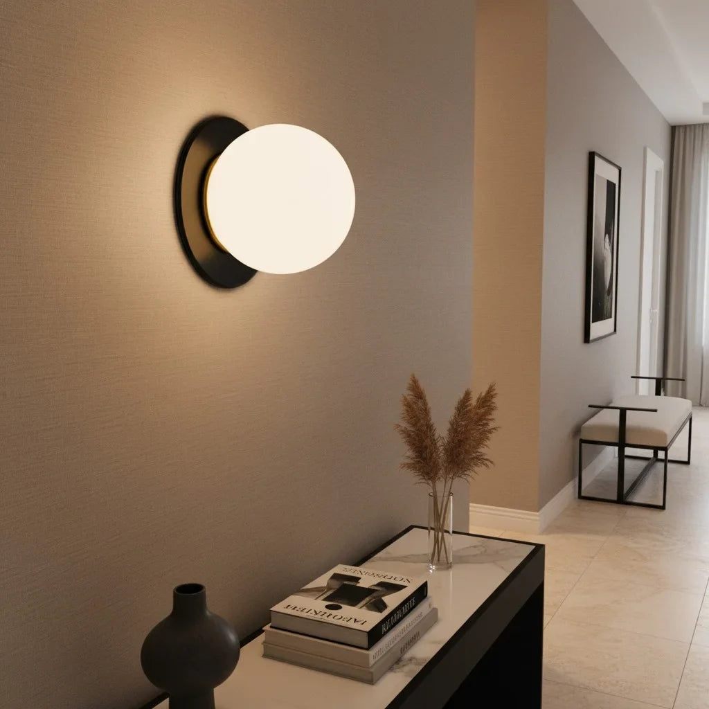 Featuring a smooth opal glass orb paired with sleek finishes and a slim backplate, it blends timeless, versatile design with gentle illumination. Perfect for bedrooms, living areas, hallways, or bathrooms, this fixture works beautifully alone or in pairs to elevate both contemporary and classic interiors—adding a refined, cozy touch to your space.