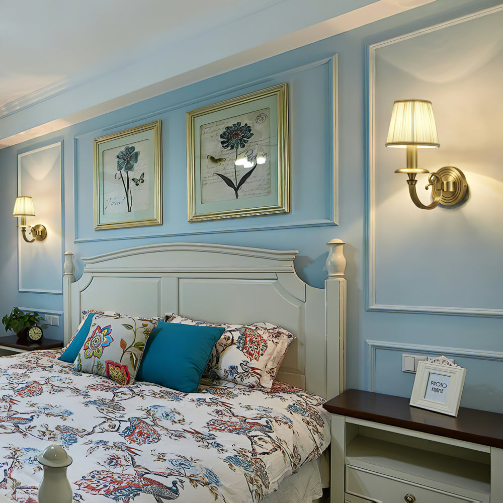 The elegant Pleated Brass Wall Light from the antique brass range has beautifully curved arms and simple clean detailing. It's complemented by pretty, White fabric effect shades. The Pleated Brass Wall Light is a premium quality, solid brass fitting in a Georgian style with a decorative detailed finish. Comes with pretty, pleated White fabric effect shades.