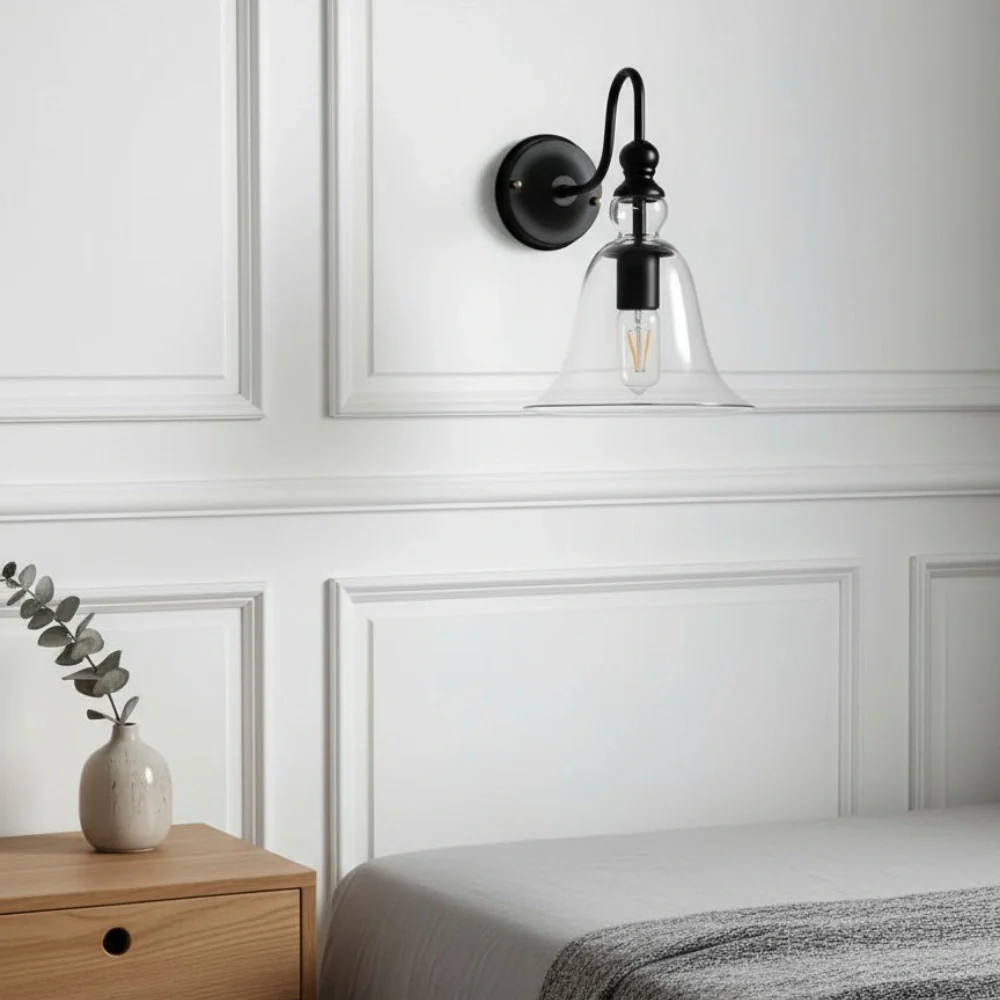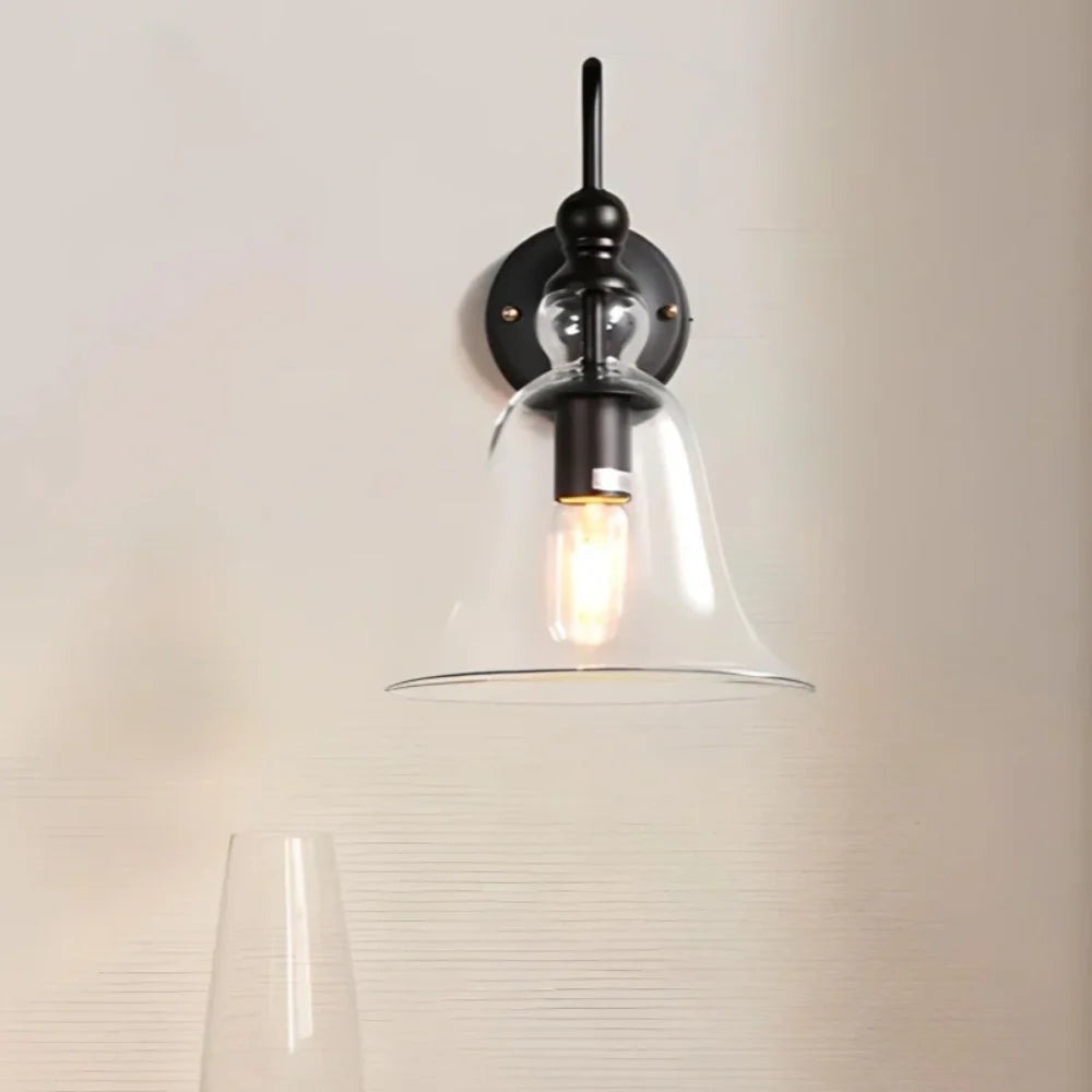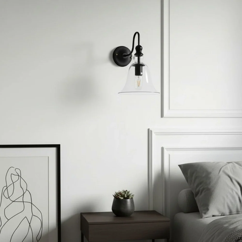 This wall lamp is made of clear glass and is perfect for rural or minimalist style bedrooms, living rooms, or corridors.