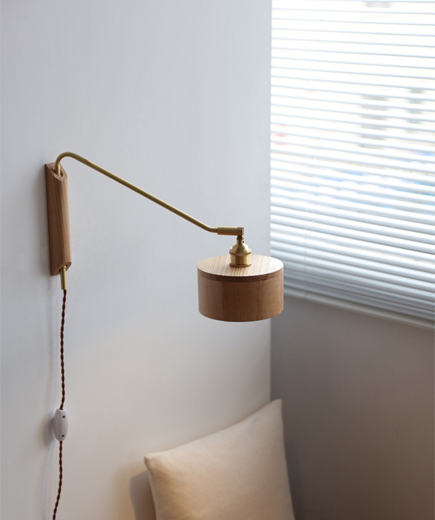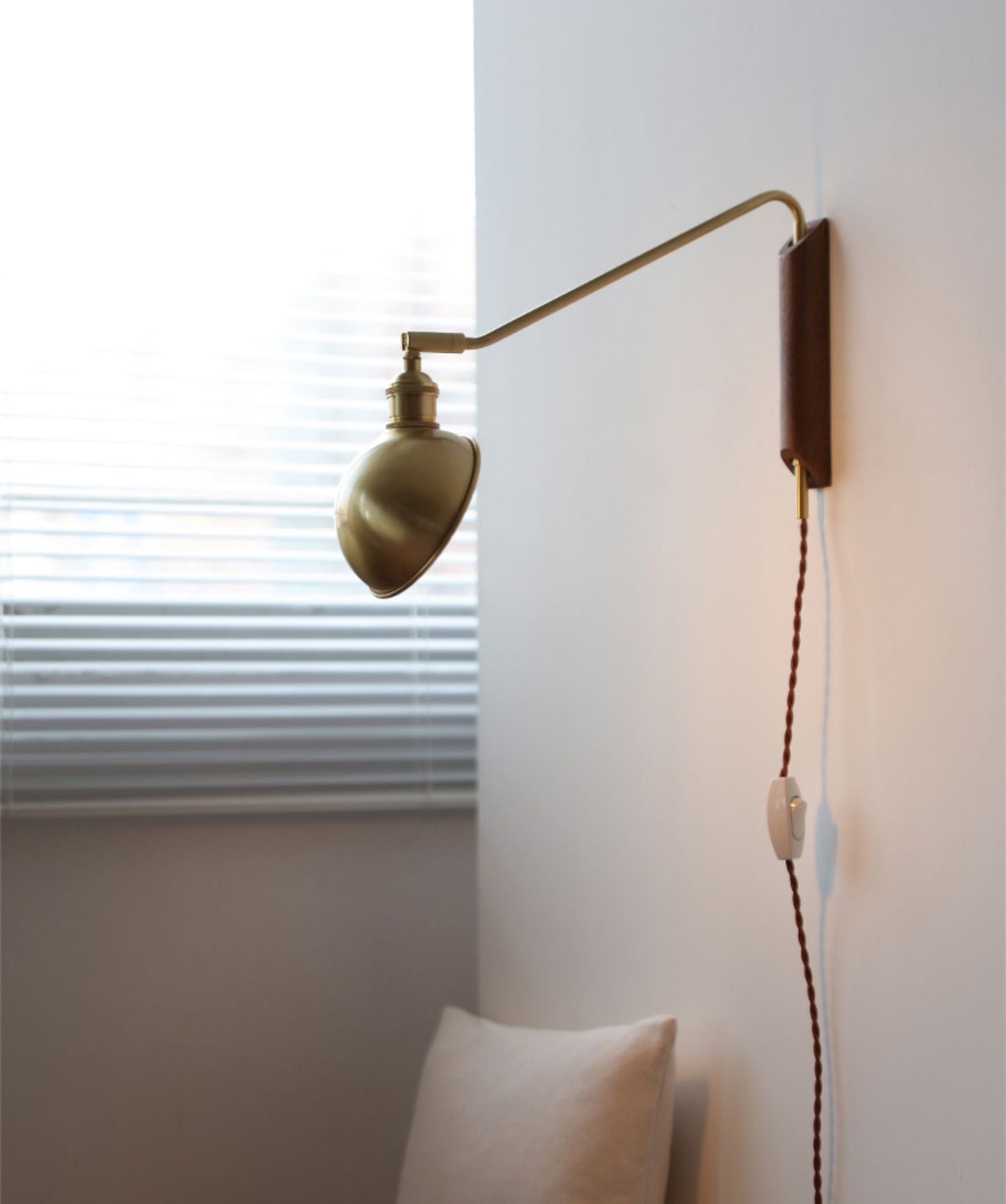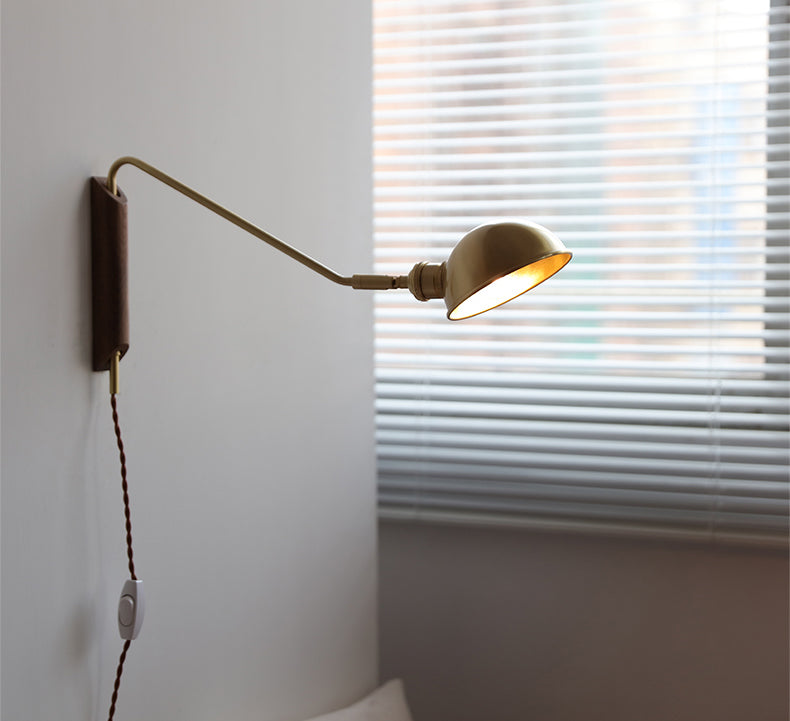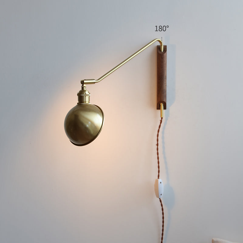 Add a touch of class to your decor with this swing arm plug-in wall light inspired by the timeless aesthetic of sleek metal and wood, featuring a light fixture made from natural wood, brass hardware, and a brass or wood lampshade that adds a wonderful aesthetic to any space.
