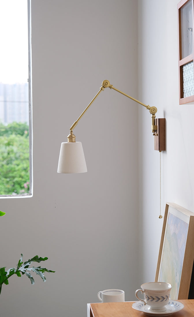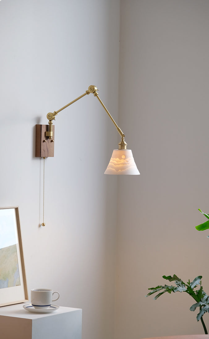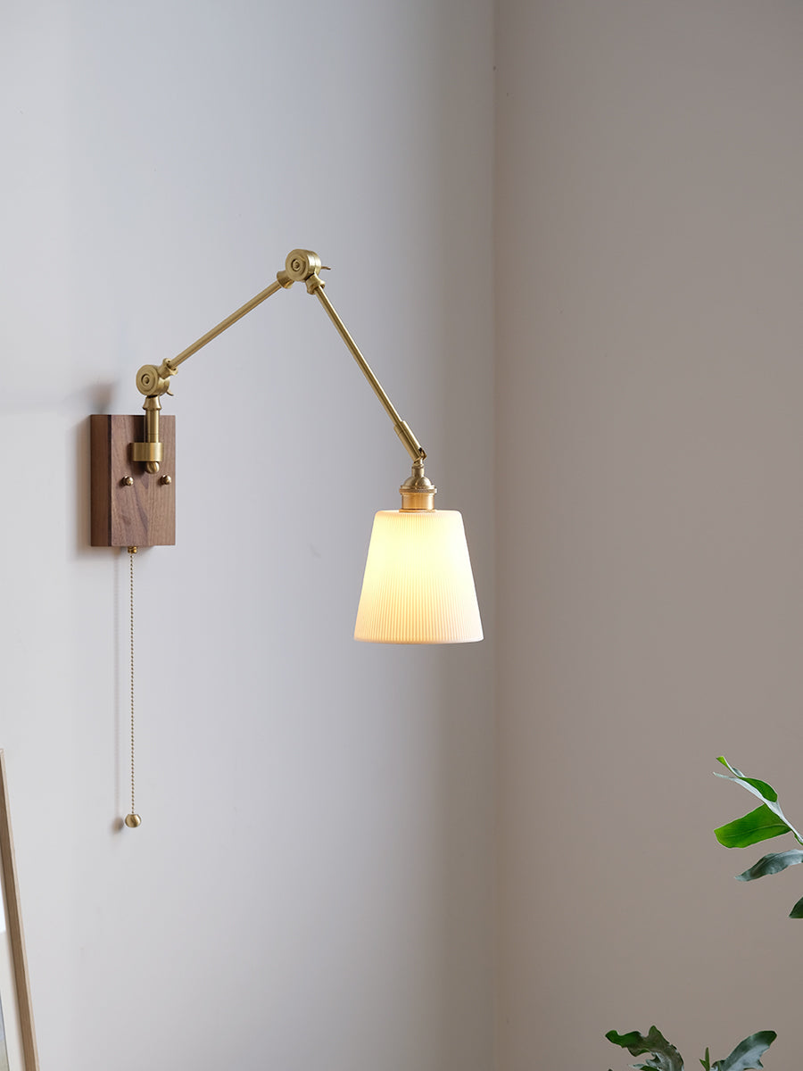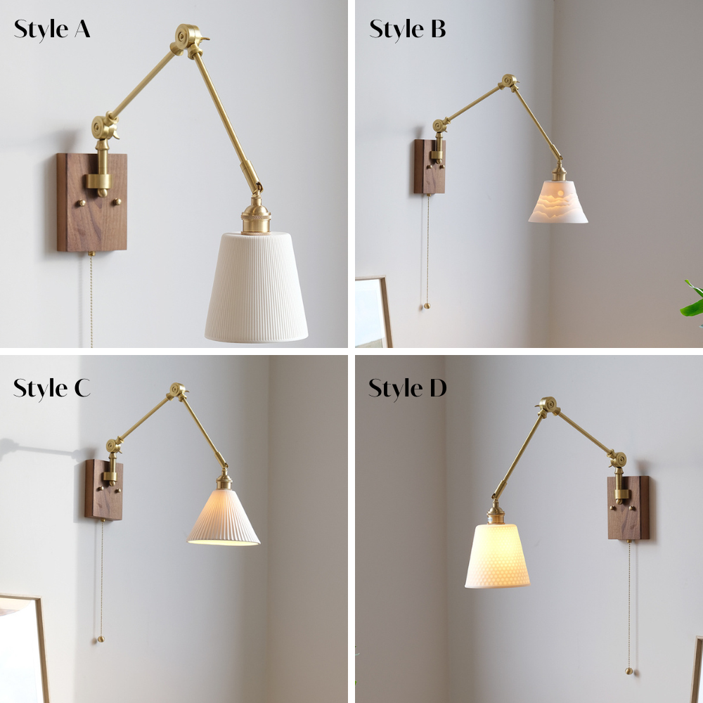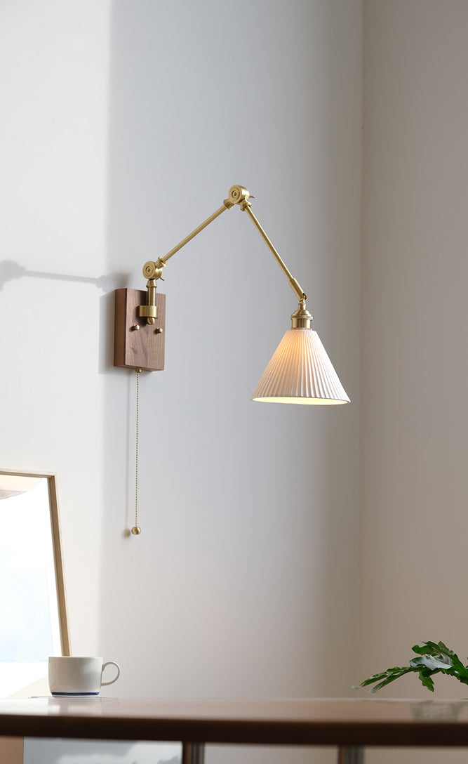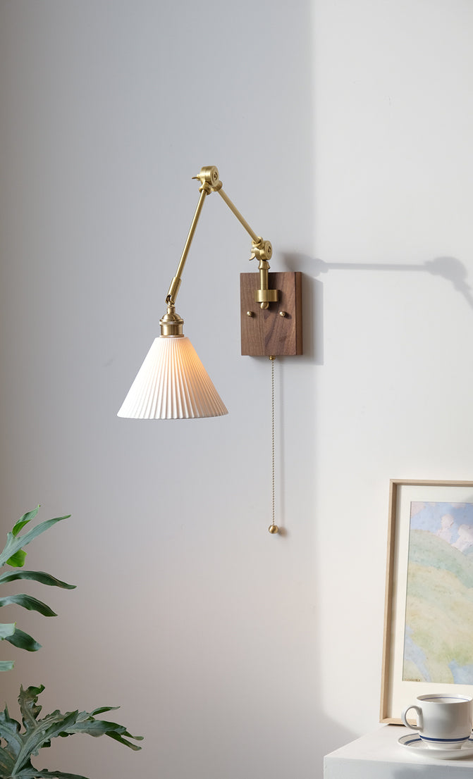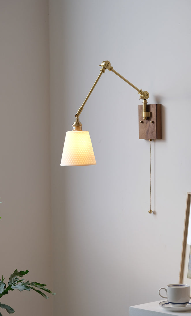 Add a modern layer of interest to your home with this wall light with a wood walnut wall plate. This lamp features a wooden wall plate and ceramic lampshade. The shape has both traditional and modernism, and with its exquisite design, it is suitable for contemporary rooms.