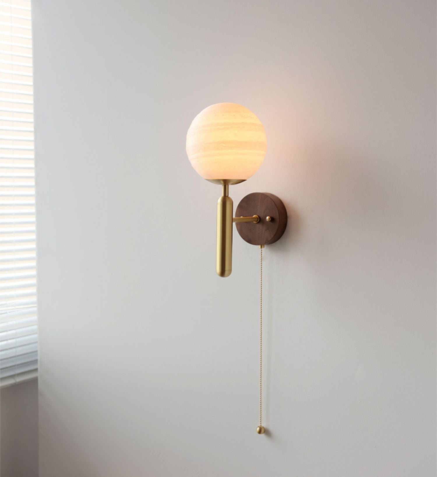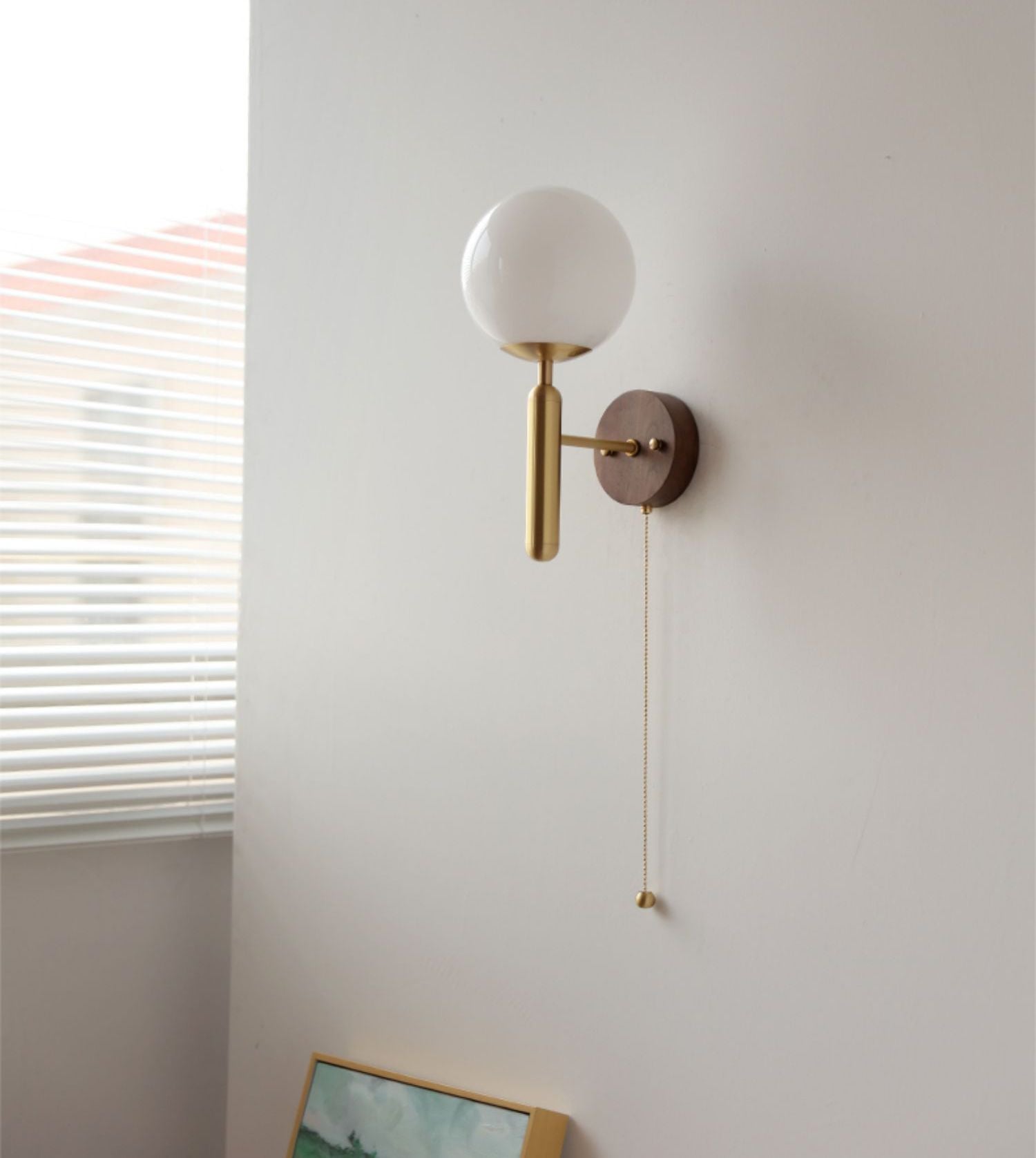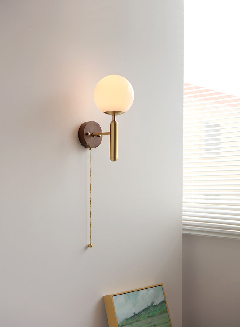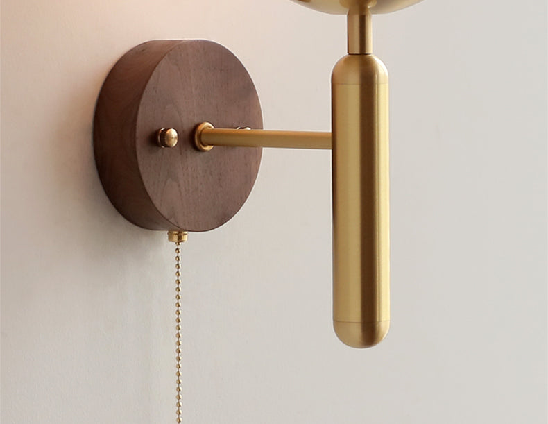Add a modern layer of interest to your home with this wall light with a wood walnut wall plate. This lamp features a wooden wall plate and a glass or PE lampshade. The shape has both traditional and modernism, and with its exquisite design, it is suitable for contemporary rooms.