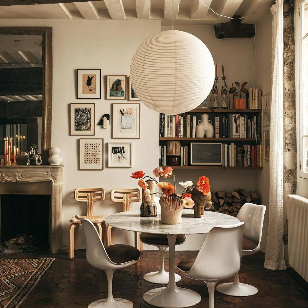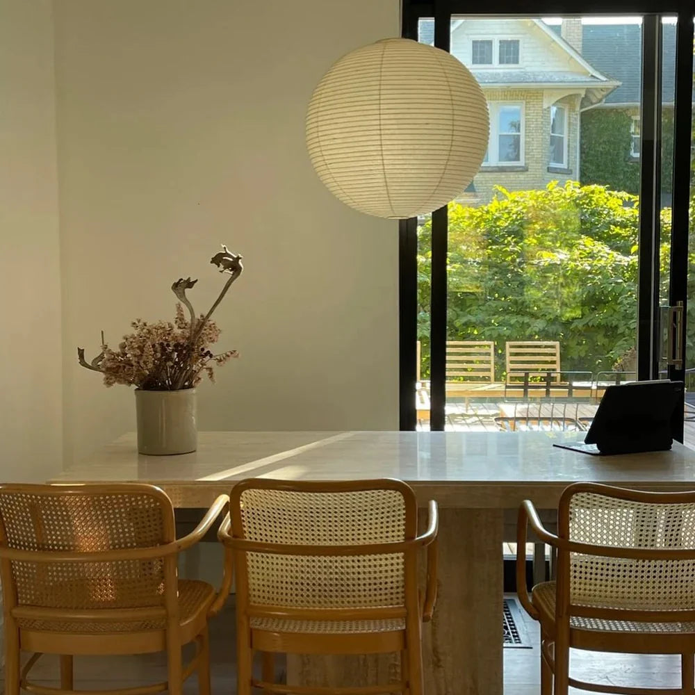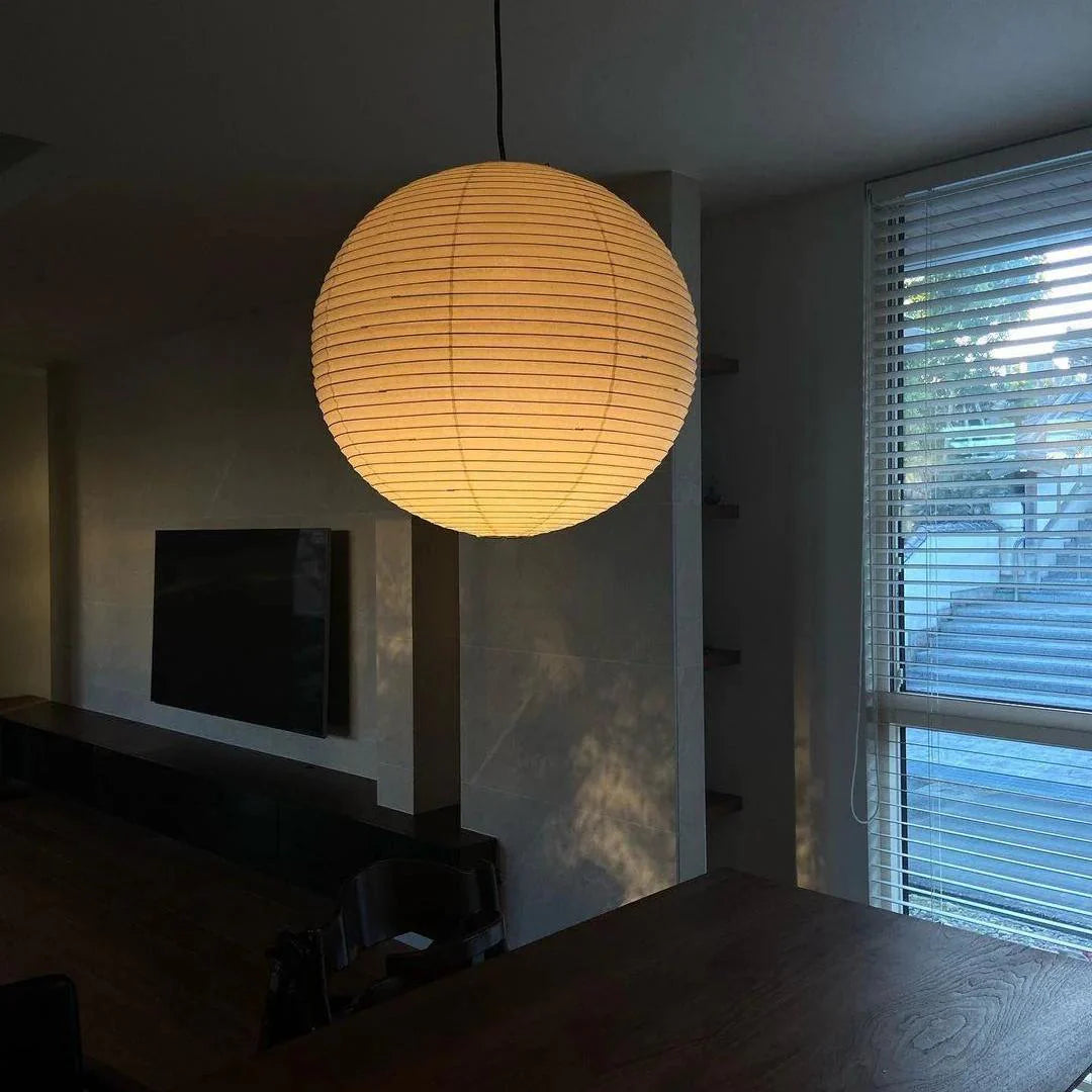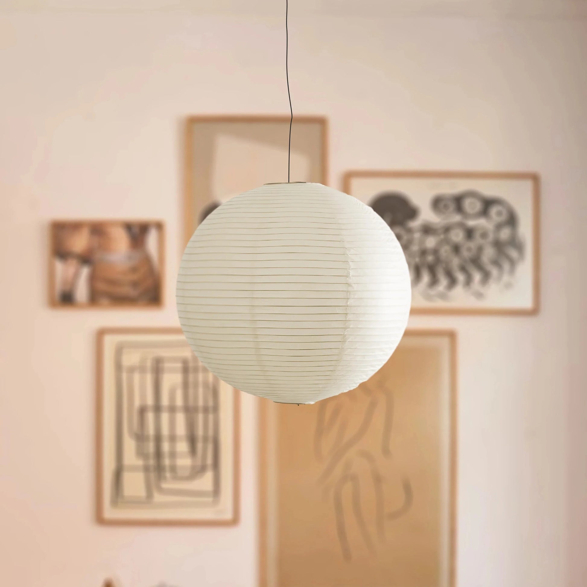 Aiko Minimalist Ribbed Paper Globe Pendant Light