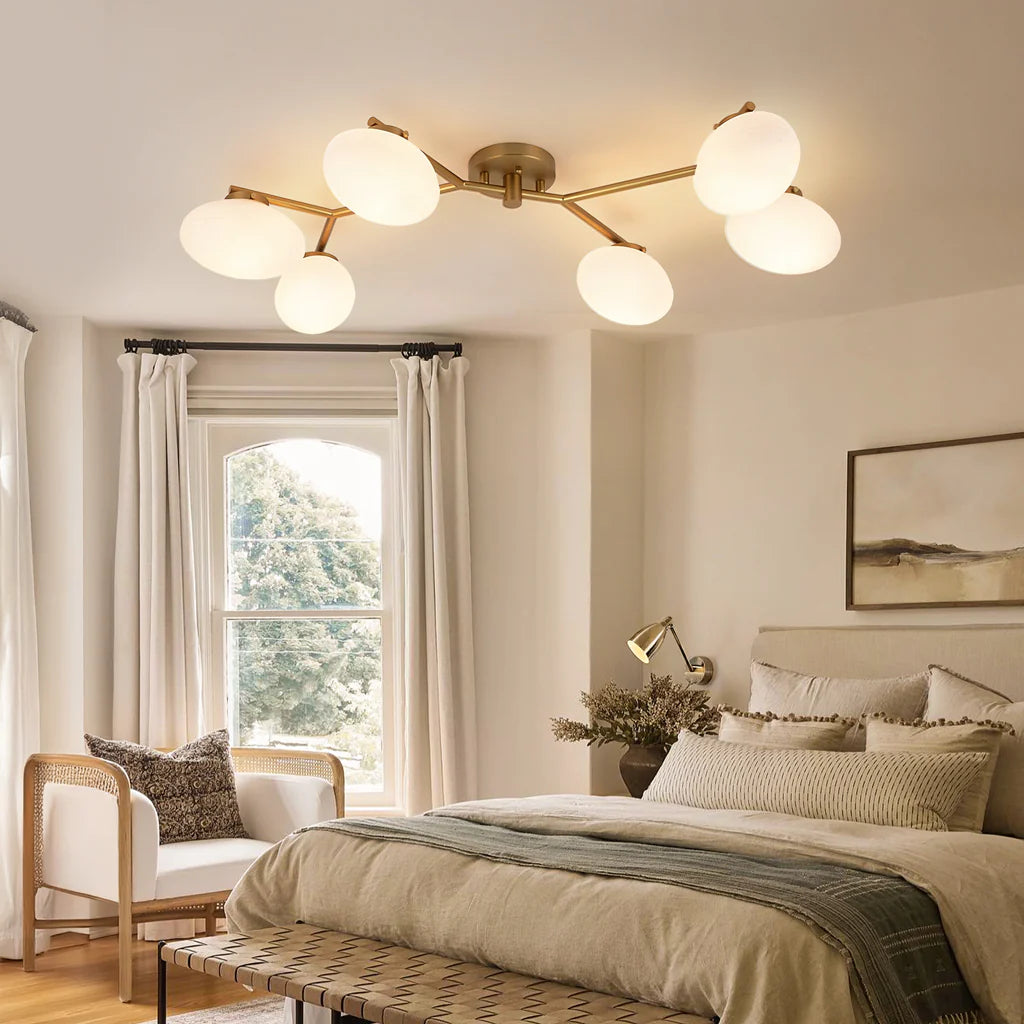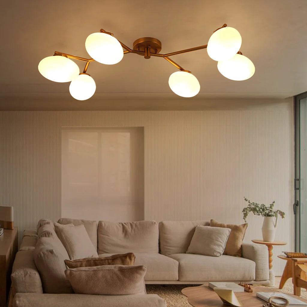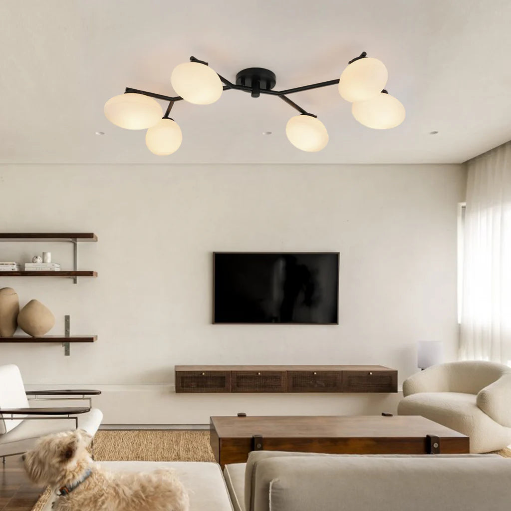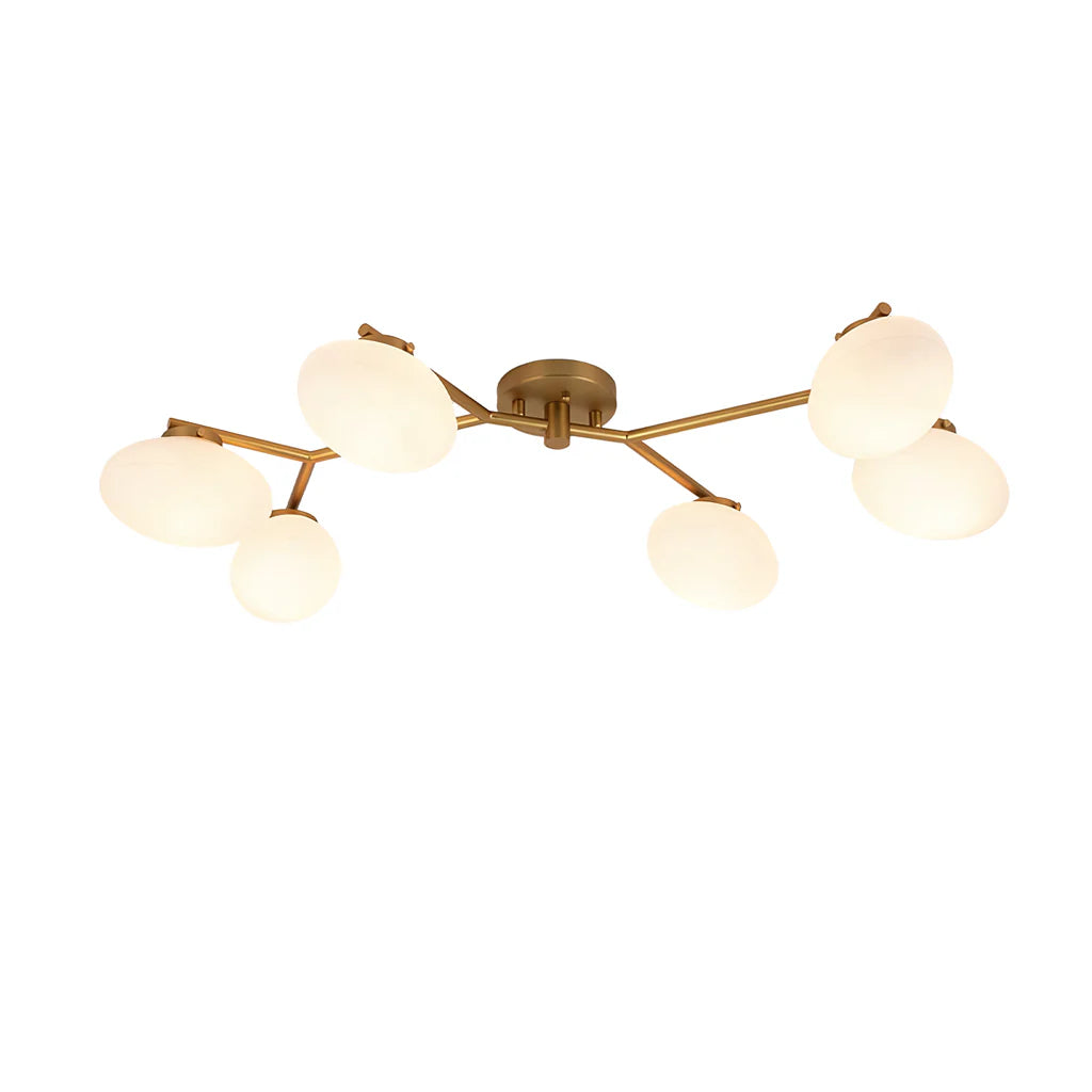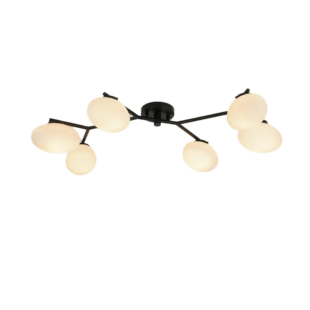 Contemporary 6 Light Branch Frosted Glass Linear Semi Flush Mount Light