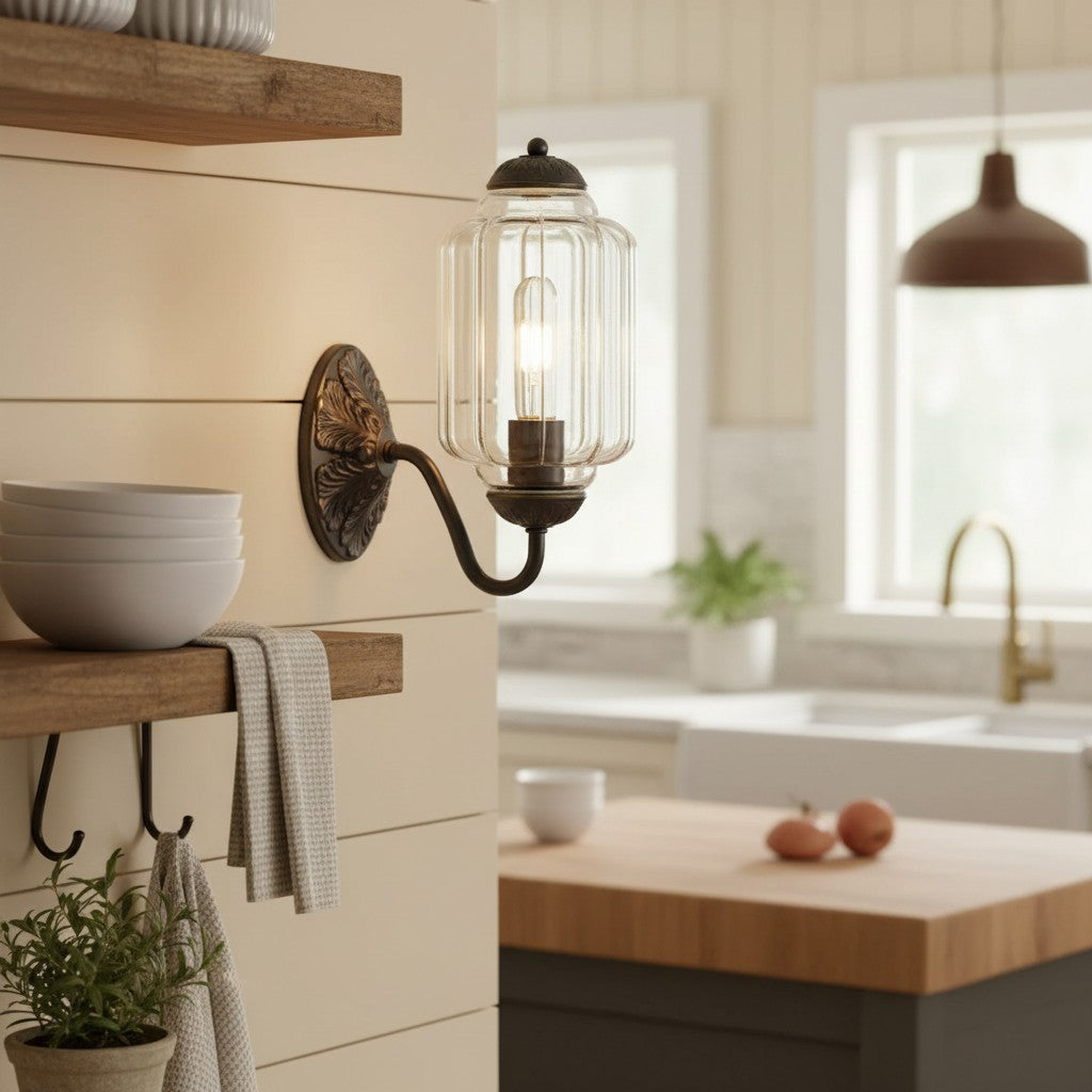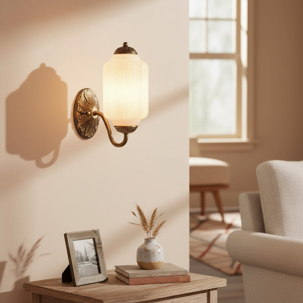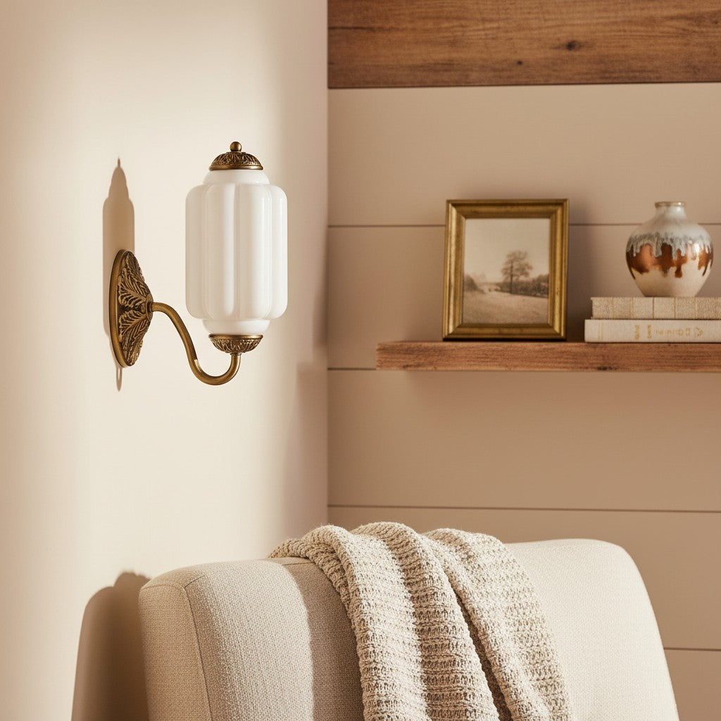 Eloise Vintage Scalloped Cream Milk Glass Oiled Brass Wall Sconce