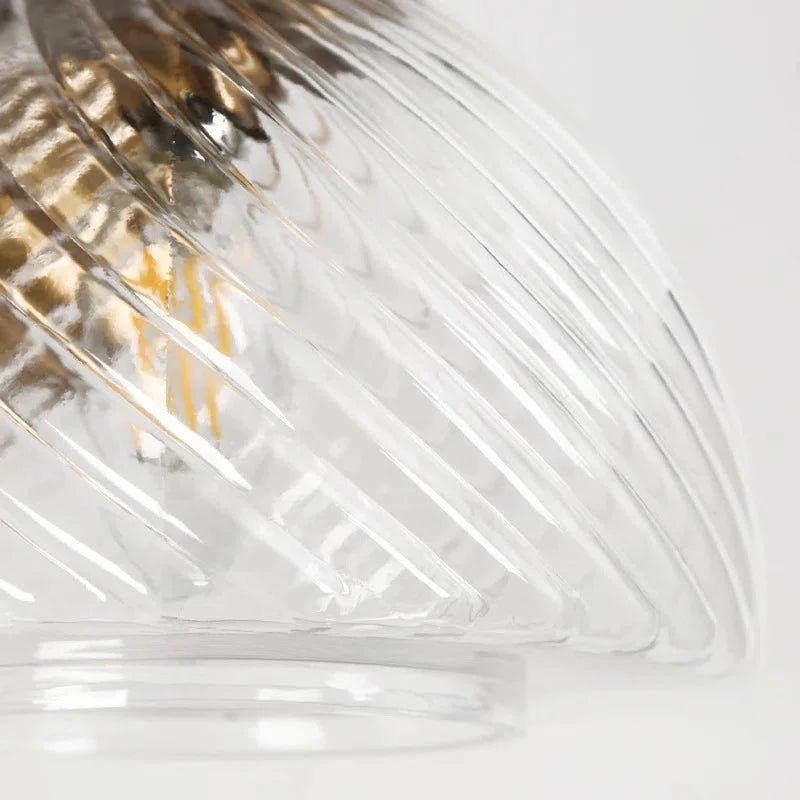 - Swirled Glass Shades – Handcrafted glass diffusers create soft, warm lighting with delicate organic texture.