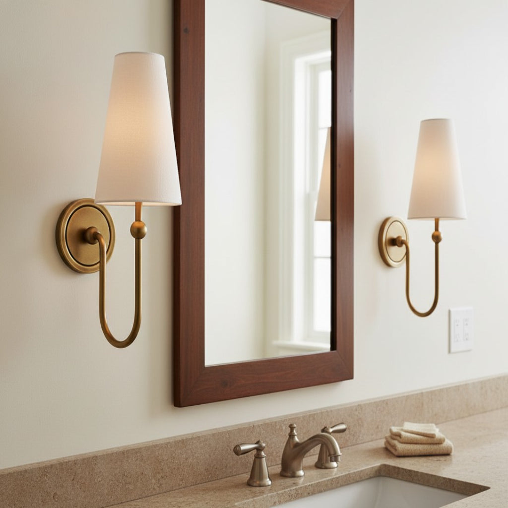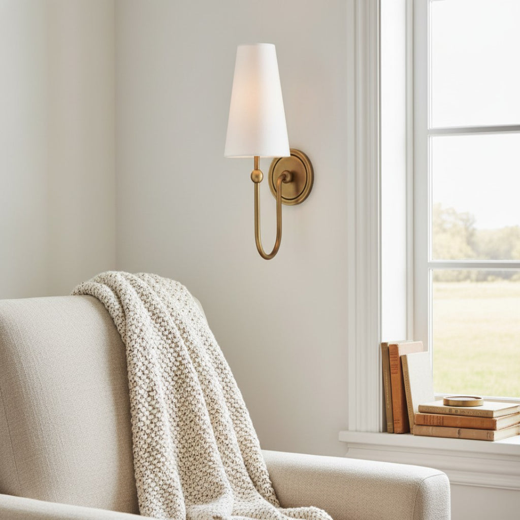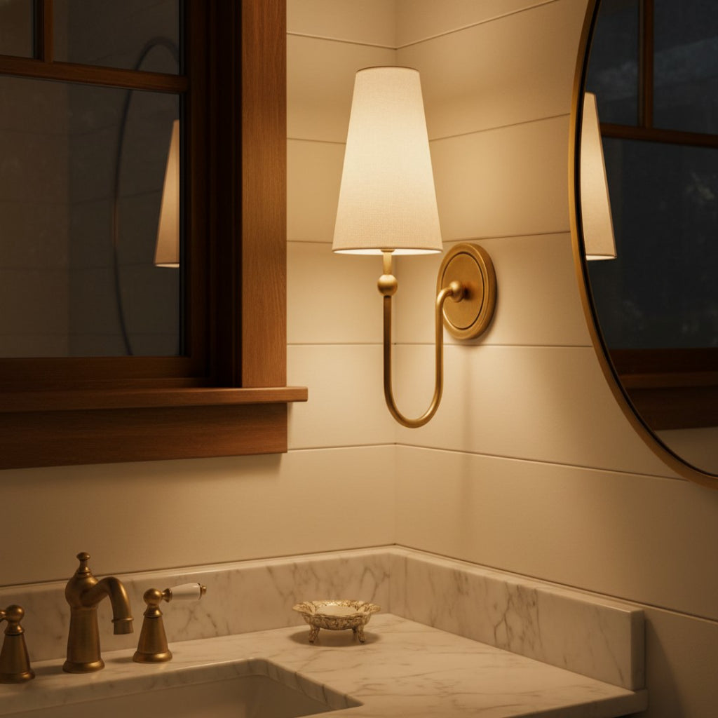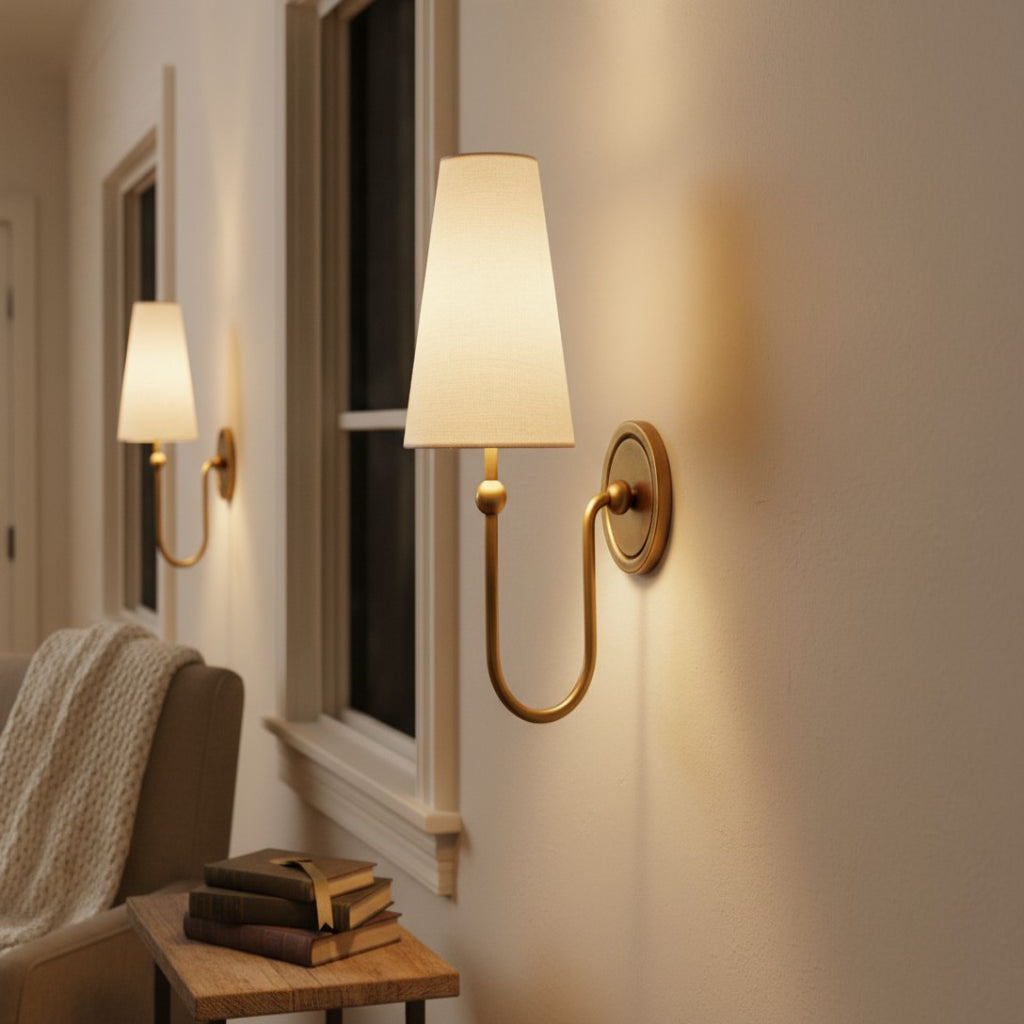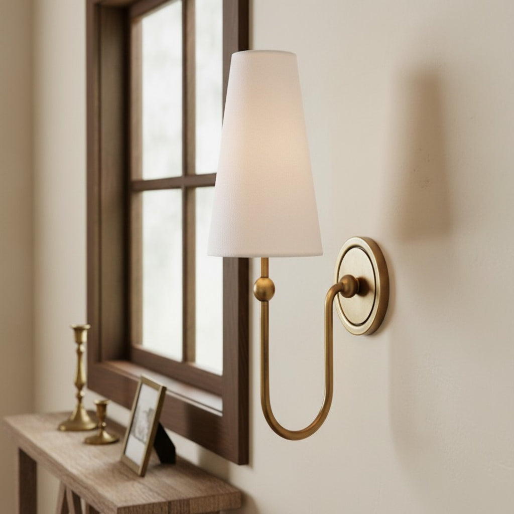 Farmhouse Linen Brass Swan Neck Wall Sconce
