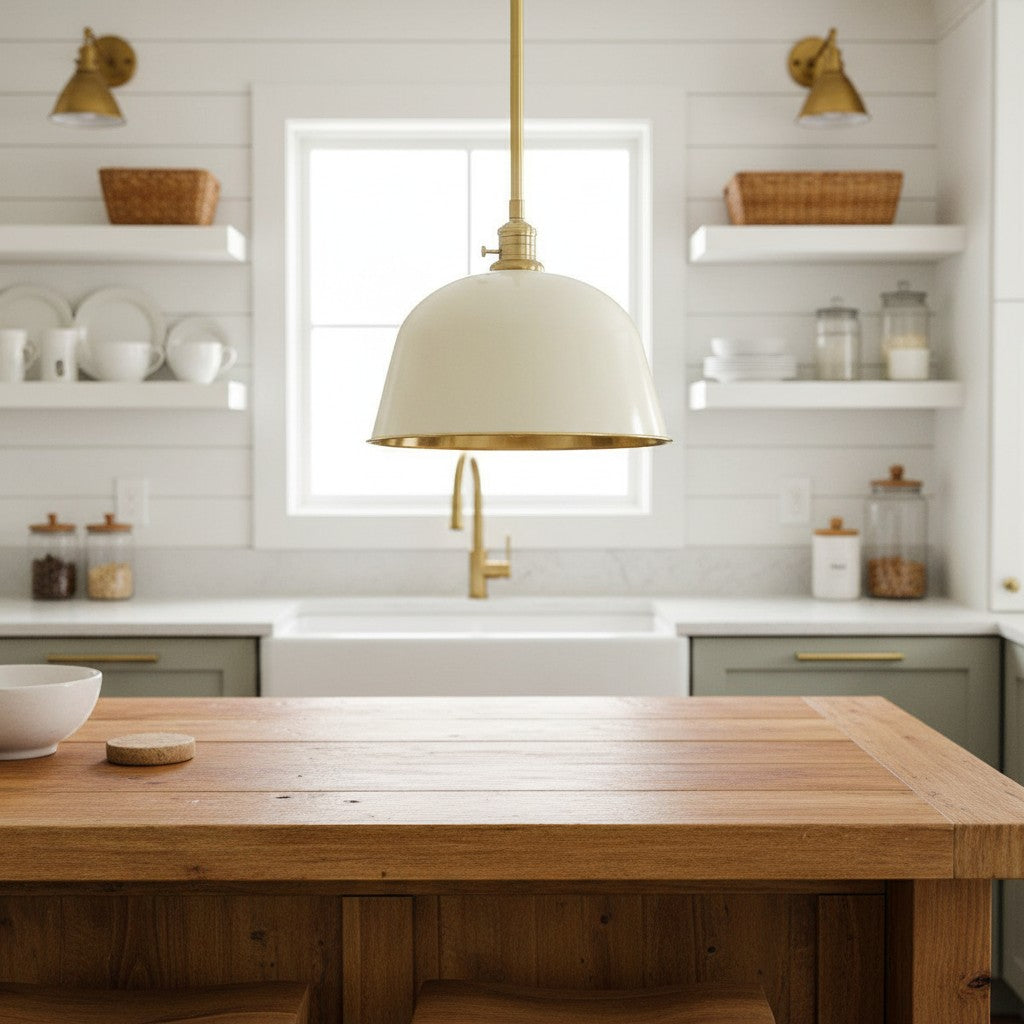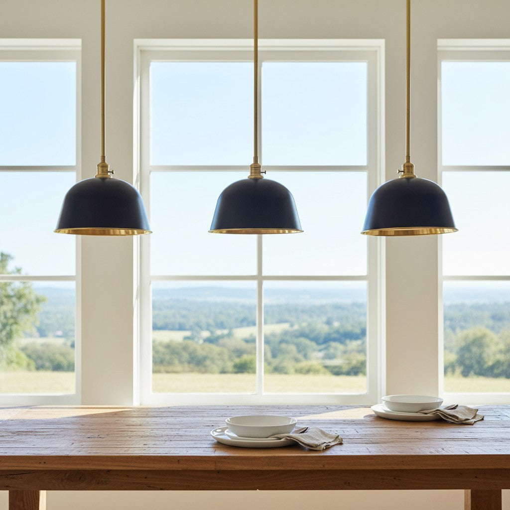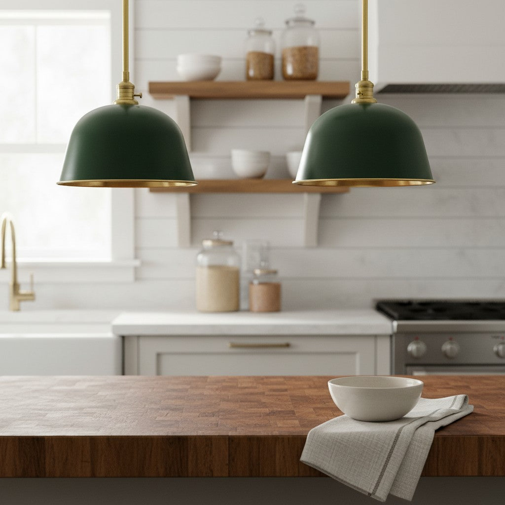 Half Dome Brass Metal Diffuser Bell Pendant Light for Kitchen Islands