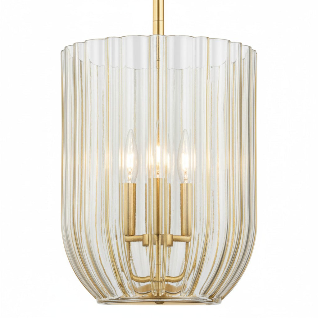 GlassLantern Pendant Light with Ribbed Glass in Champagne Aged Brass Finish