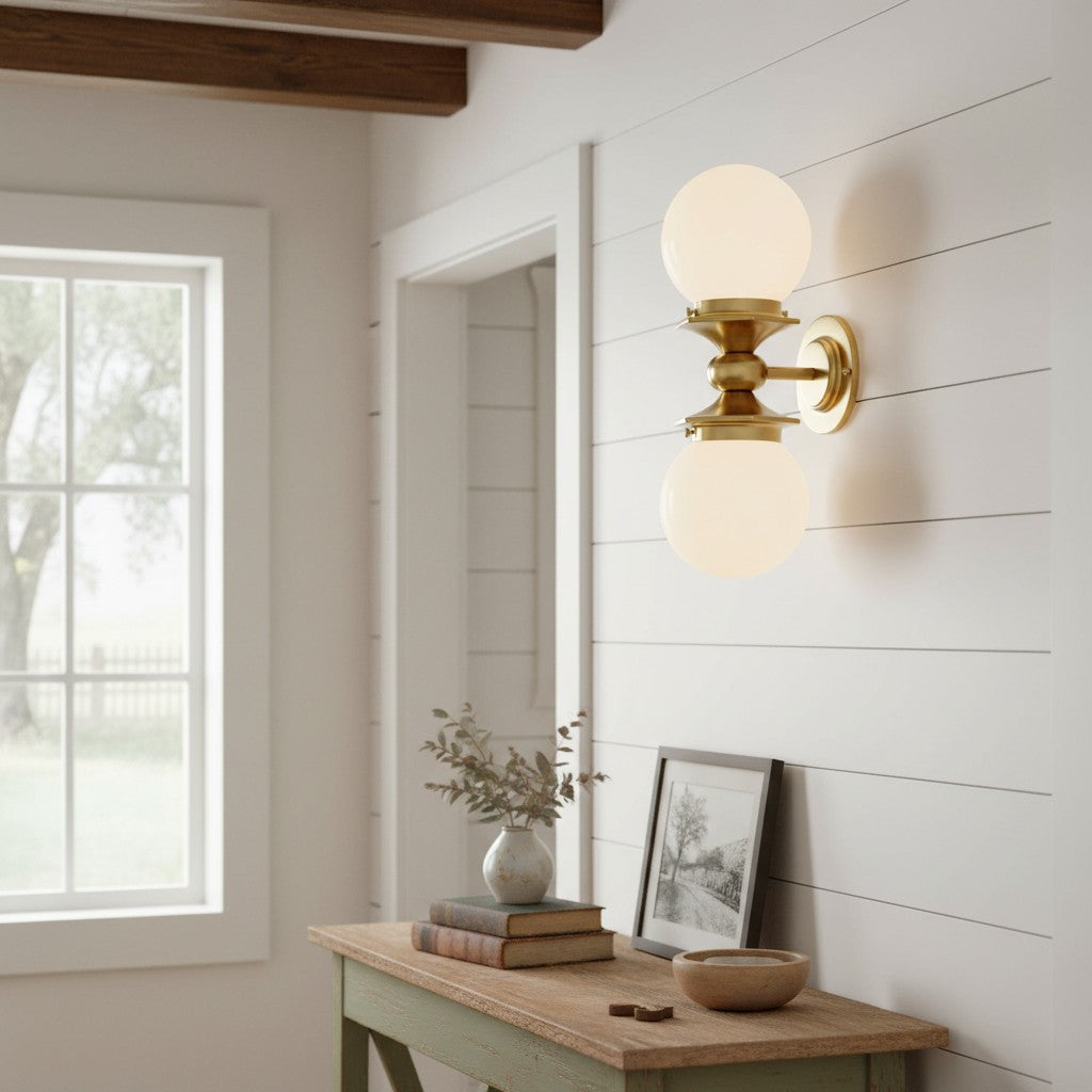 The Wall Sconce blends turn-of-the-century charm with modern versatility. Featuring a globe glass shade and sturdy metal frame, it can be mounted vertically or horizontally, ideal for porches, hallways, or bathrooms.