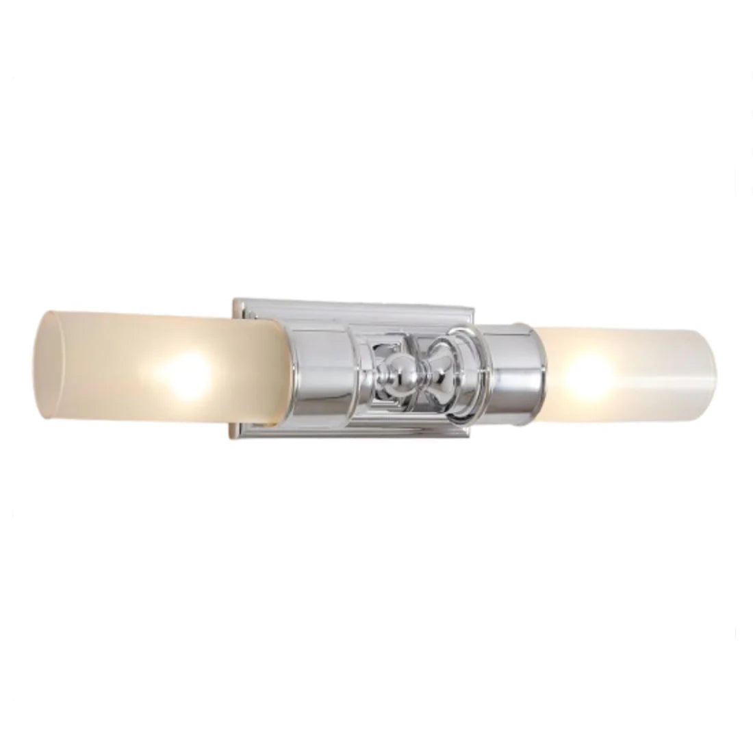 Elevate your interior with the Isla Retro Brass Double Tube Glass Wall Sconce. Featuring frosted glass shades and a sturdy metal frame, it blends vintage charm with modern simplicity. Available in Brass, Chrome, and Black, the double-tube design provides soft, ambient light—perfect for bedrooms, hallways, or living spaces.