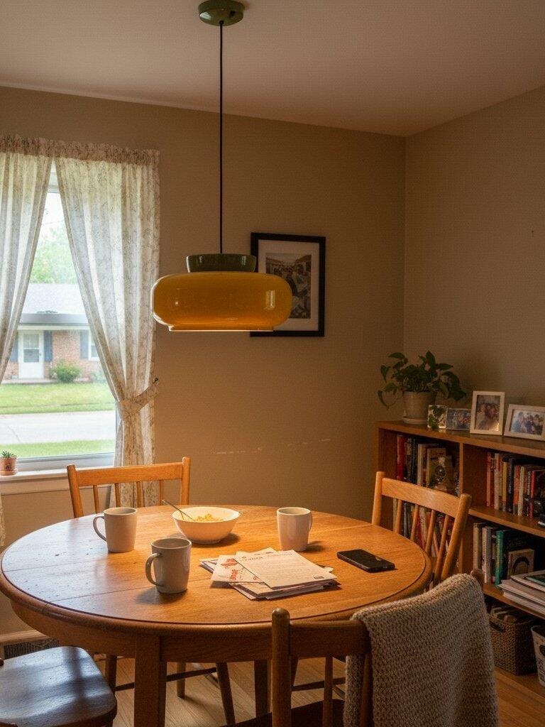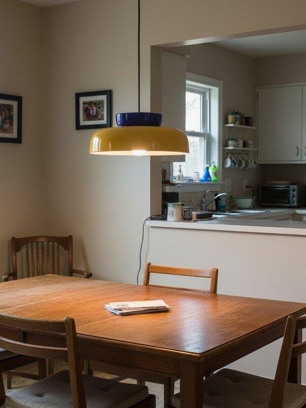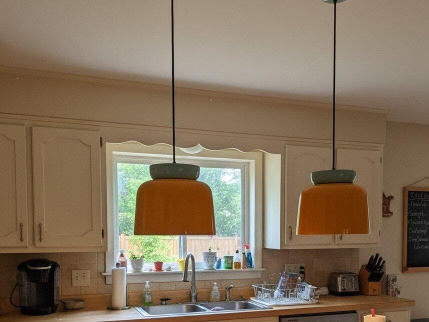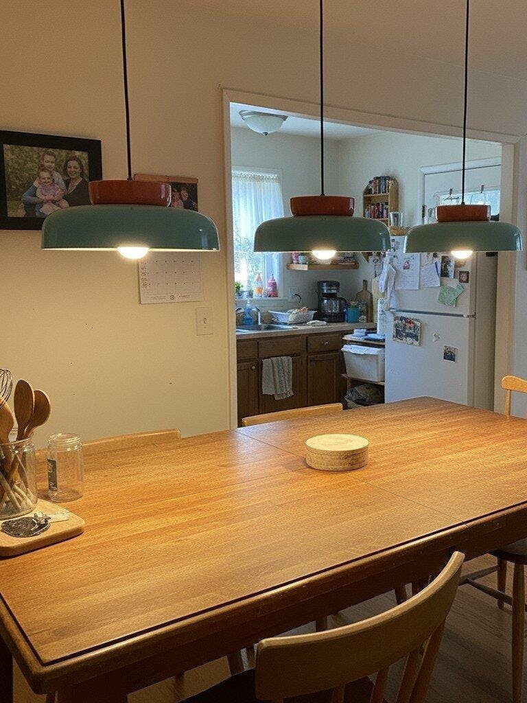 The bowl-shaped silhouette diffuses light gently downward, creating a warm, inviting glow perfect for kitchen islands, dining tables, or cozy living corners.