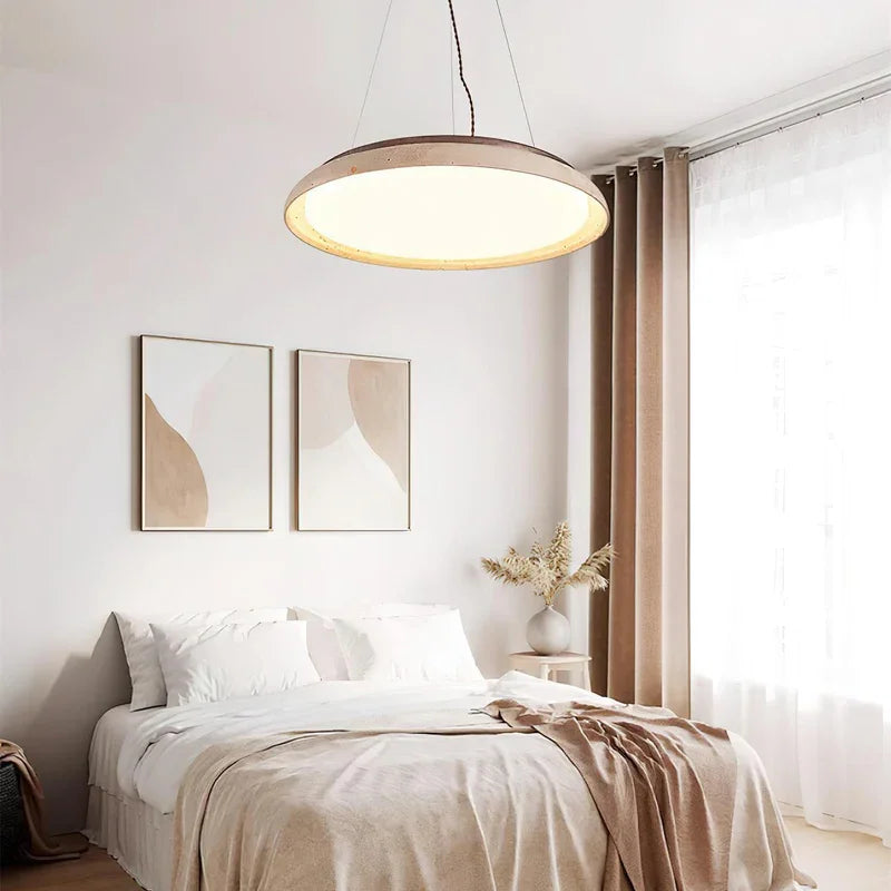 The Pheme Pendant Light pairs natural stone with refined craftsmanship. Its ring-shaped travertine design exudes timeless elegance, while the soft diffused LED glow enriches the ambiance of dining rooms, bedrooms, and living areas.