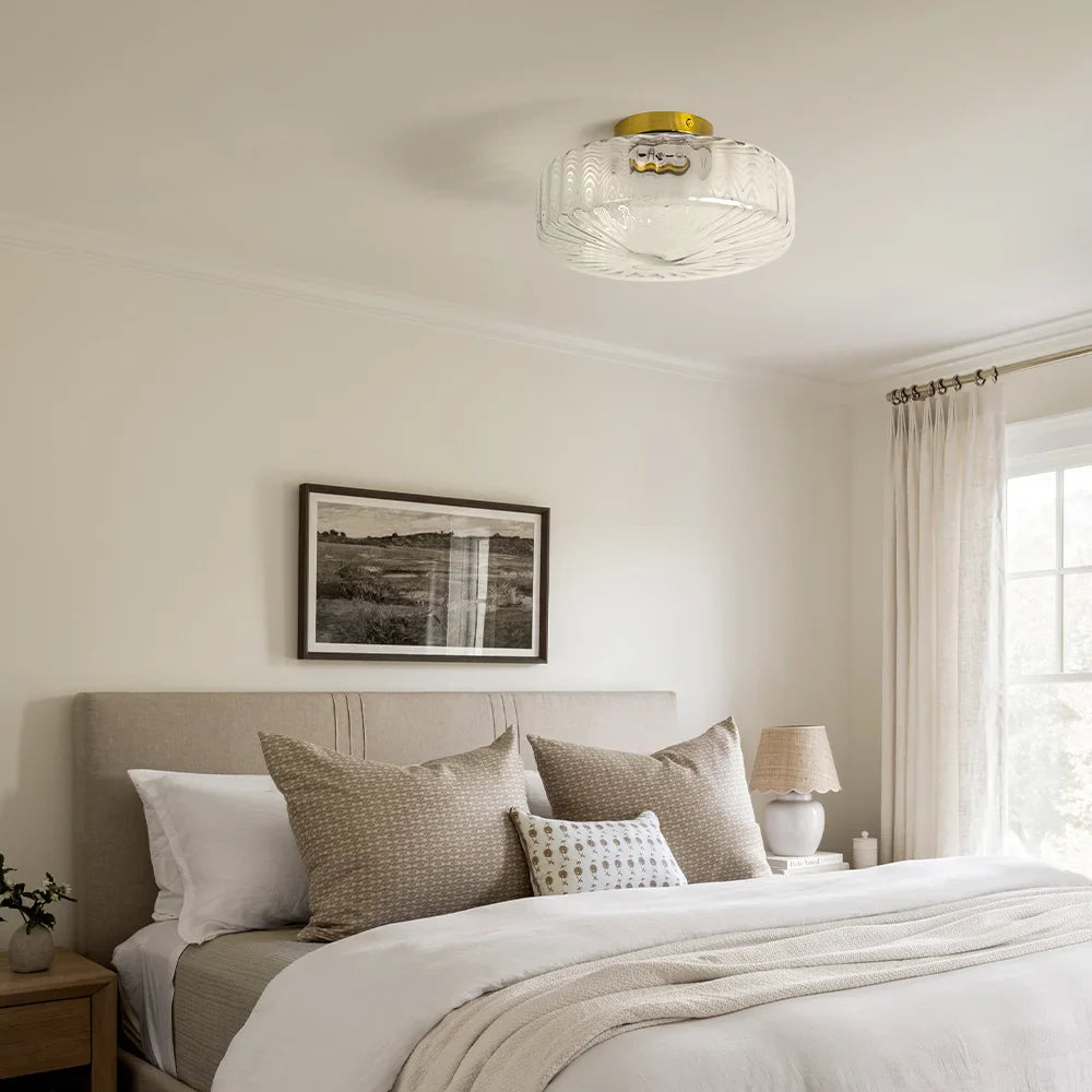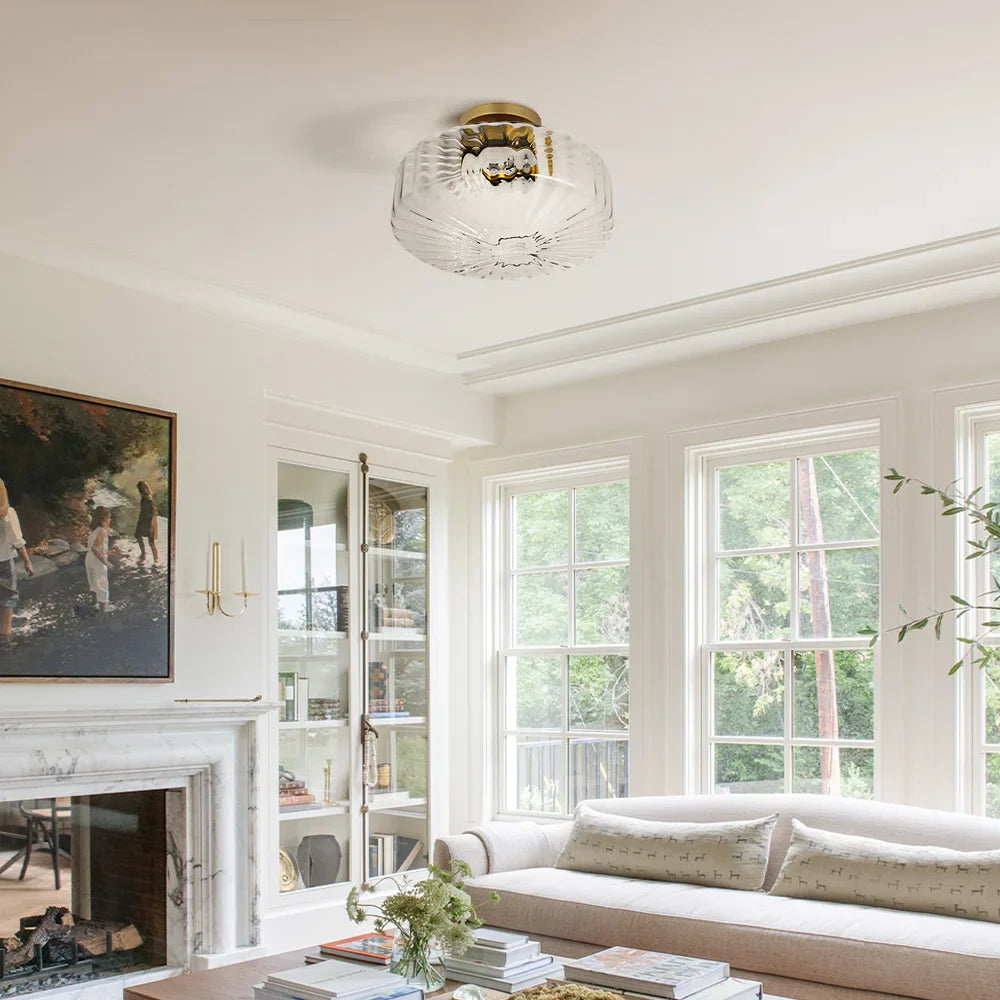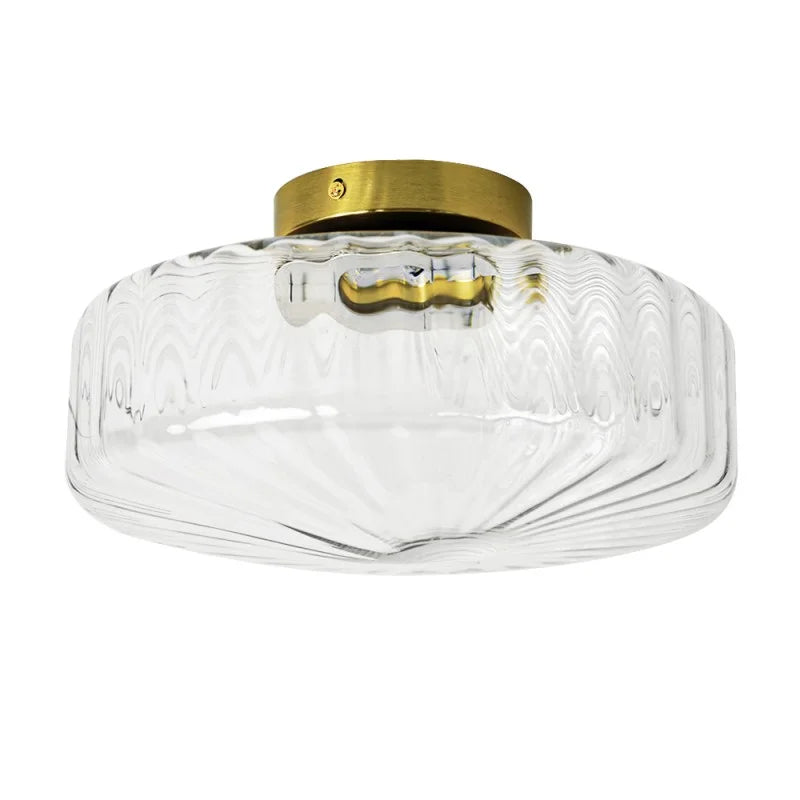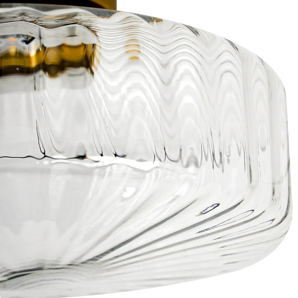 Rowena Modern Round Ribbed Glass Brass Ceiling Light