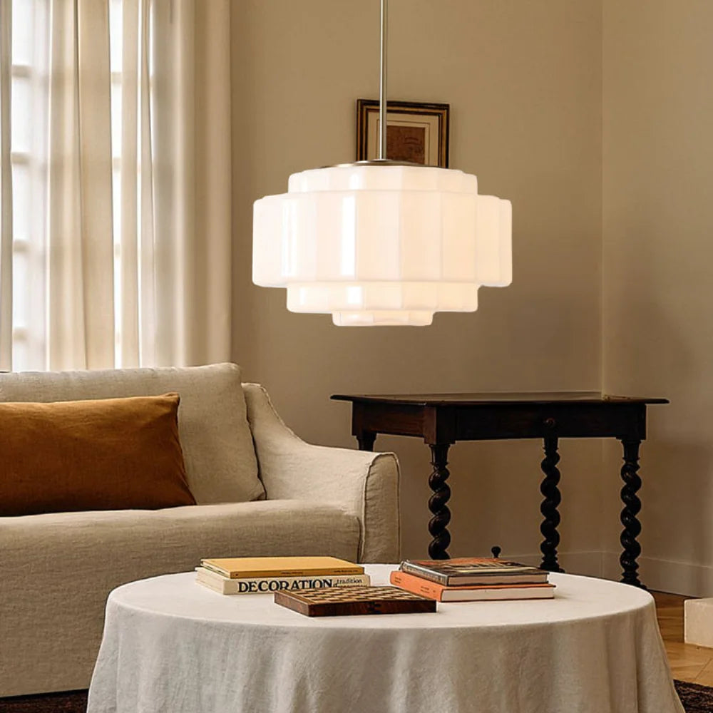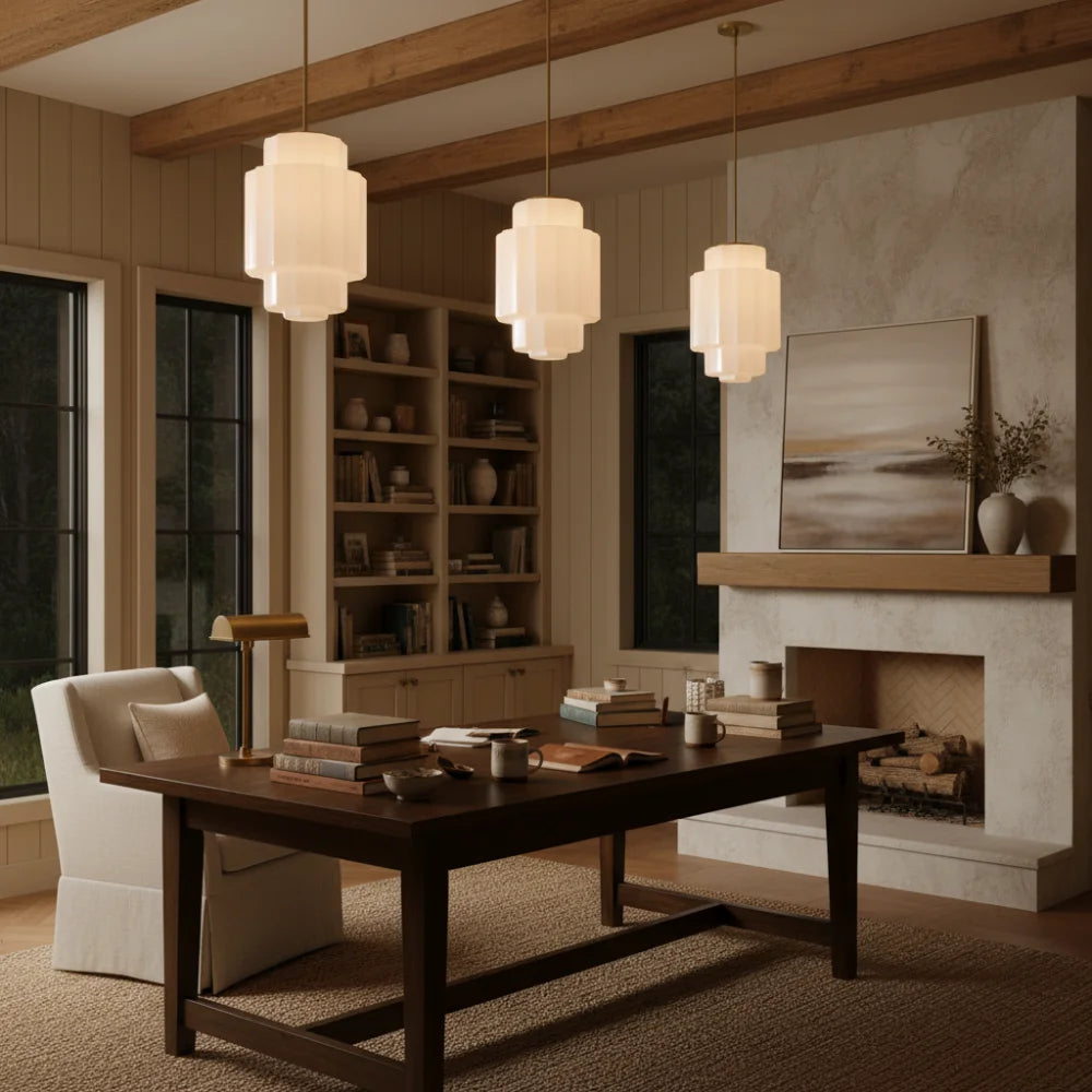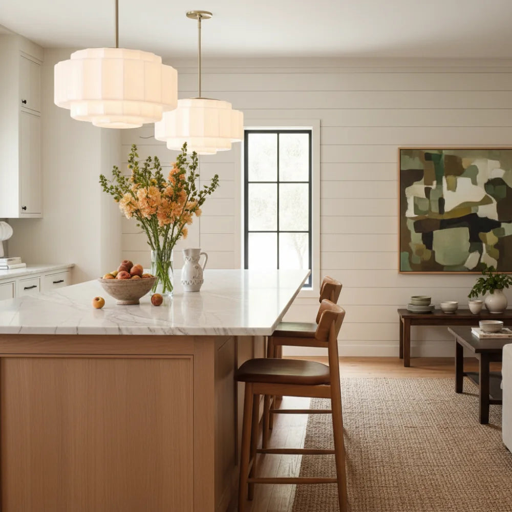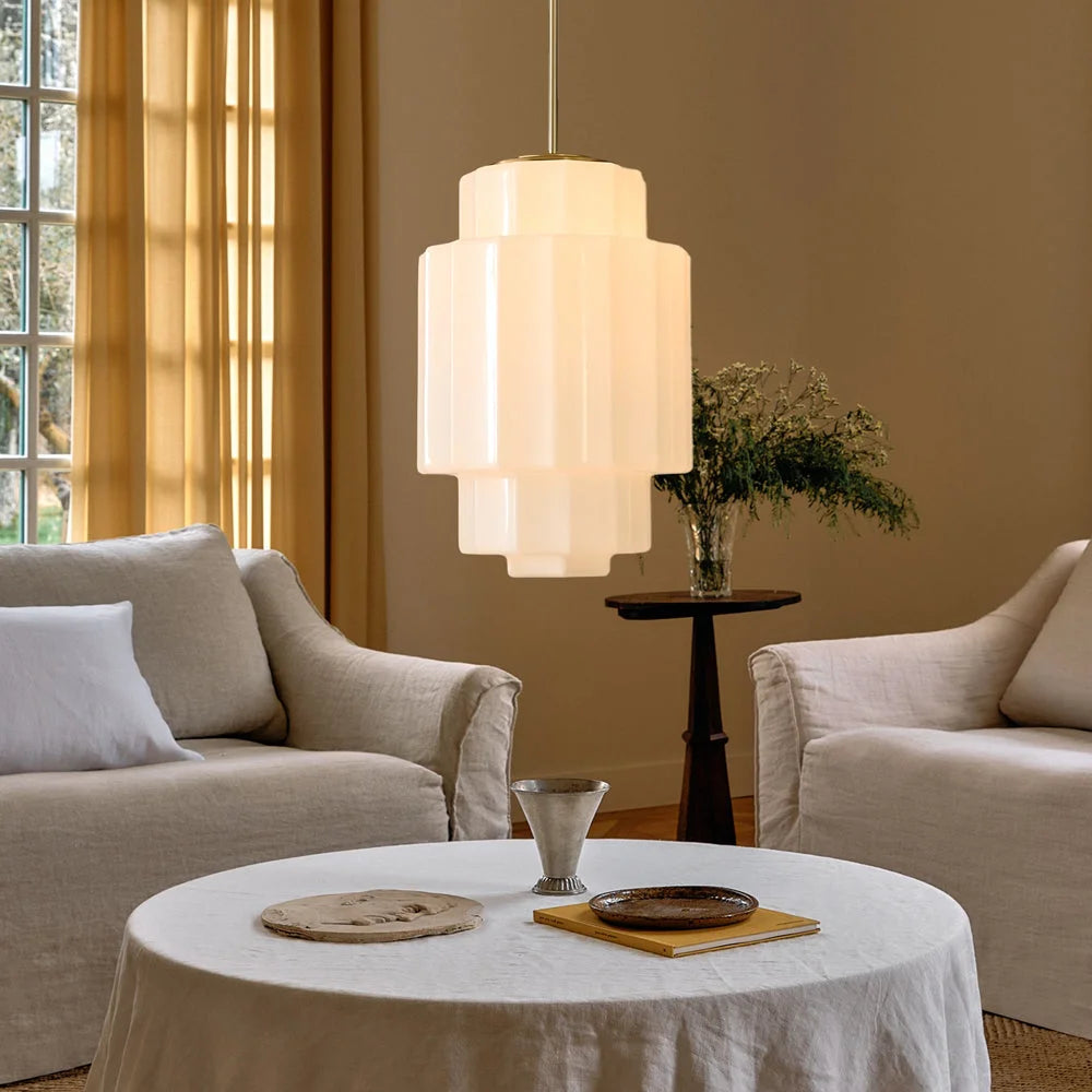 Vintage brass paired with milk glass emits a warm glow to illuminate your home.