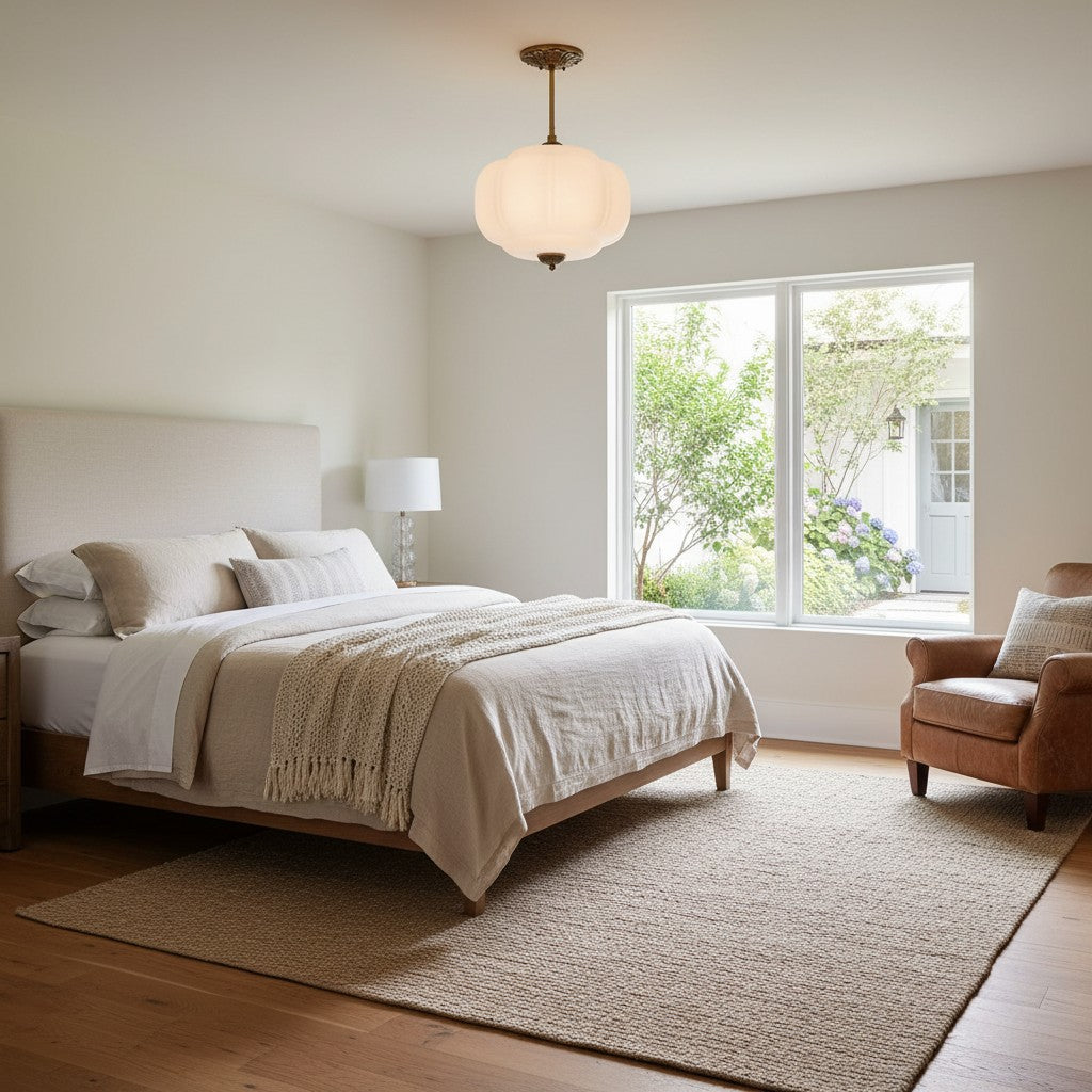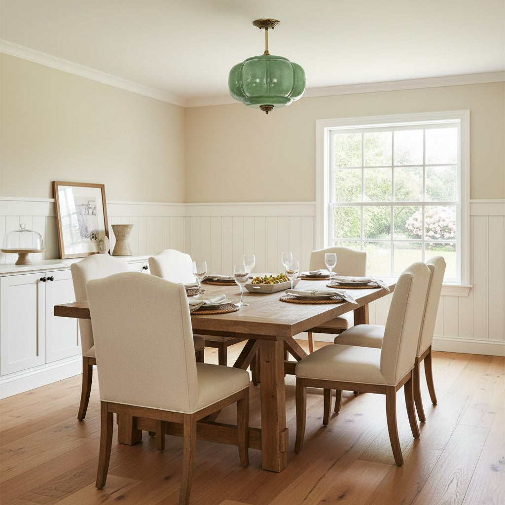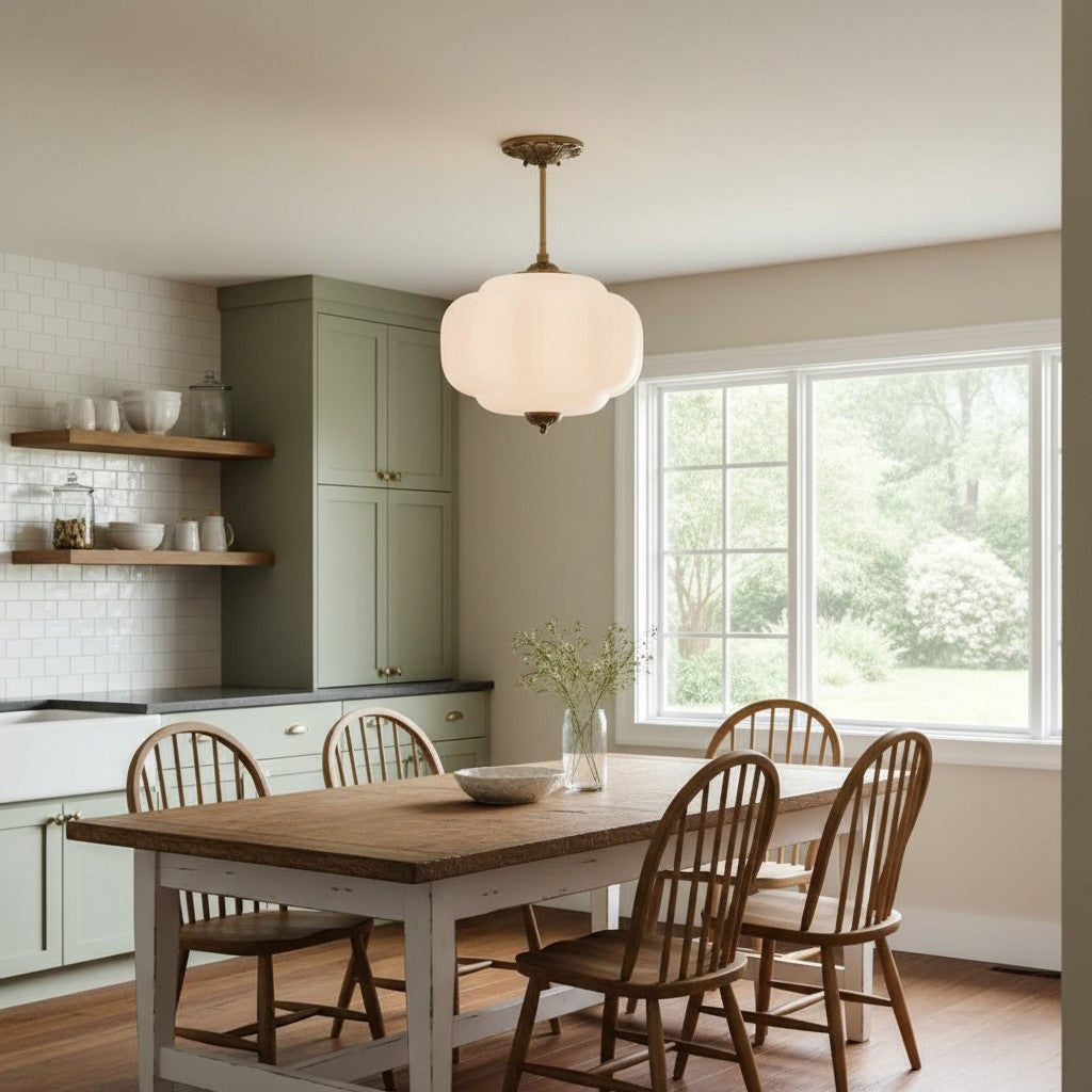 Vintage Eloise Milk Glass Pumpkin Semi-Flush Mount Pendant Light