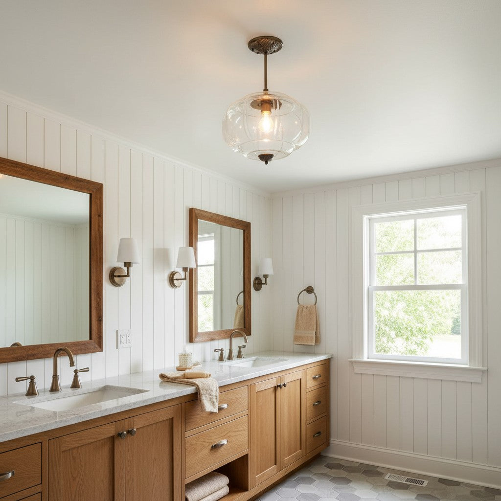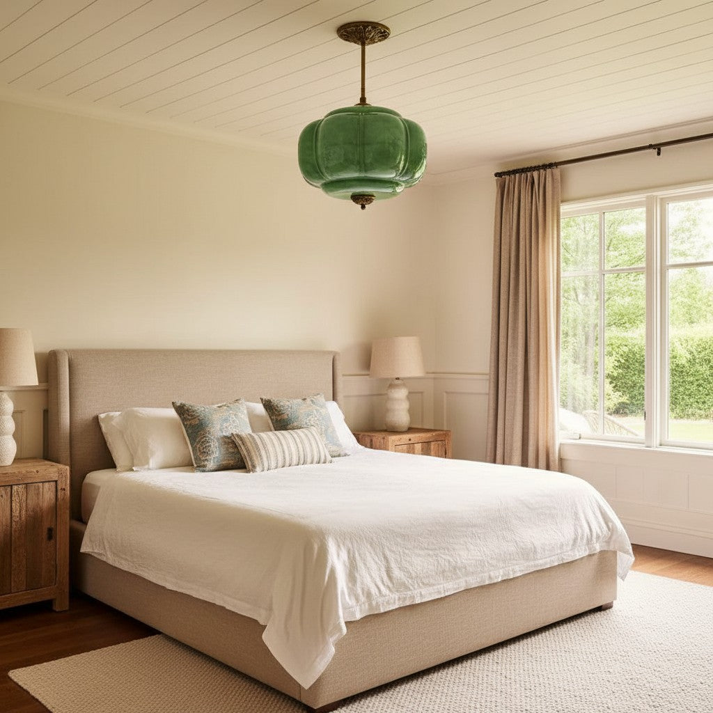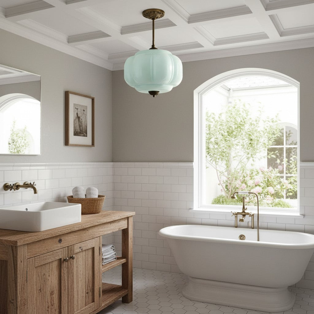 Vintage Eloise Milk Glass Pumpkin Semi-Flush Mount Pendant Light