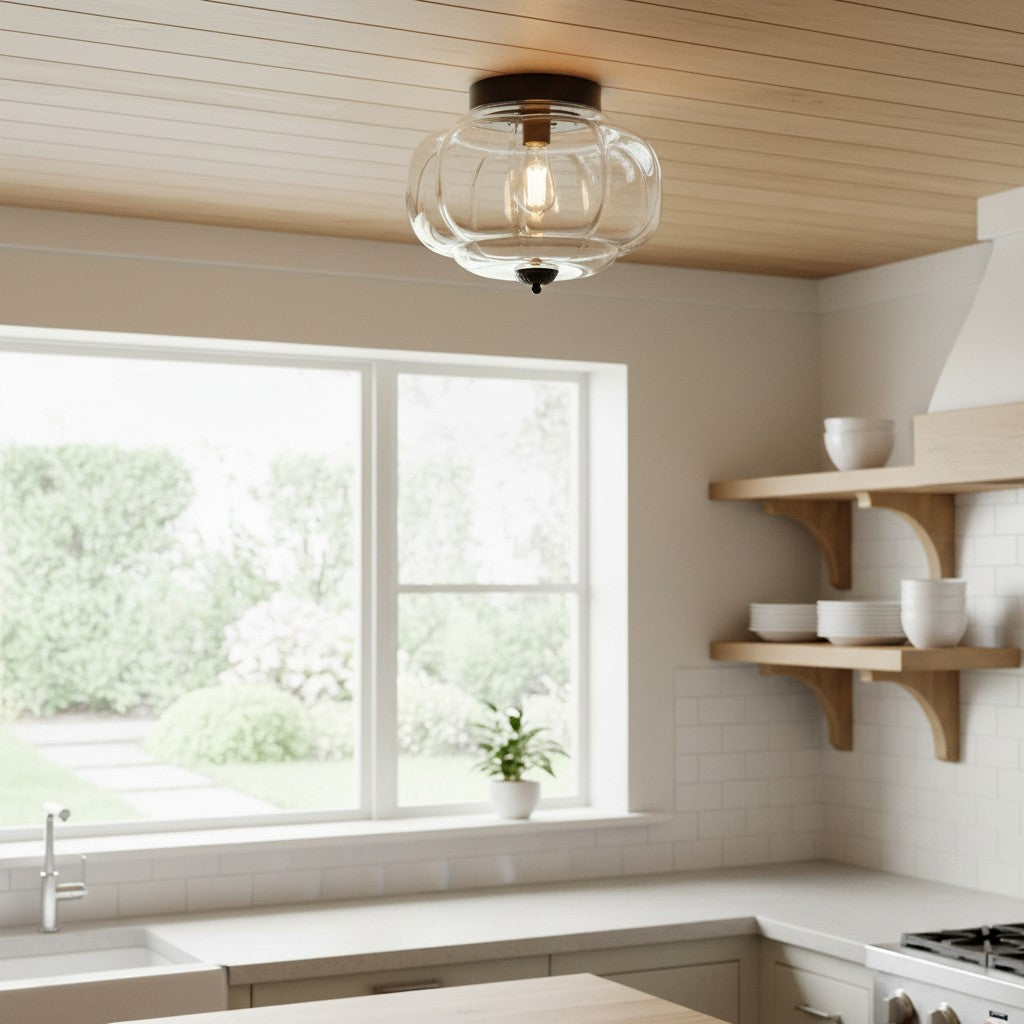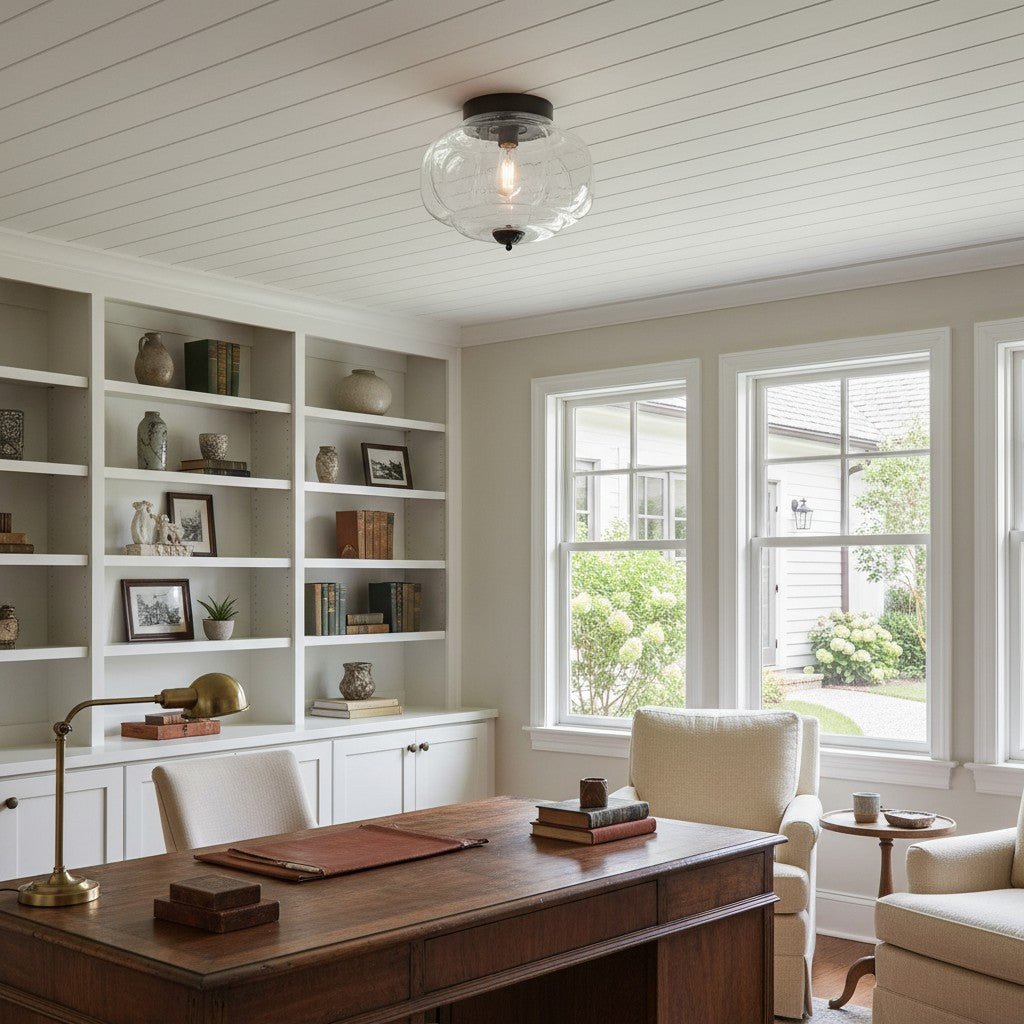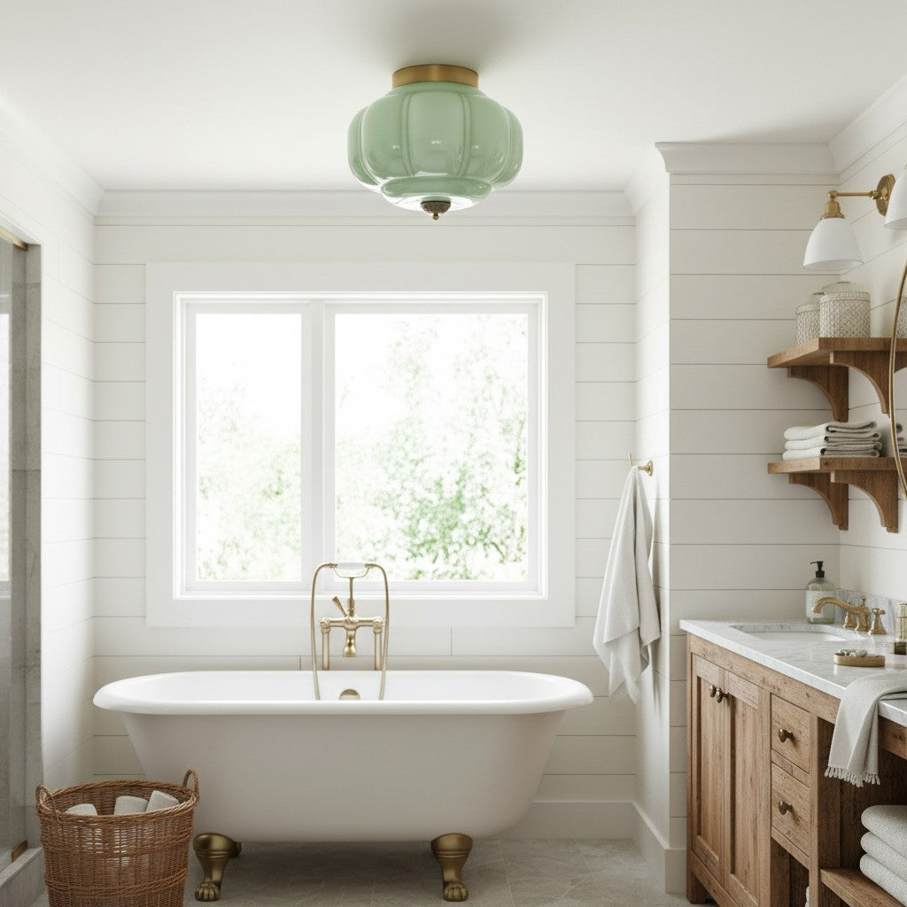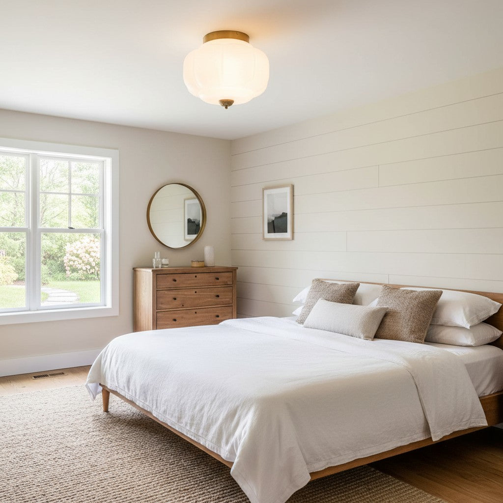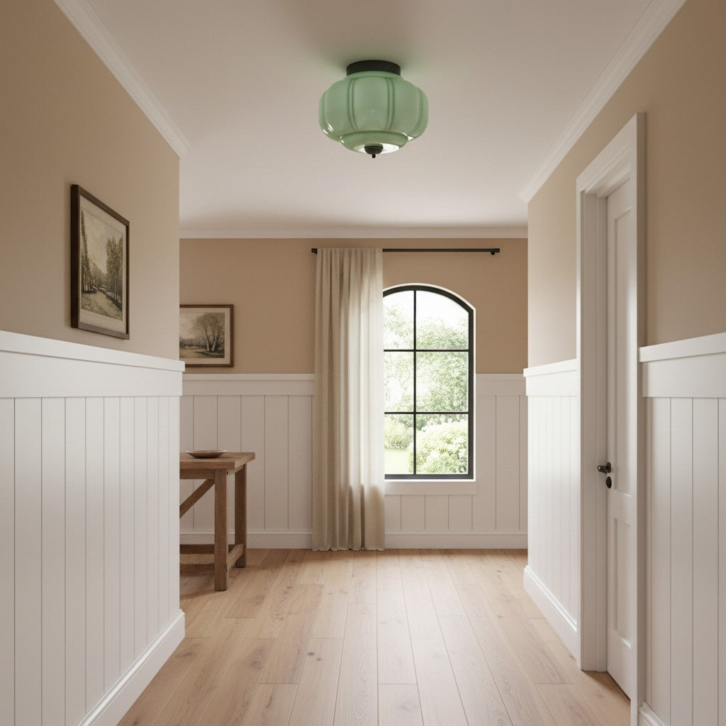 Vintage Milk Glass Semi-Flush Mount Ceiling Light Fixture for Bedroom Hallway