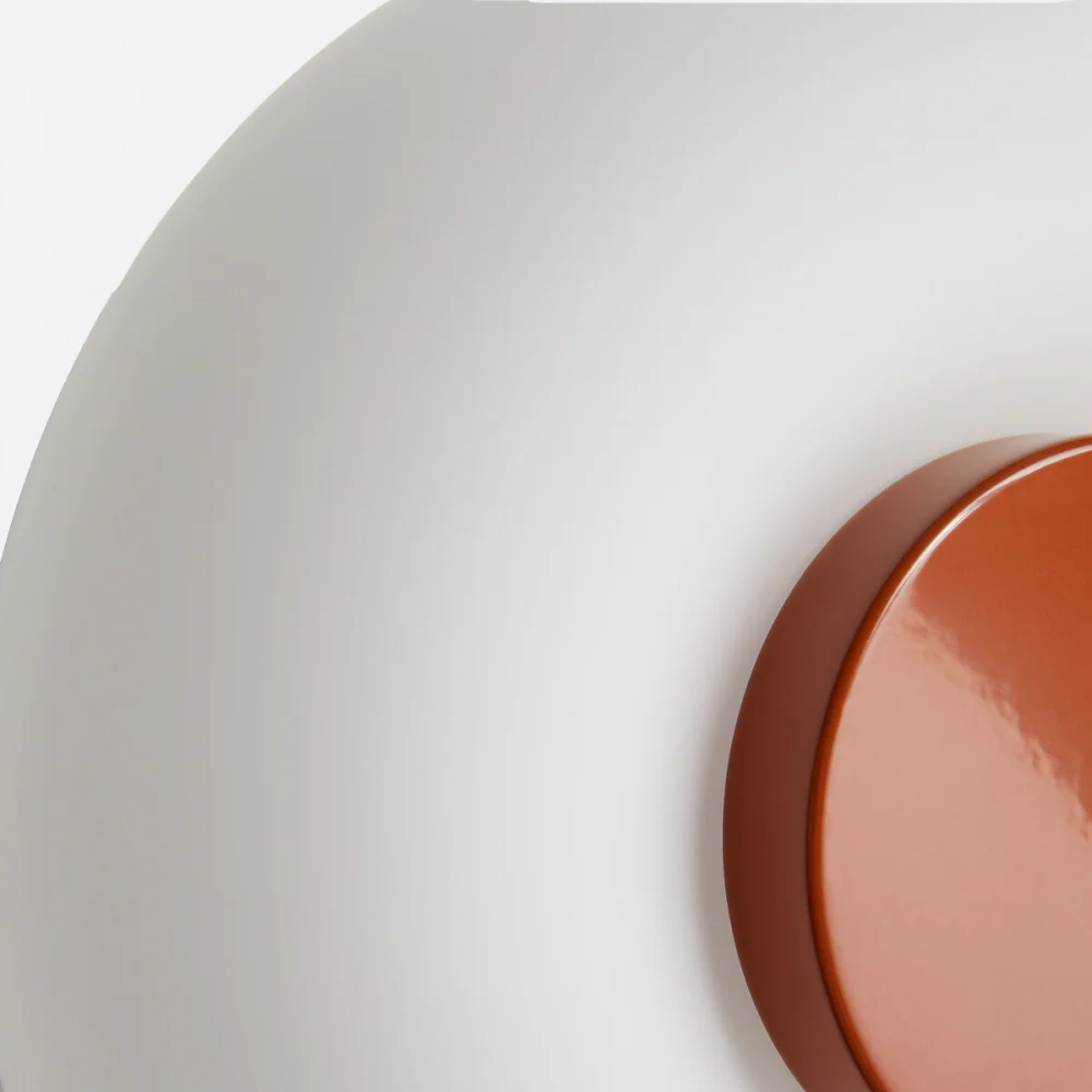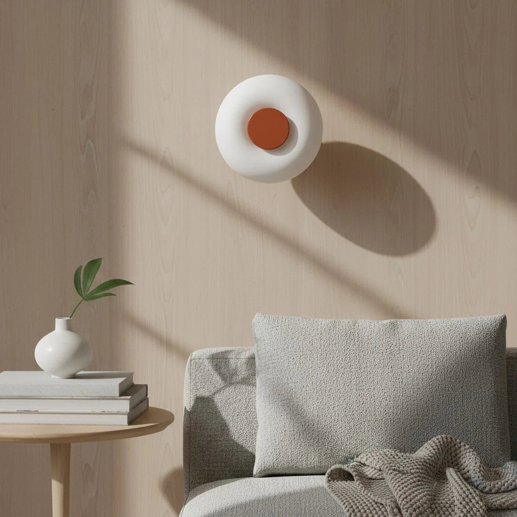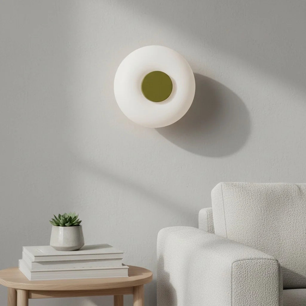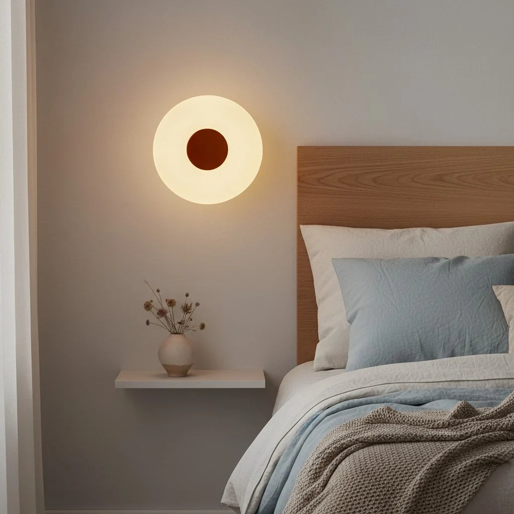 This wall lamp features a milky white glass shade with a matte finish, creating a soft, ambient light. Perfect for the bedroom, it seamlessly blends sleek minimalism with clever color blocking.