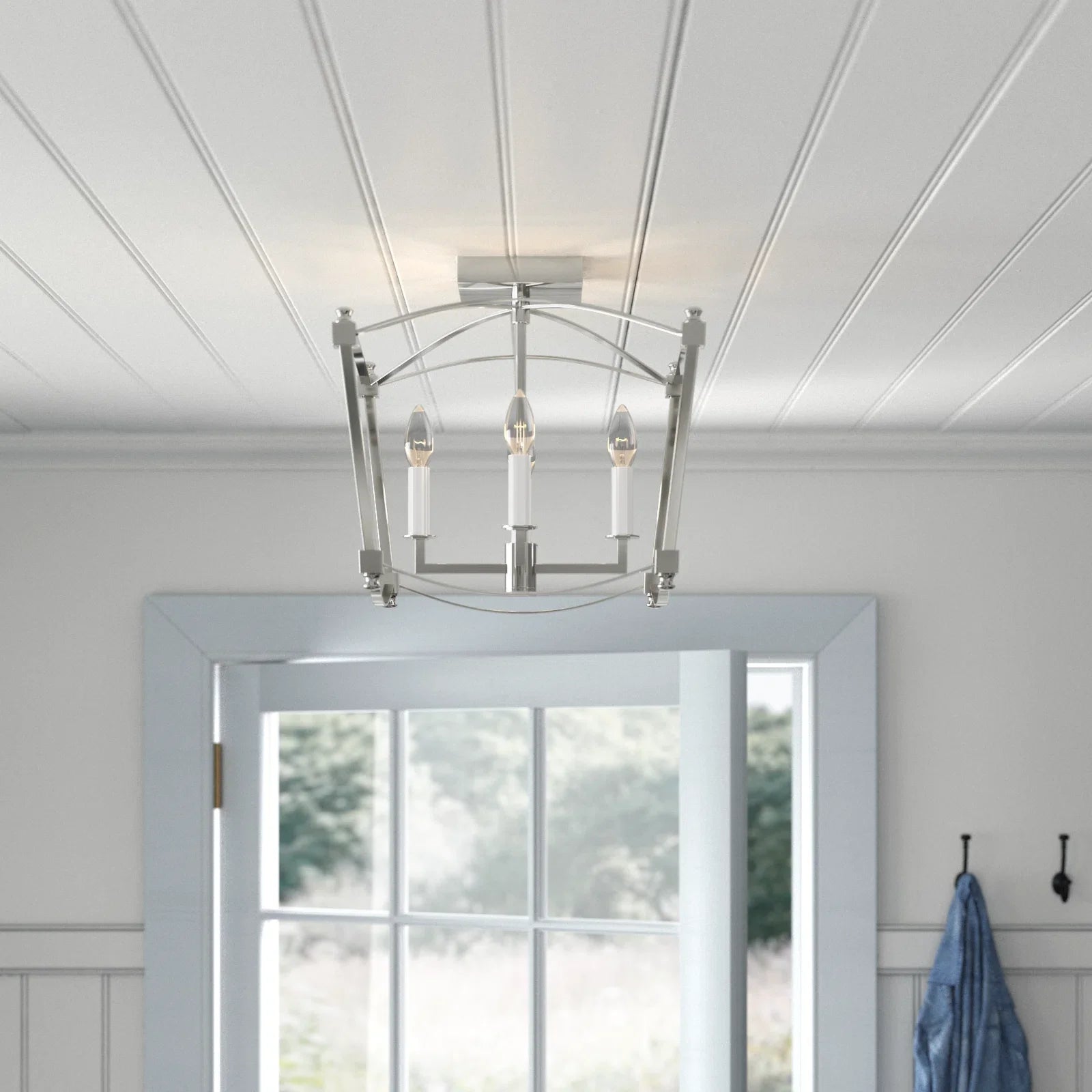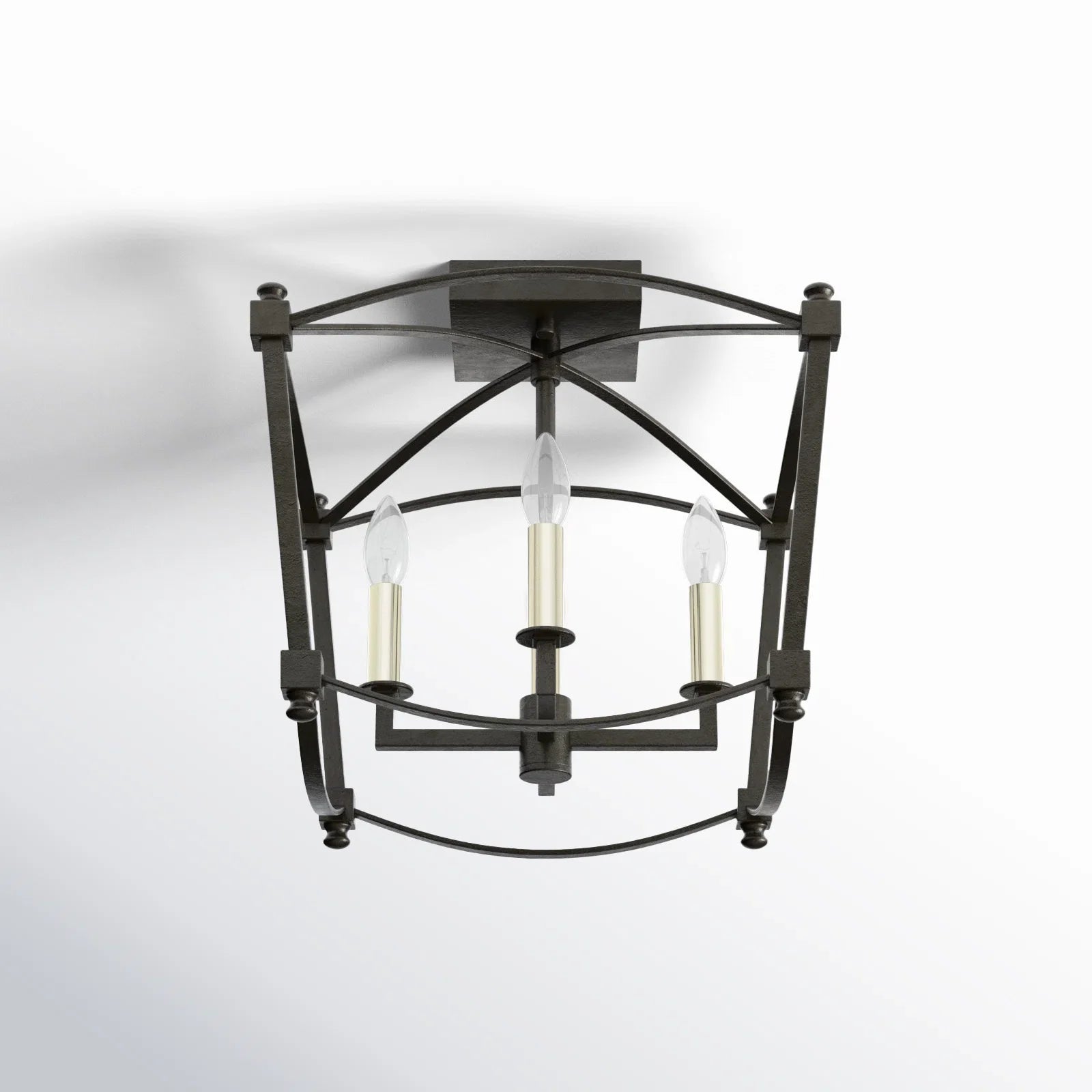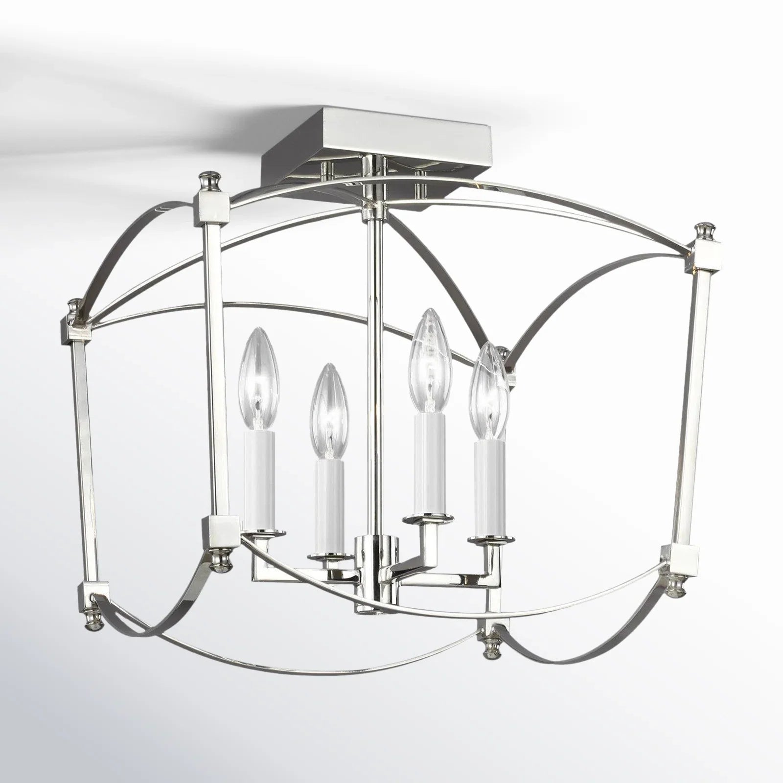 Add a touch of old-world charm with this gold/nickel/black-finished semi-flush mount light, featuring four candle-style bulbs within an open, sculptural metal frame.